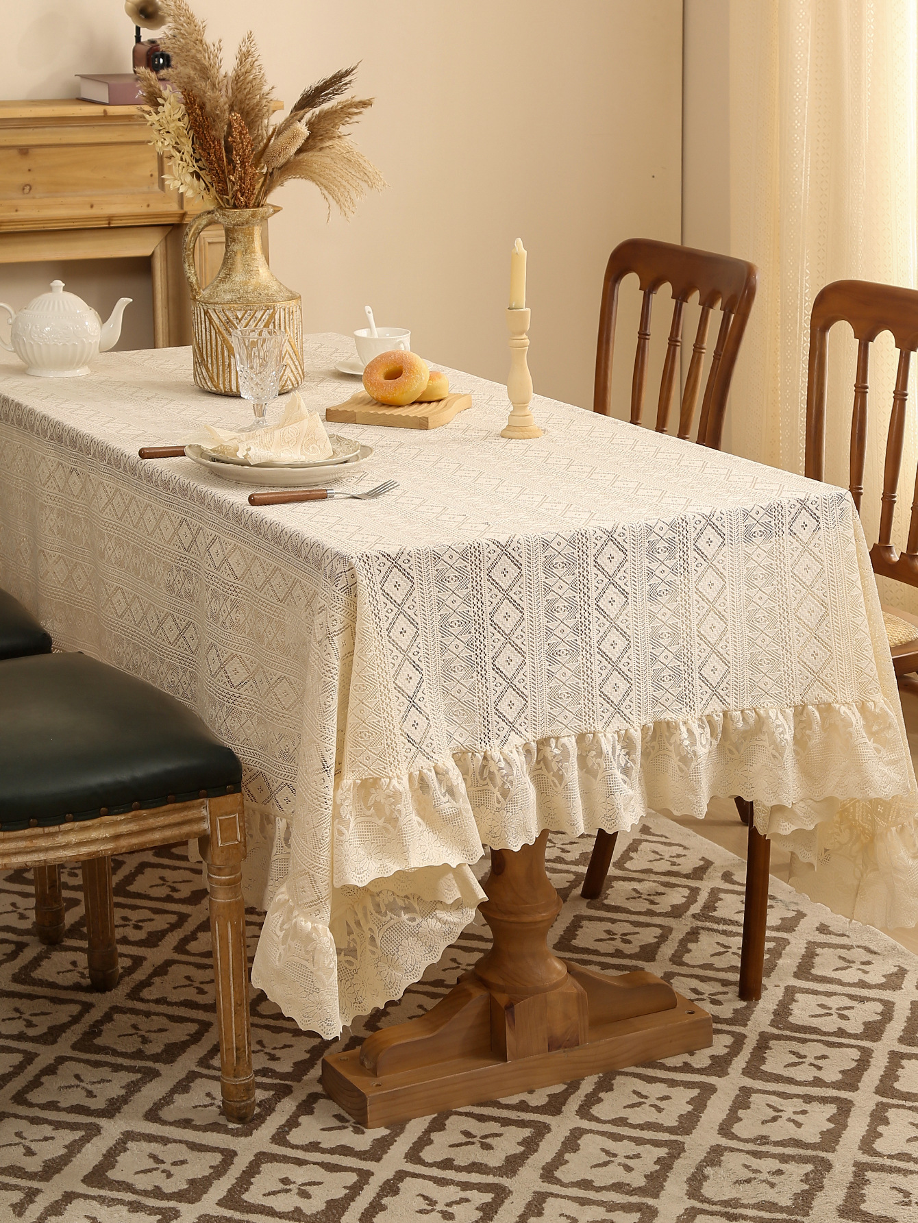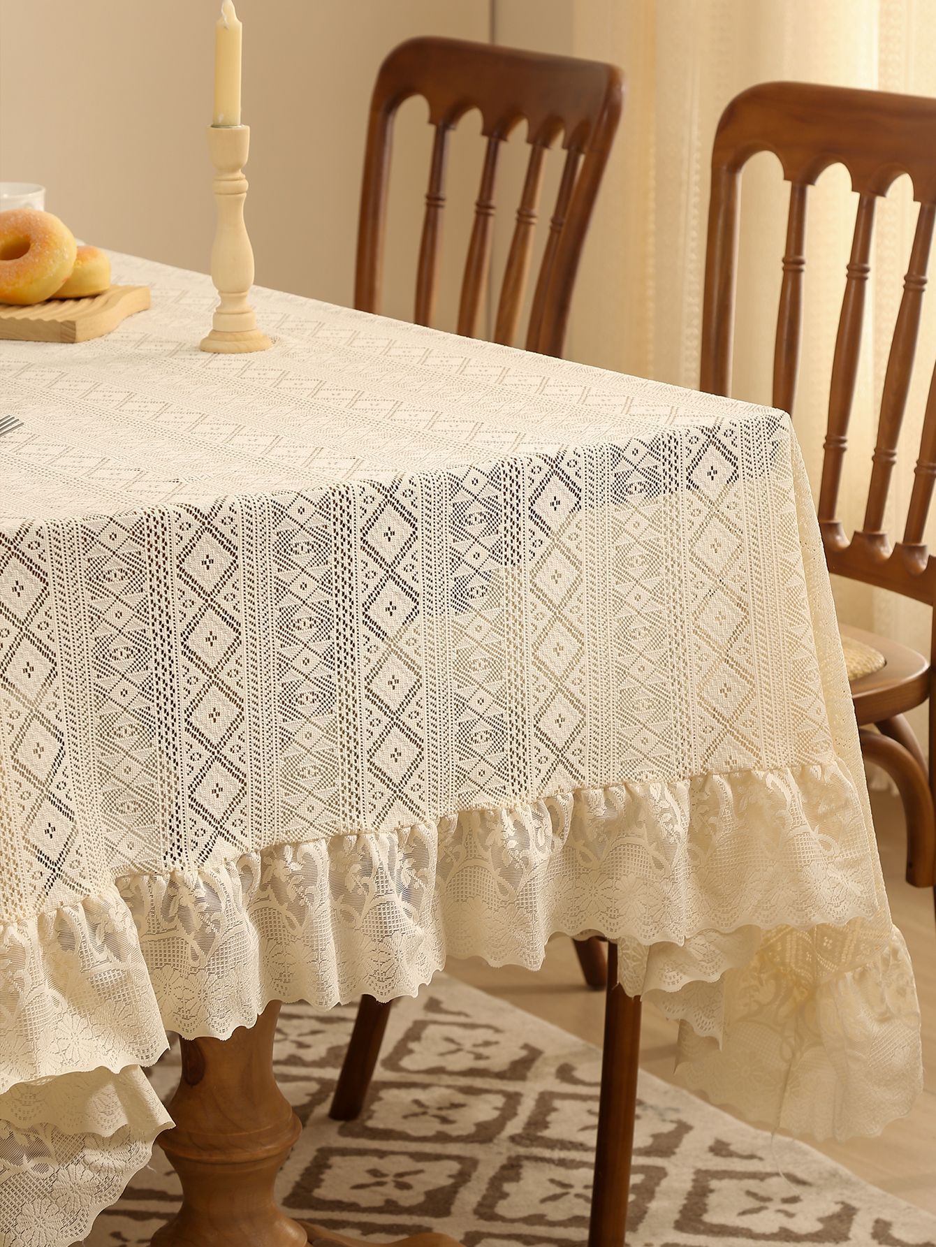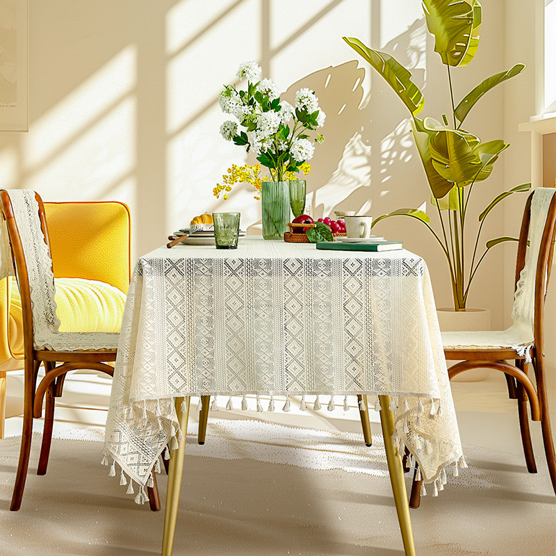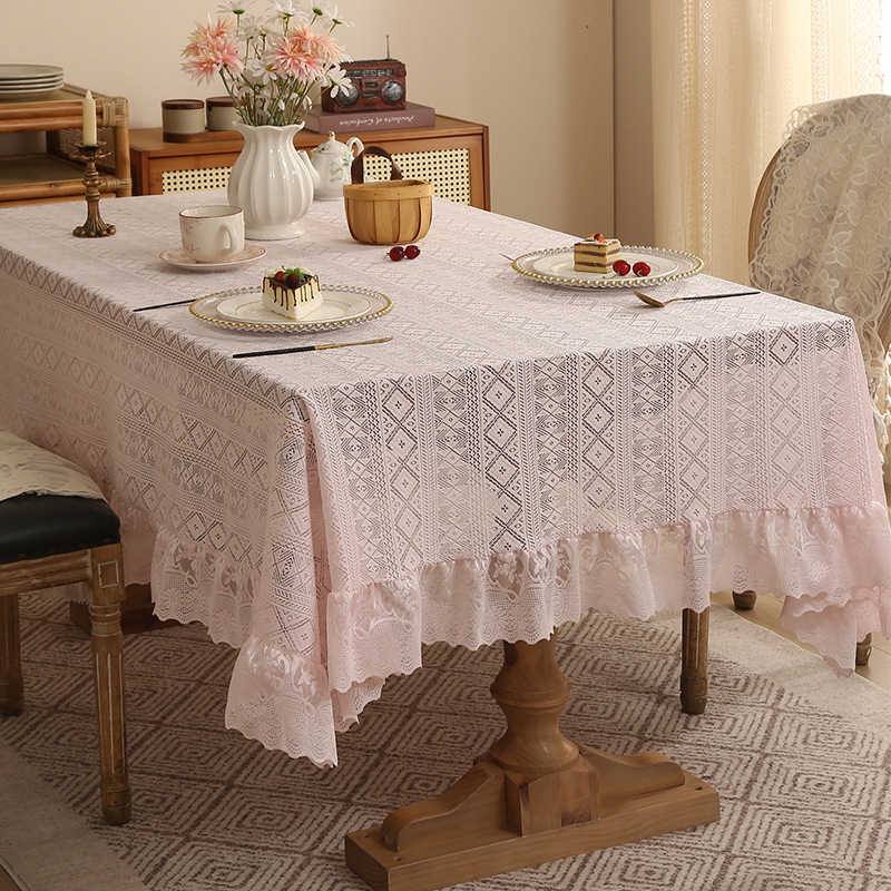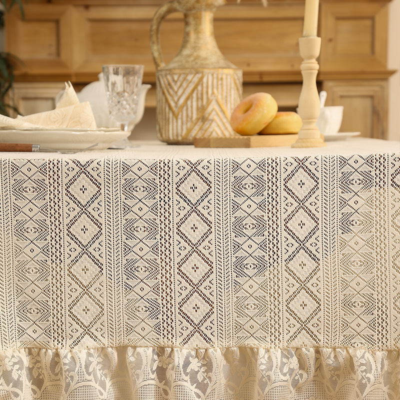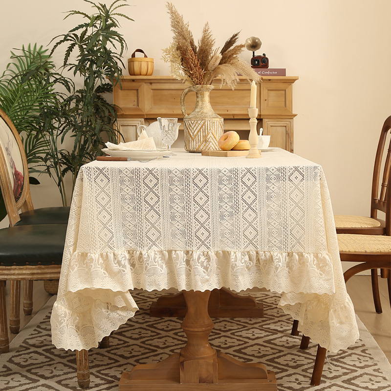 法式白色蕾丝荷叶边桌布氛围正方形复古茶几餐桌布