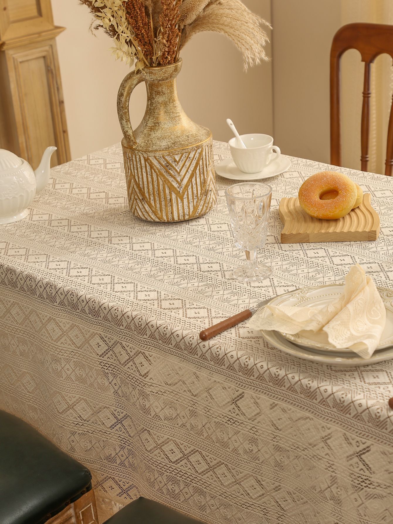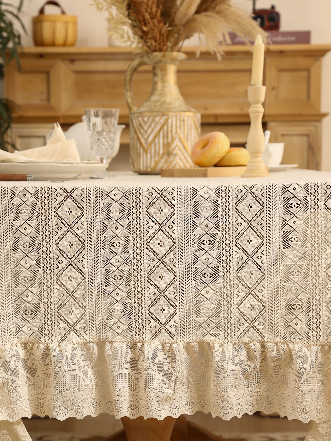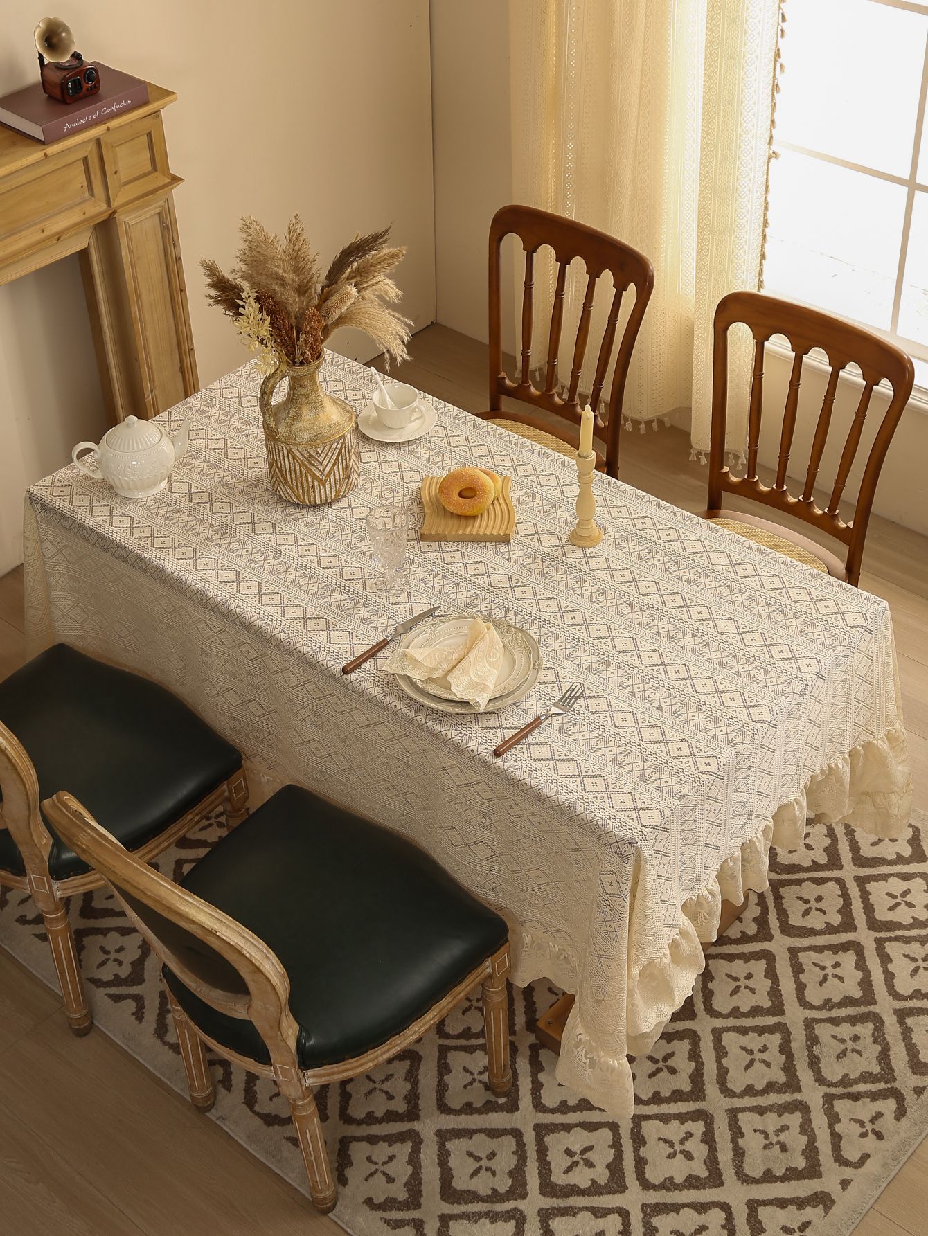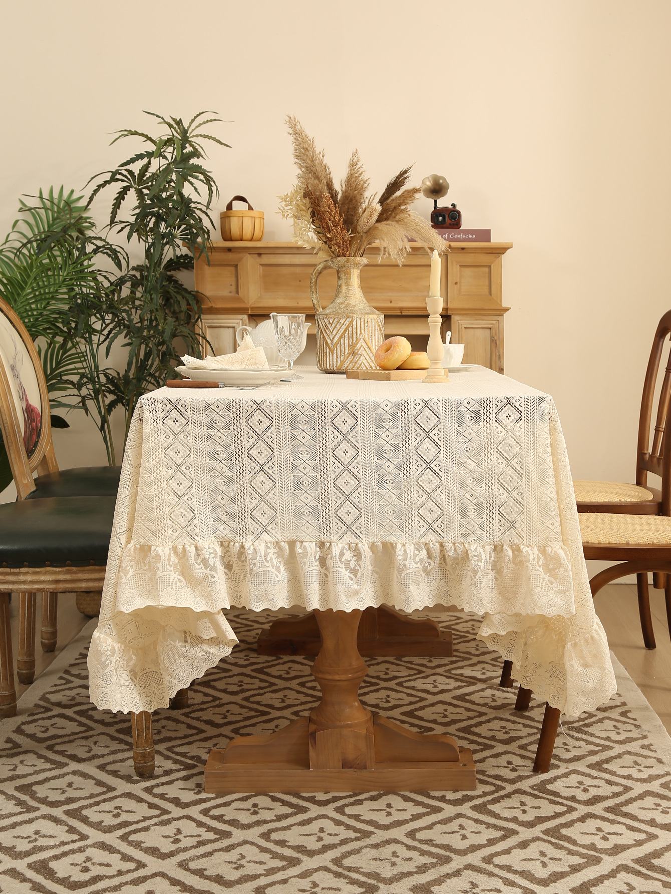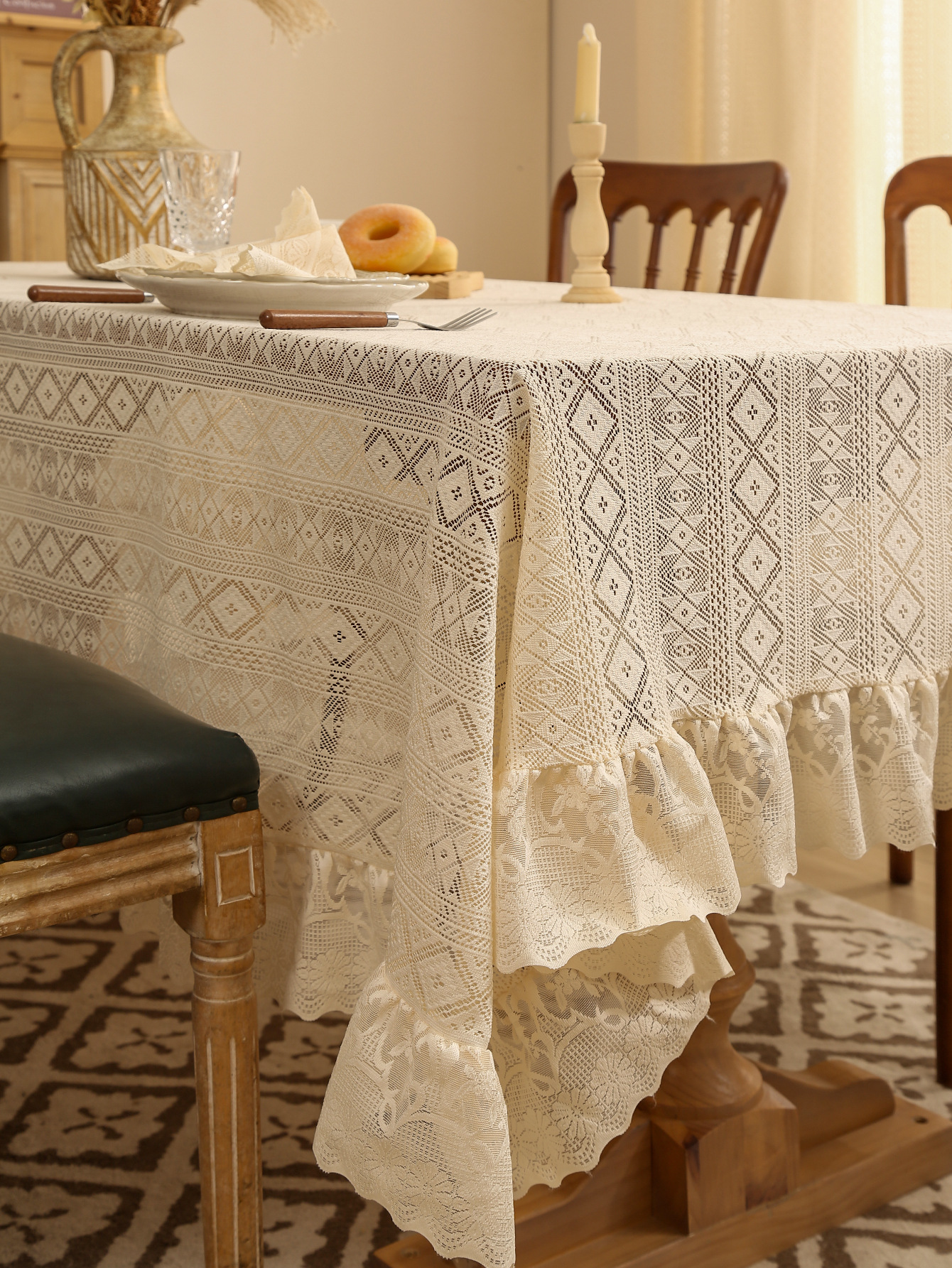 法式白色蕾丝荷叶边桌布氛围正方形复古茶几餐桌布