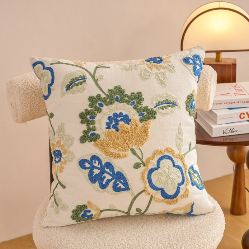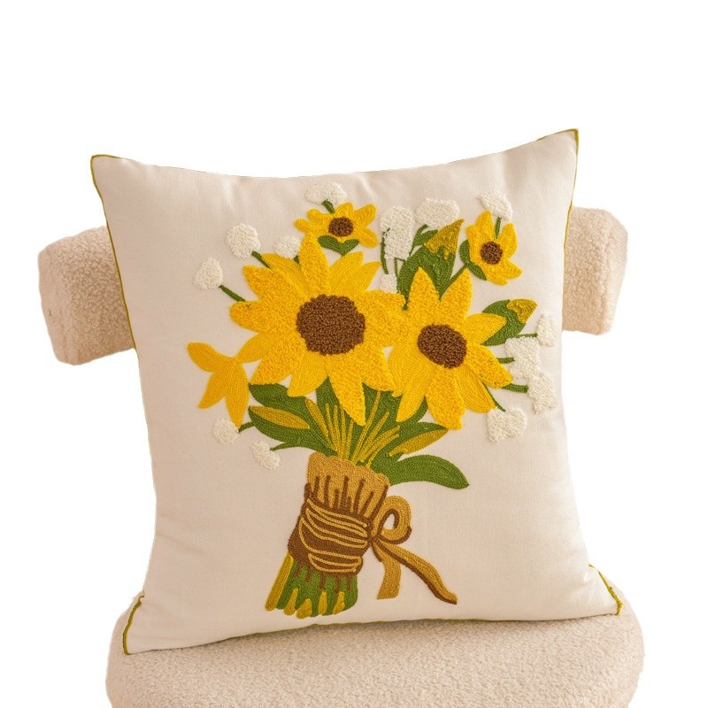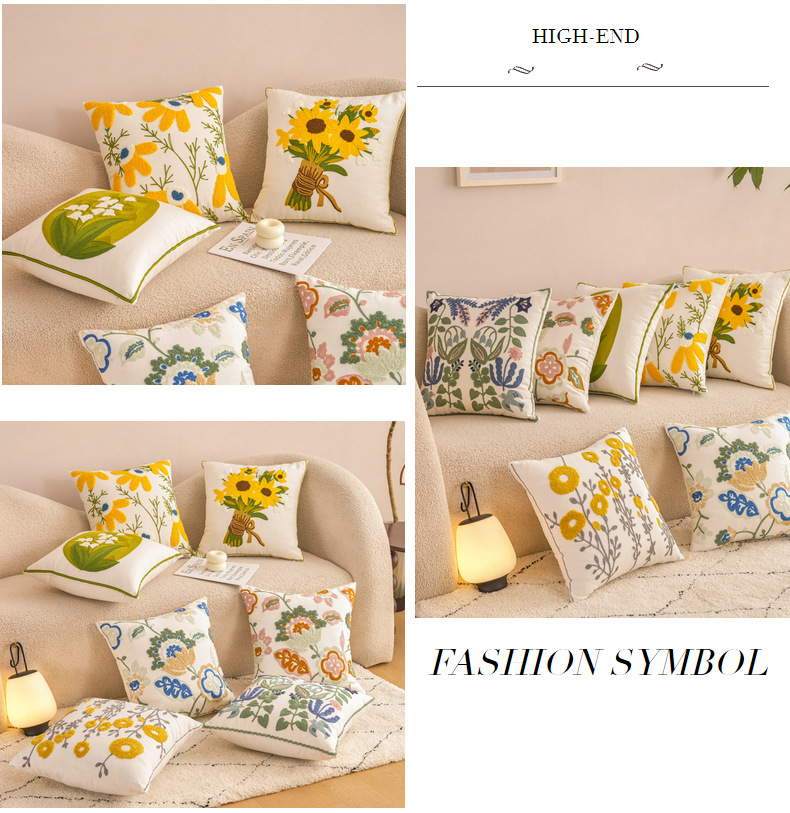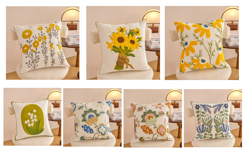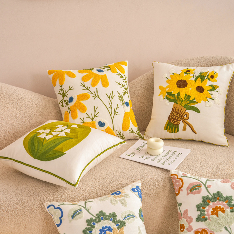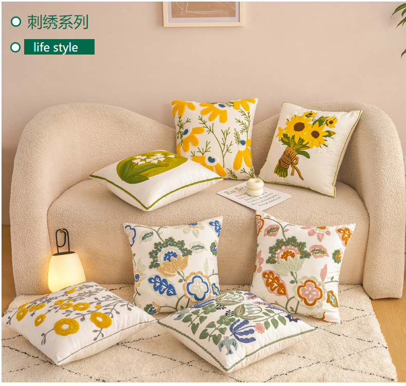 新款毛巾绣抱枕套田园风花朵沙发抱枕家居床头装饰靠垫办公室腰靠