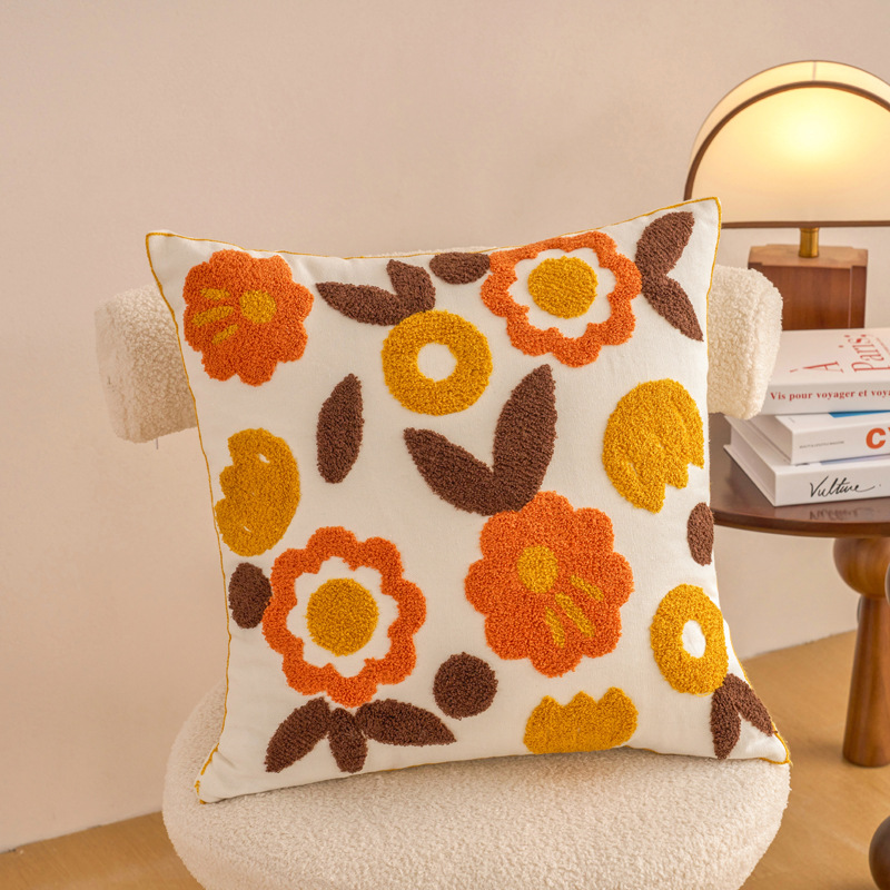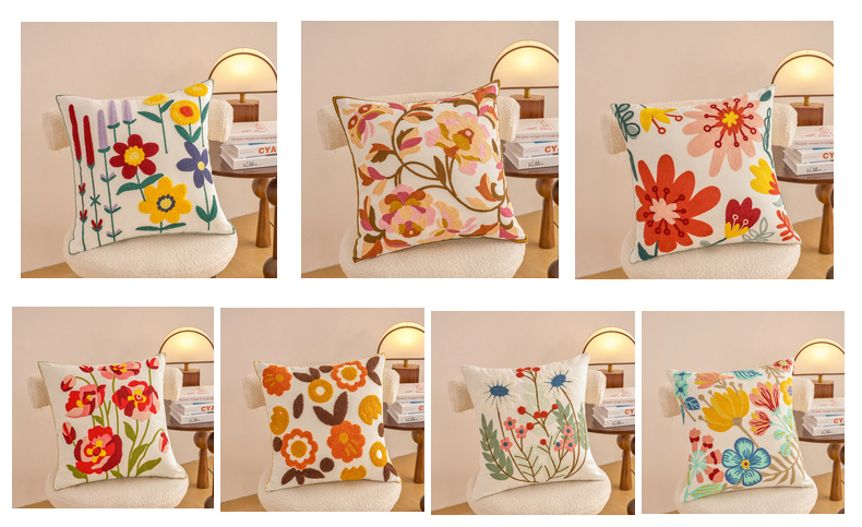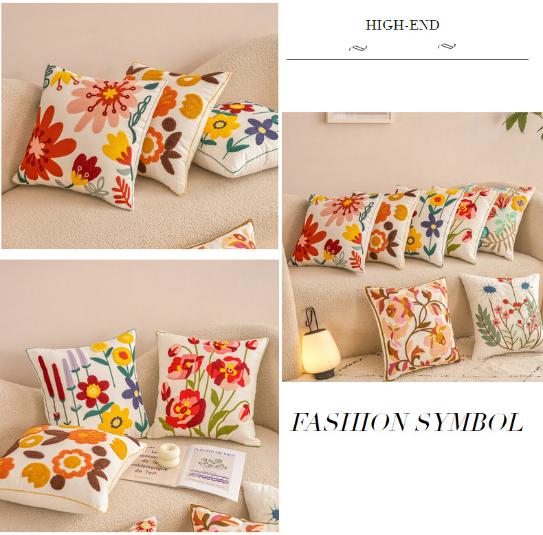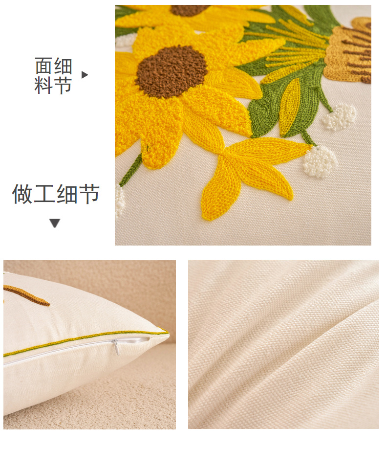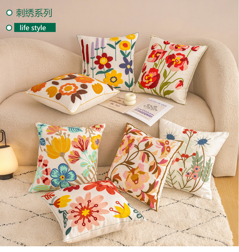 新款毛巾绣抱枕套田园风帆布沙发抱枕家居床头飘窗靠垫办公室腰靠