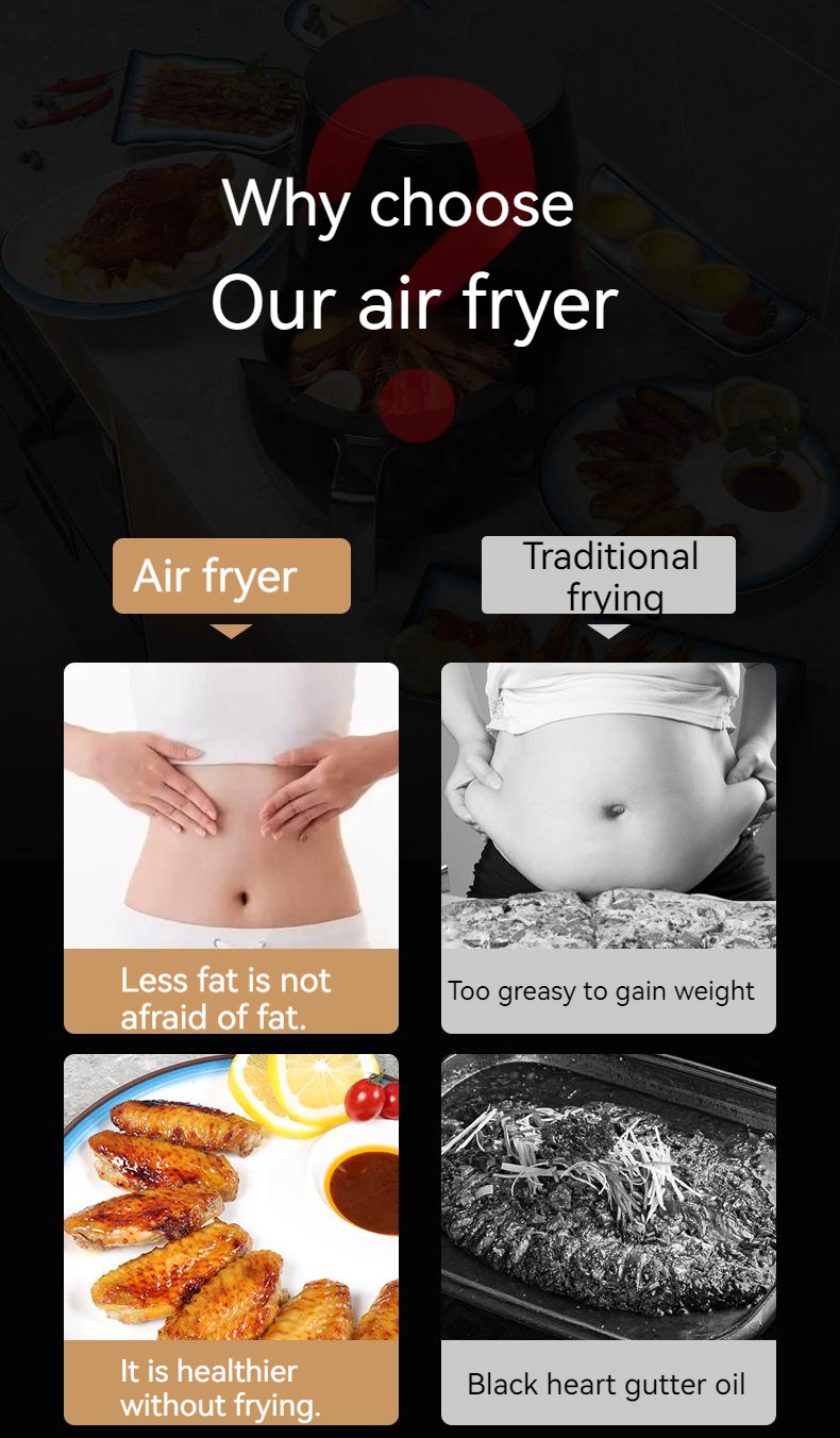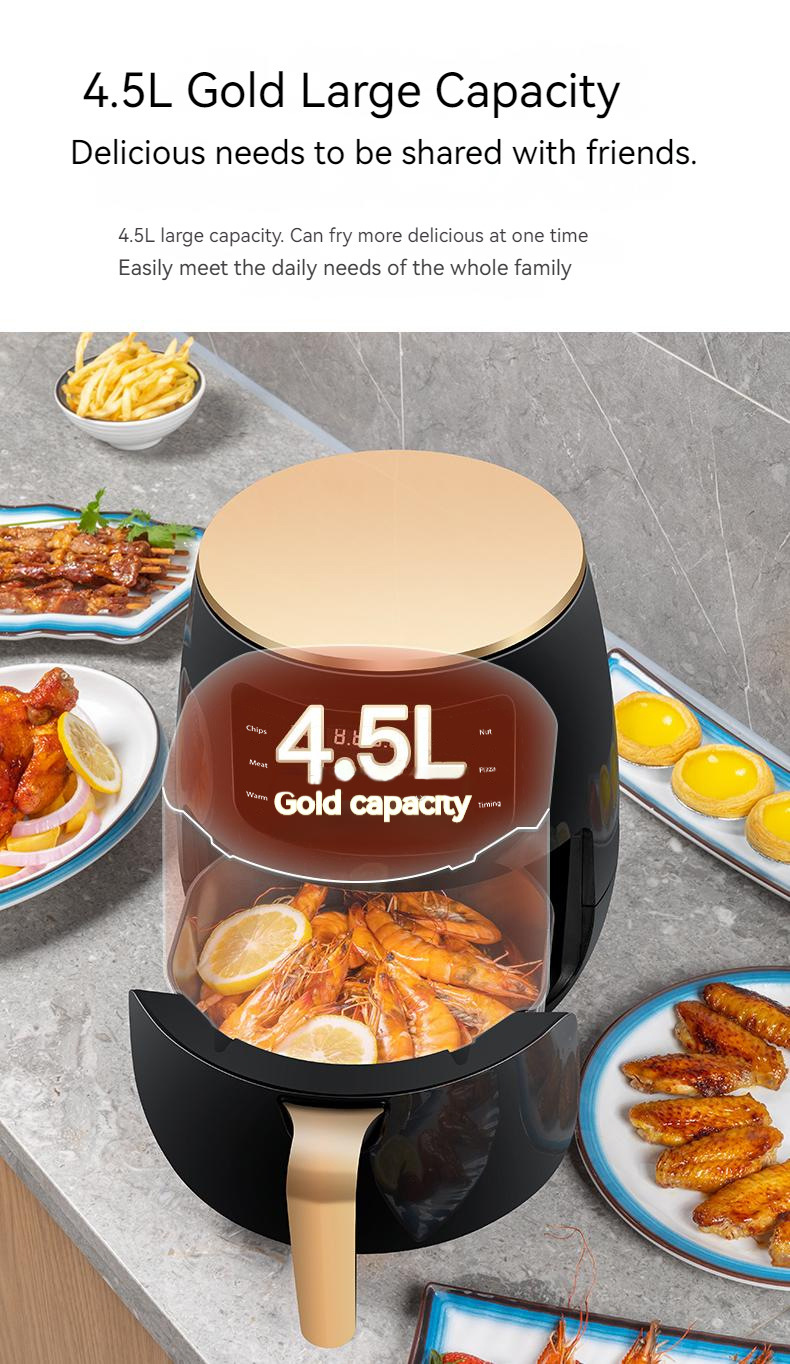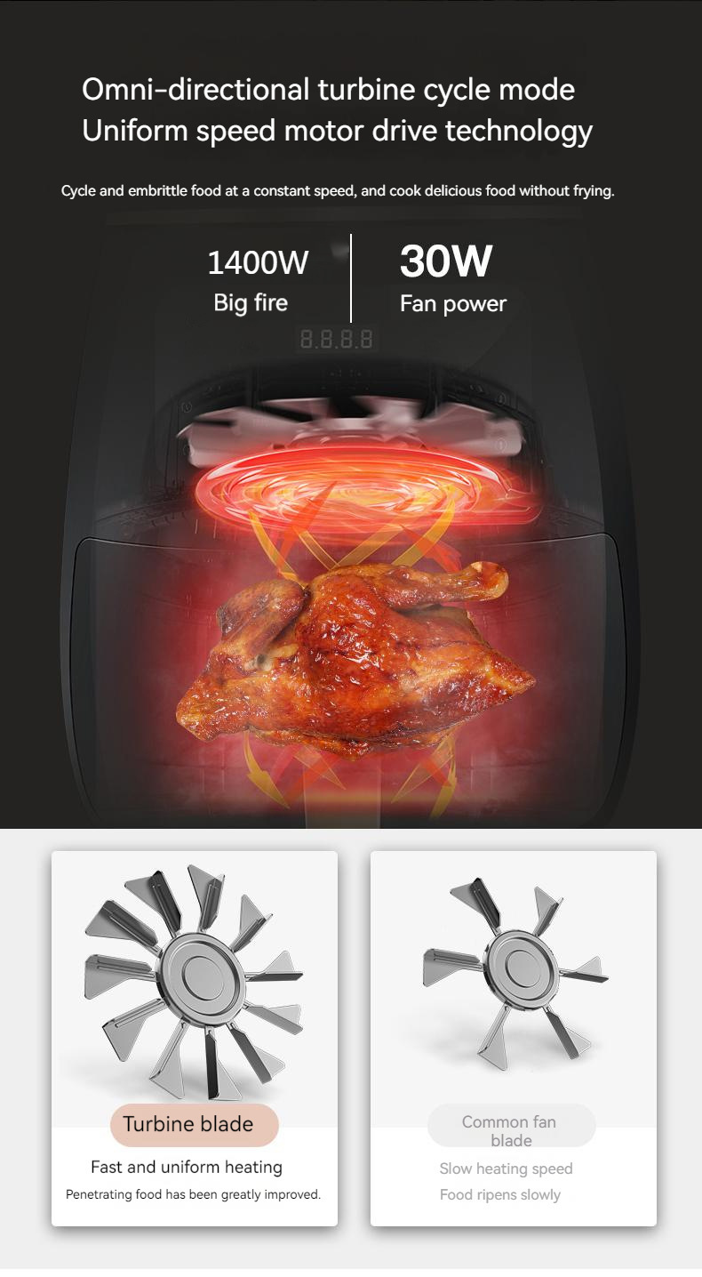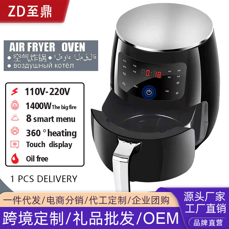 现货跨境6L智能触屏空气炸锅家用电炸一体锅110V空气炸锅炸鸡腿