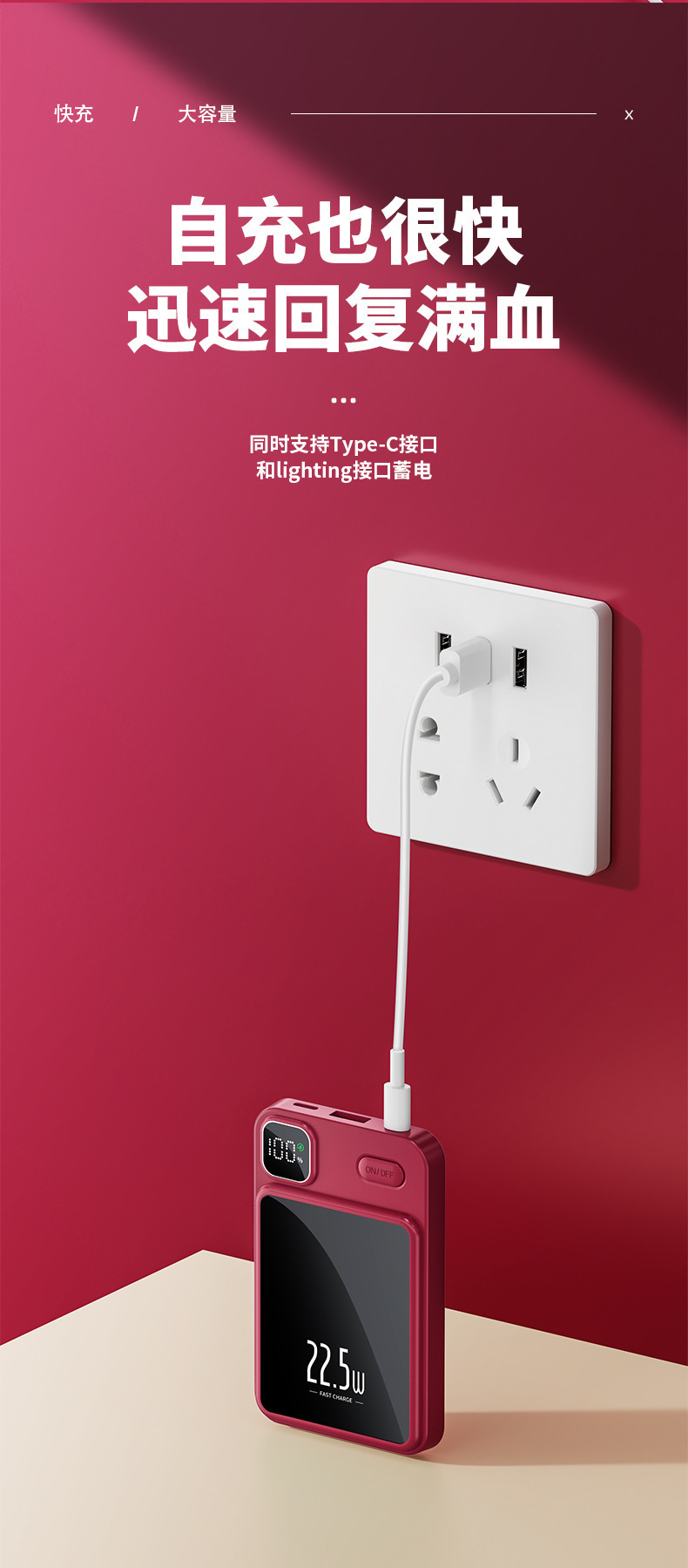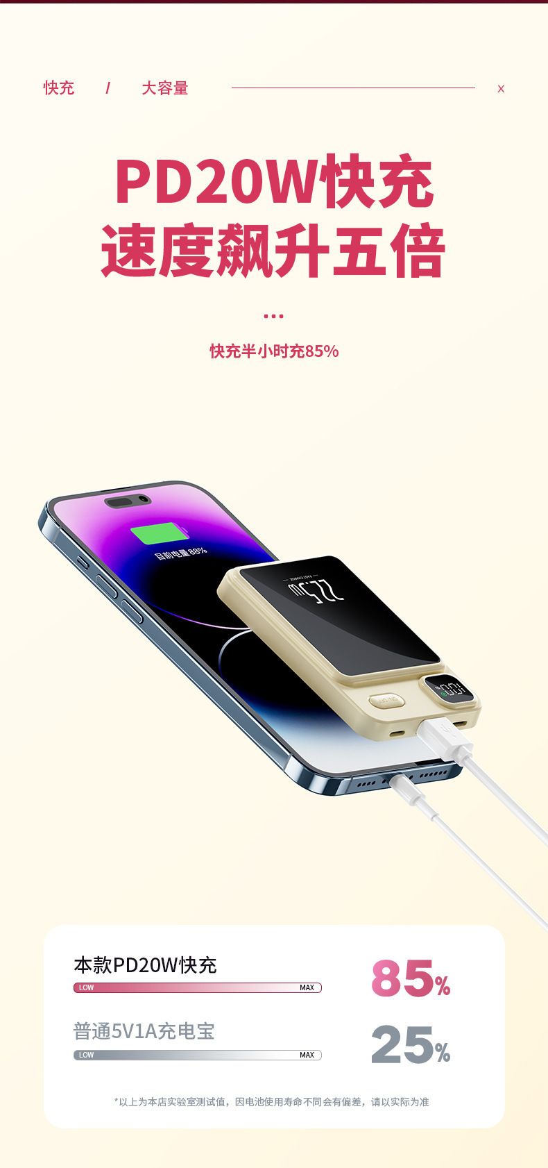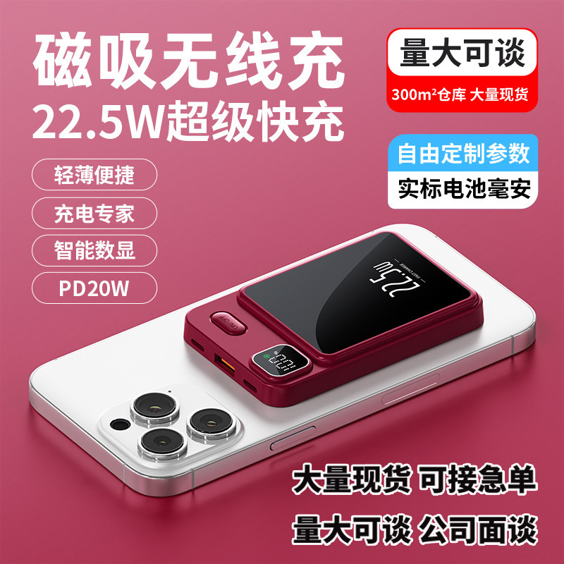 无线磁吸充电宝20000毫安超薄便携快充迷你小巧移动电源现货直发