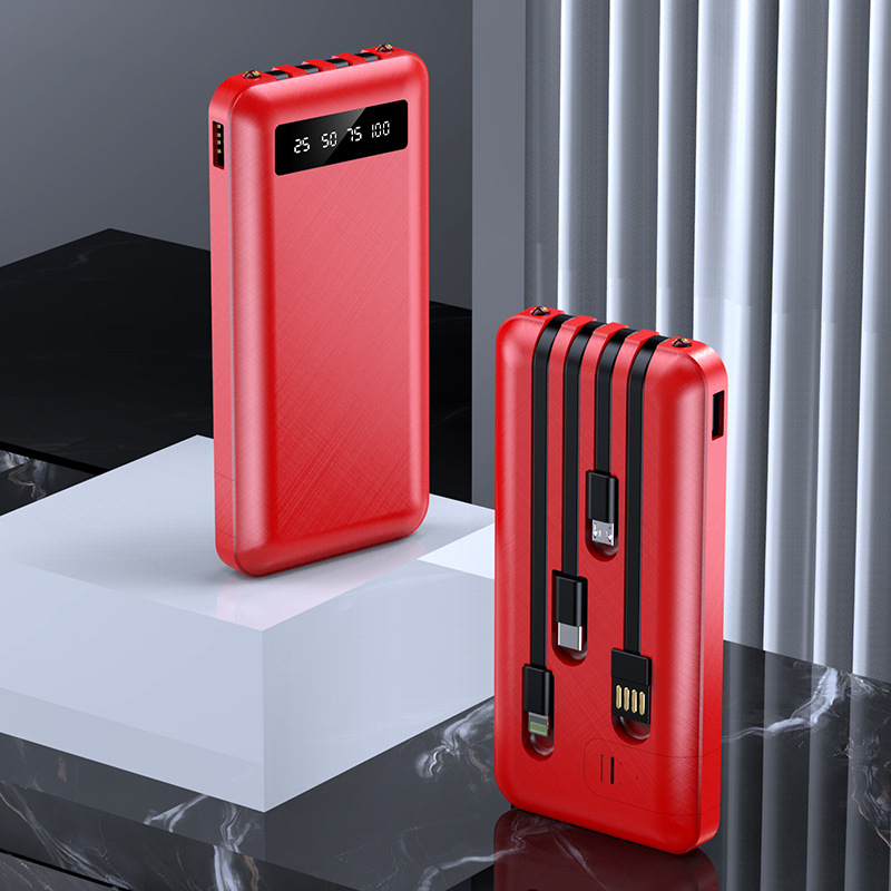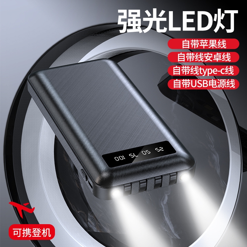 批发自带线充电宝20000毫安大容量轻薄快充移动电源礼品logo定制