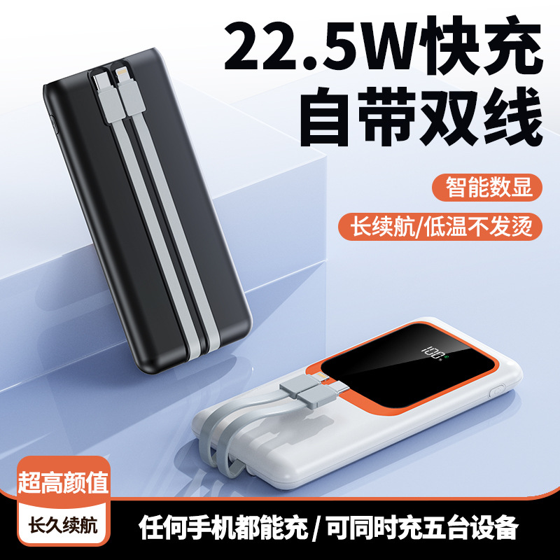 PD双向快充手机大容量自带线充电宝10000毫安移动电源定Logo图案