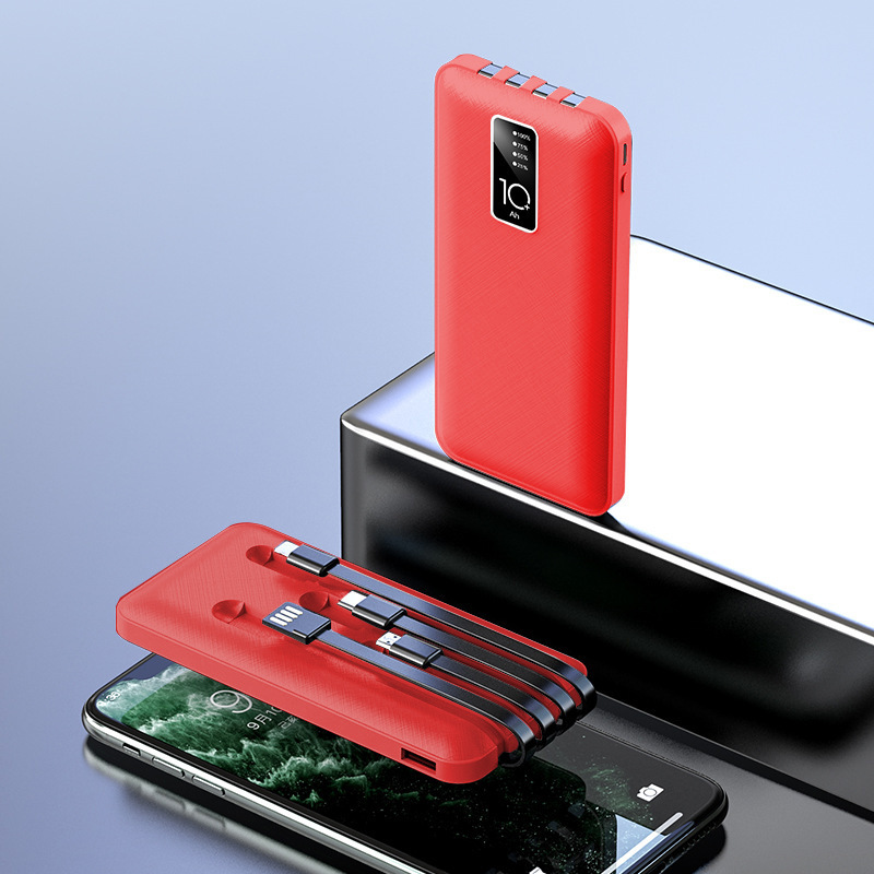 批发自带线充电宝20000毫安大容量迷你快充移动电源礼品logo定制