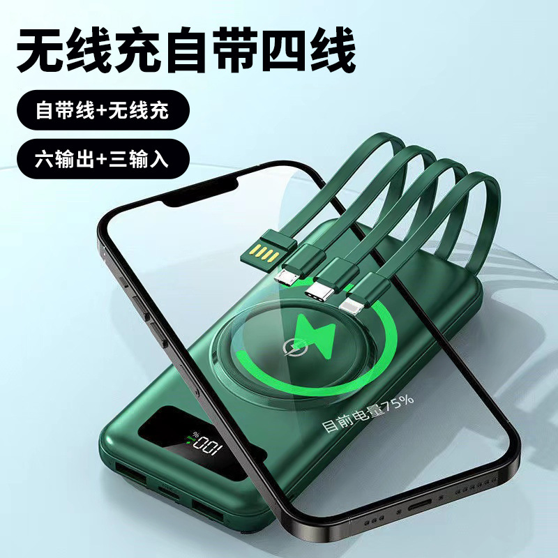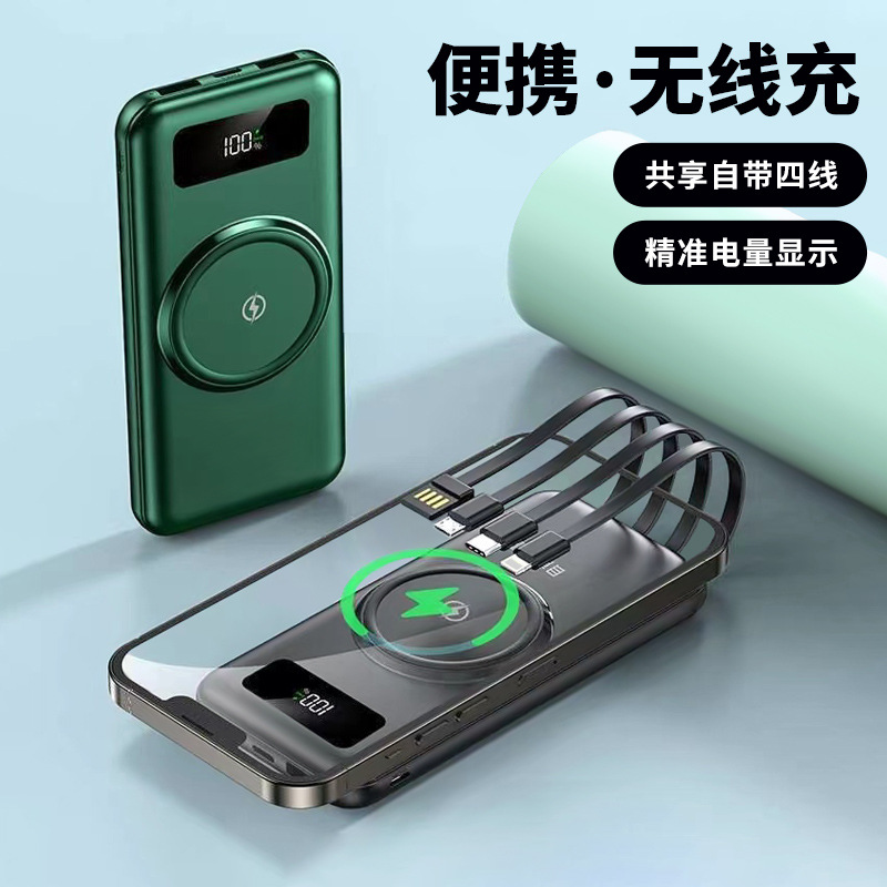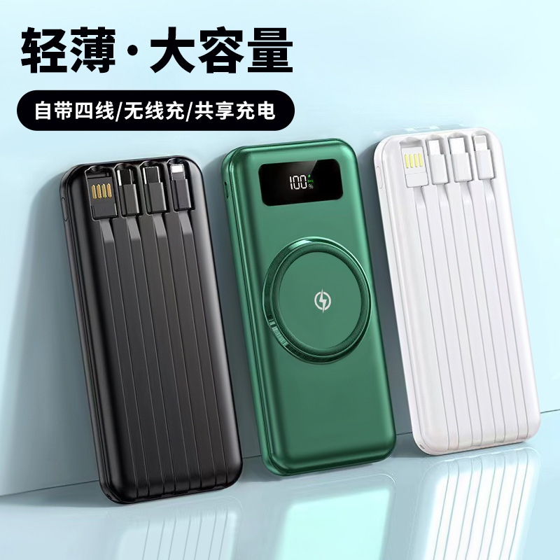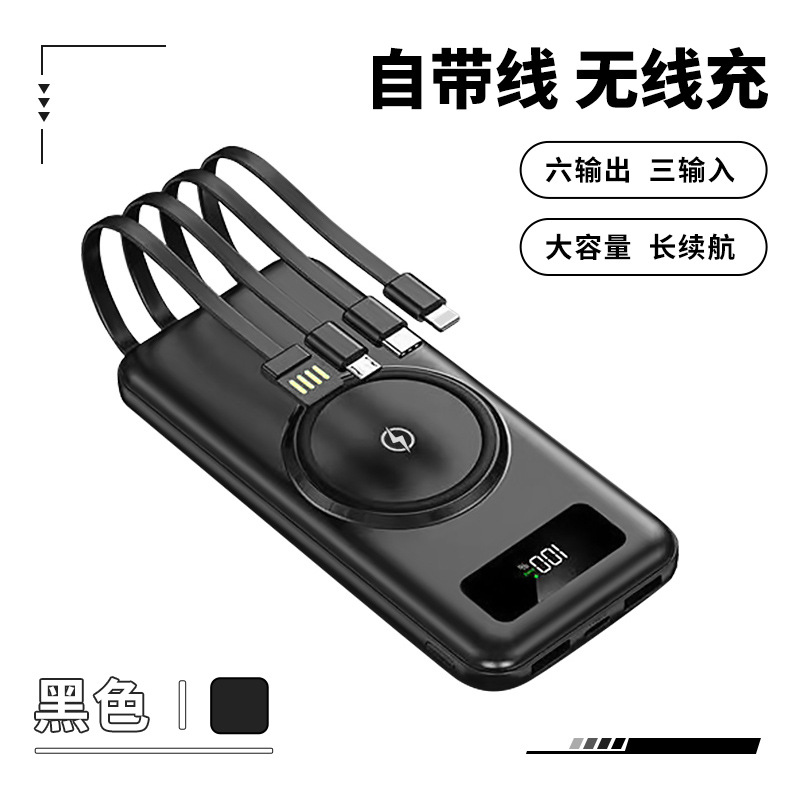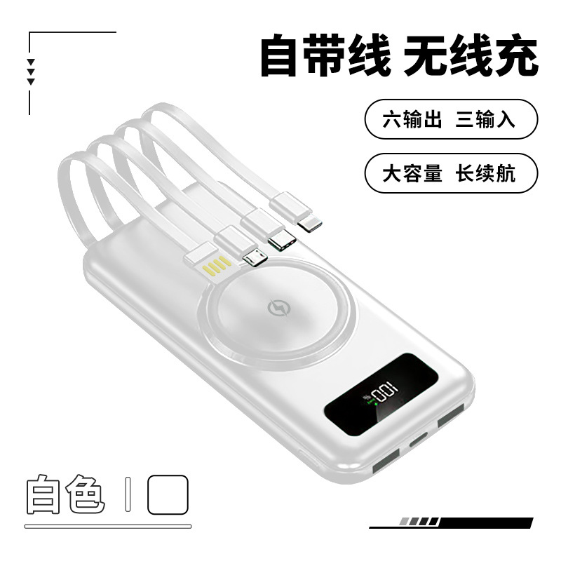 新品自带线无线充电宝便携数显20000毫安大容量手机无线移动电源
