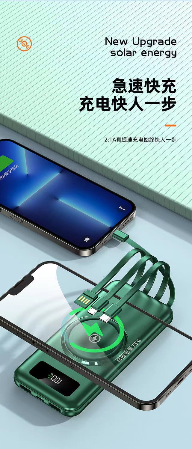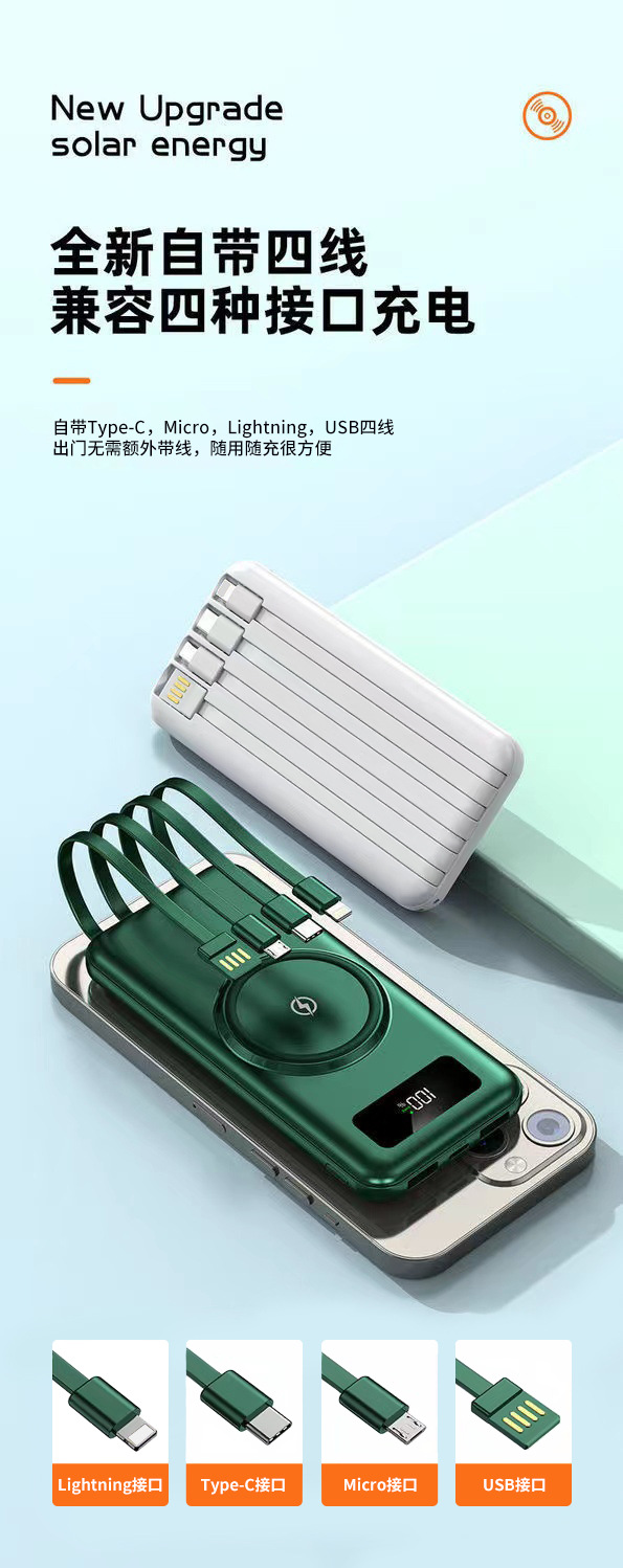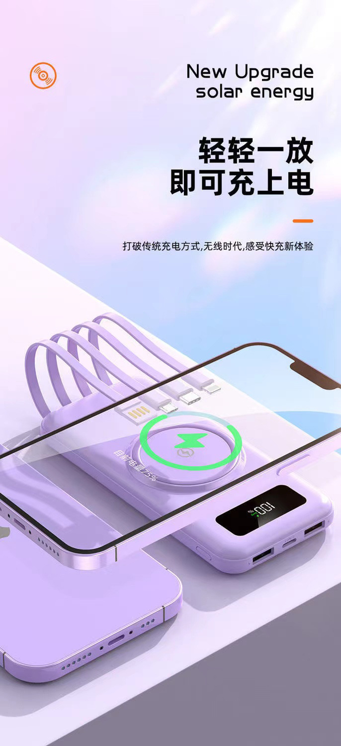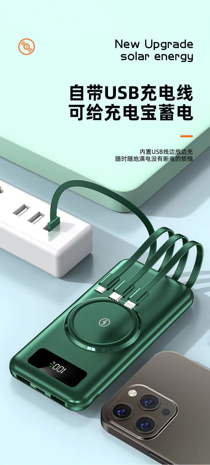 新品自带线无线充电宝便携数显20000毫安大容量手机无线移动电源