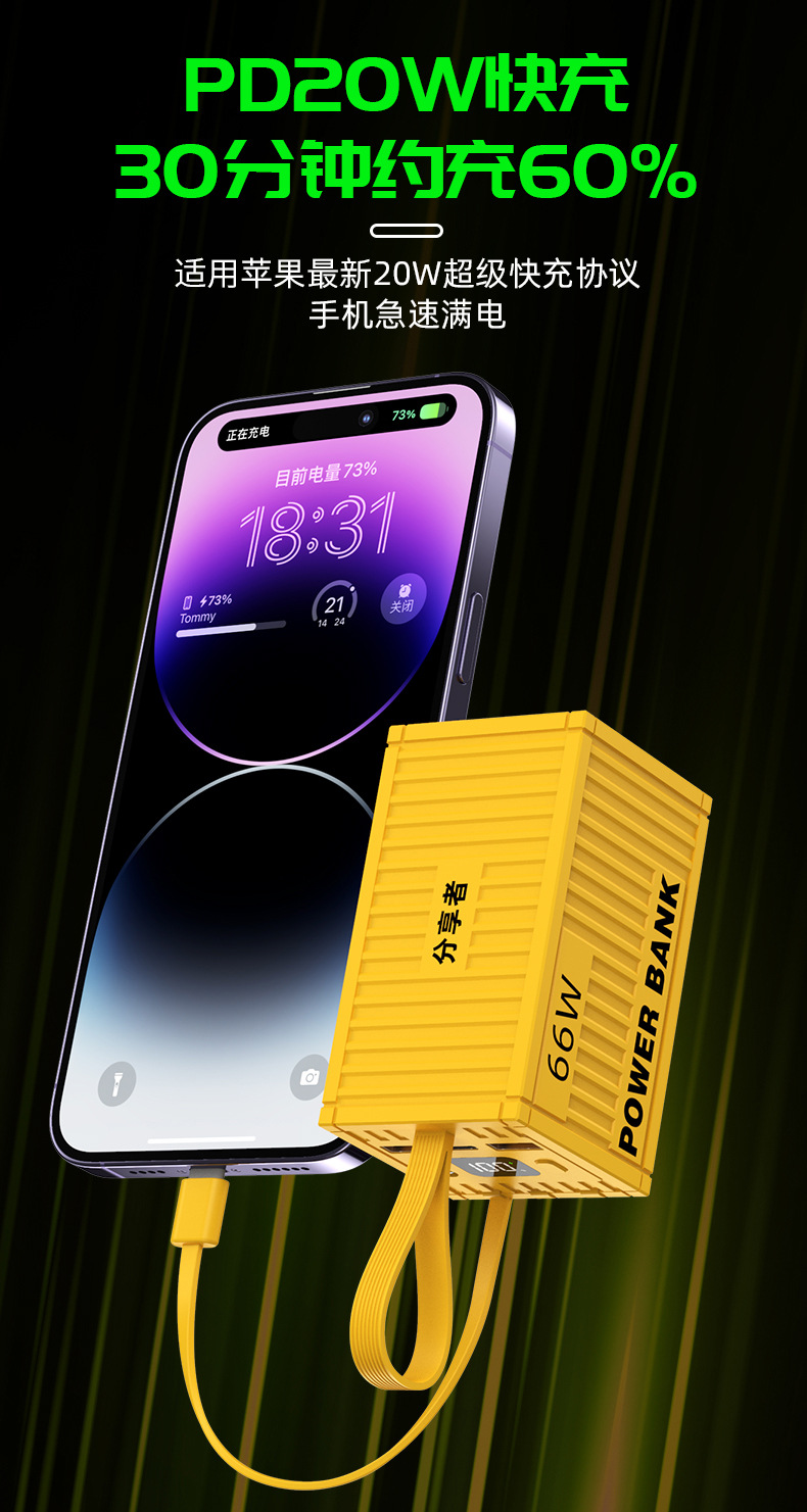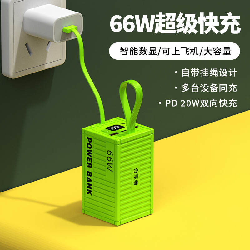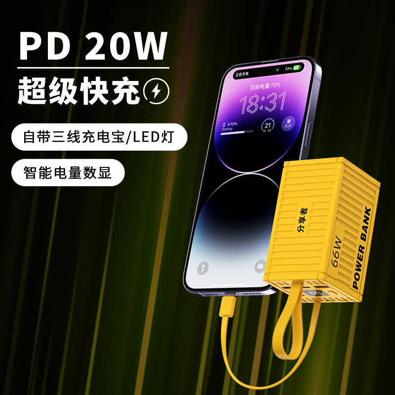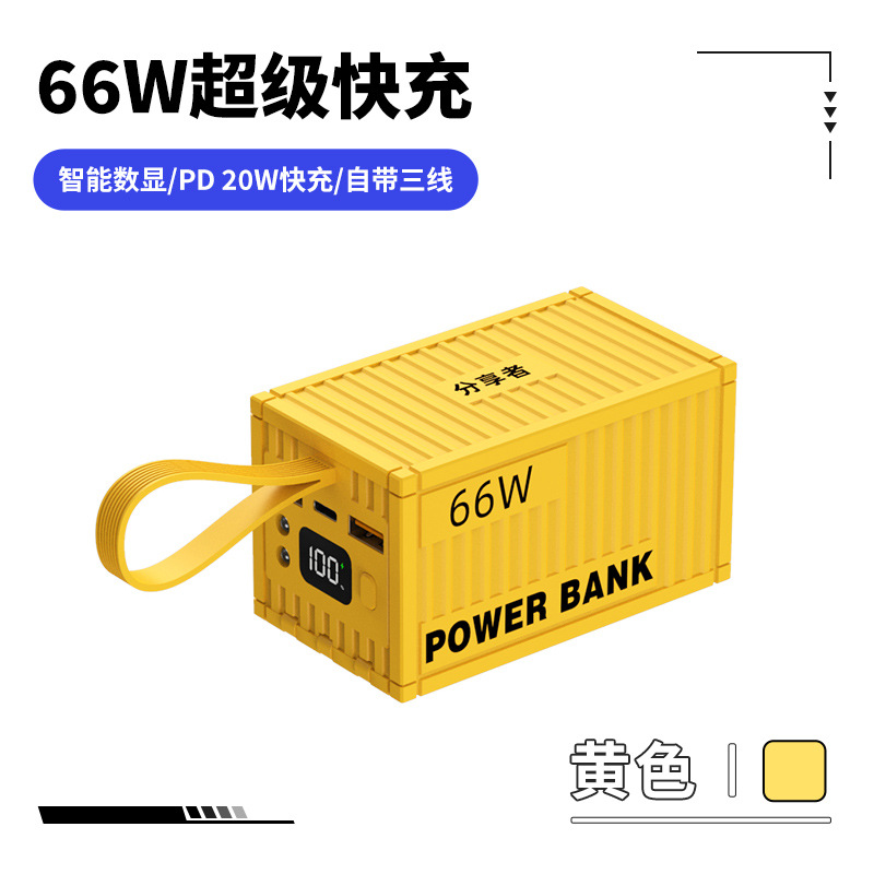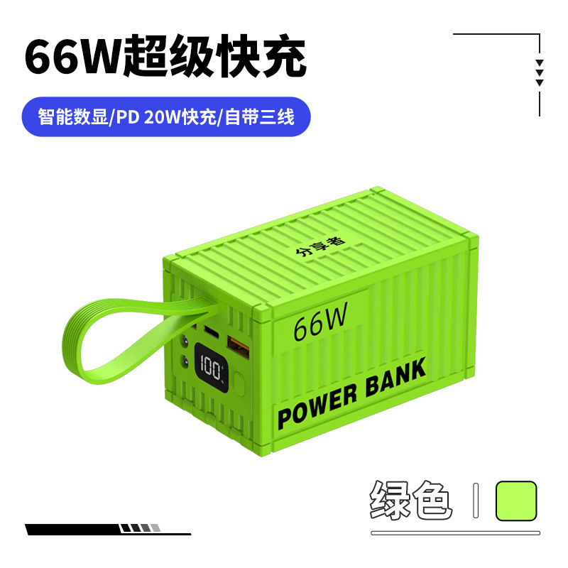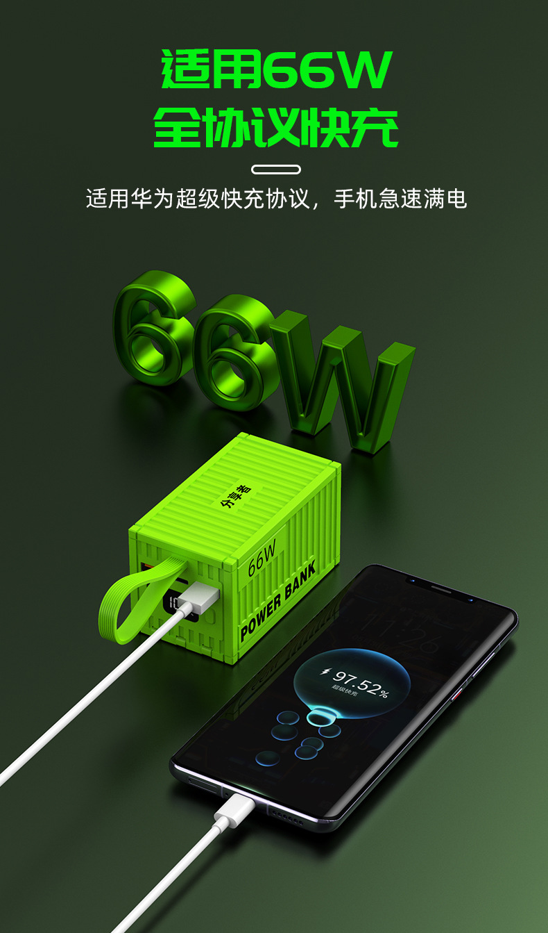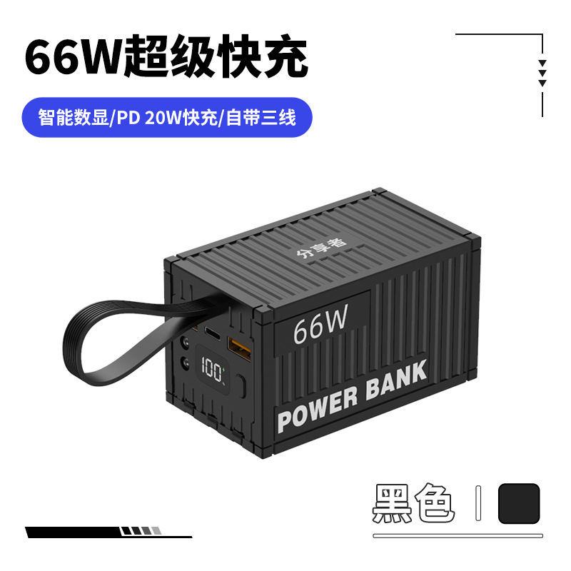 创意带线大容量集装箱66W超级快充电宝20000毫安移动电源印制LOGO