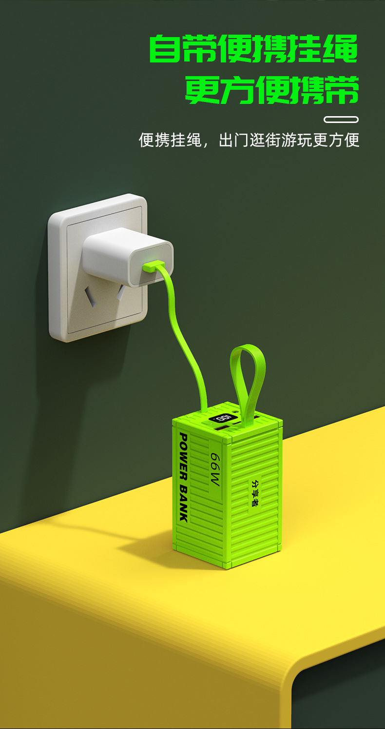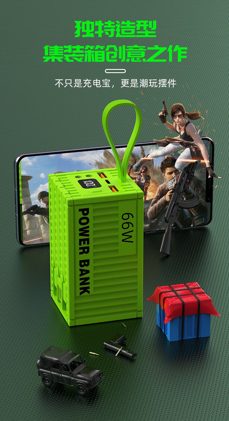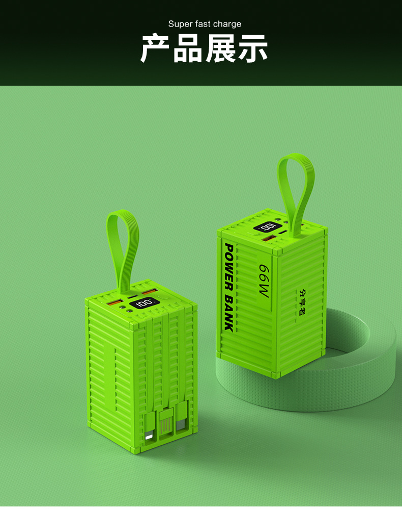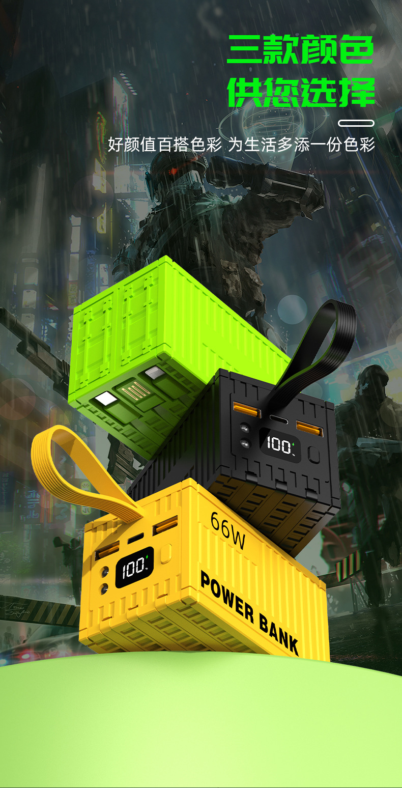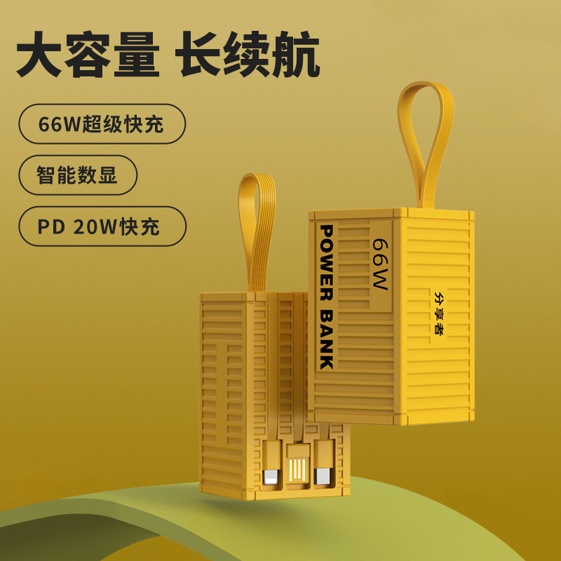 创意带线大容量集装箱66W超级快充电宝20000毫安移动电源印制LOGO
