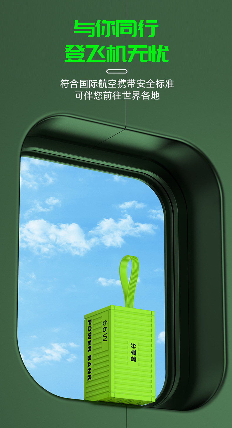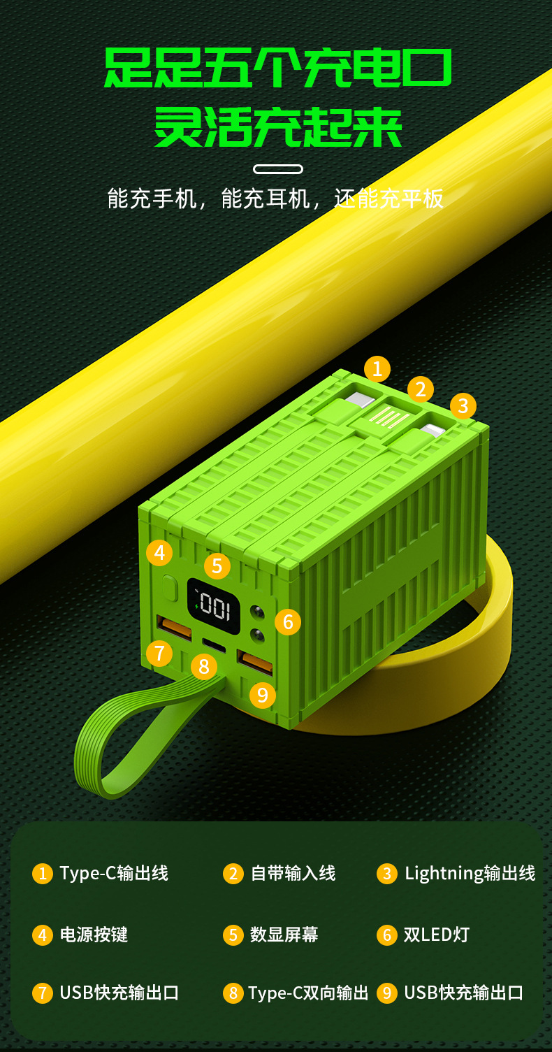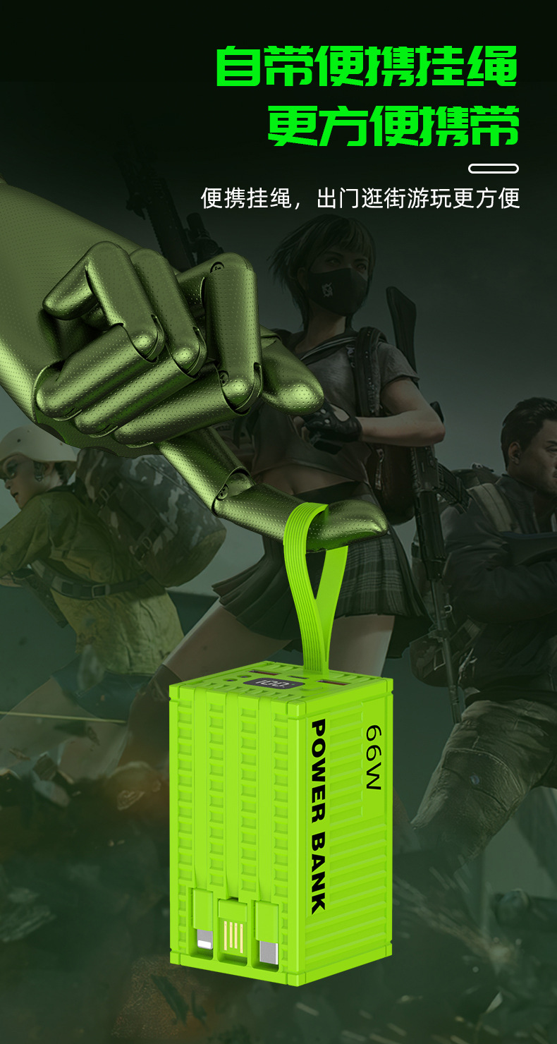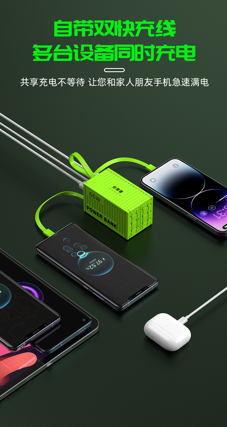 创意带线大容量集装箱66W超级快充电宝20000毫安移动电源印制LOGO