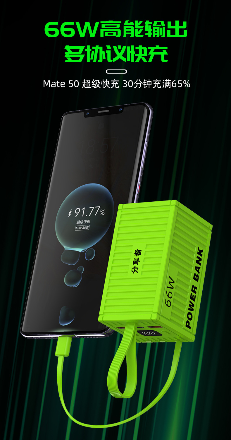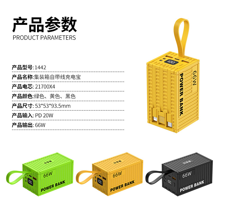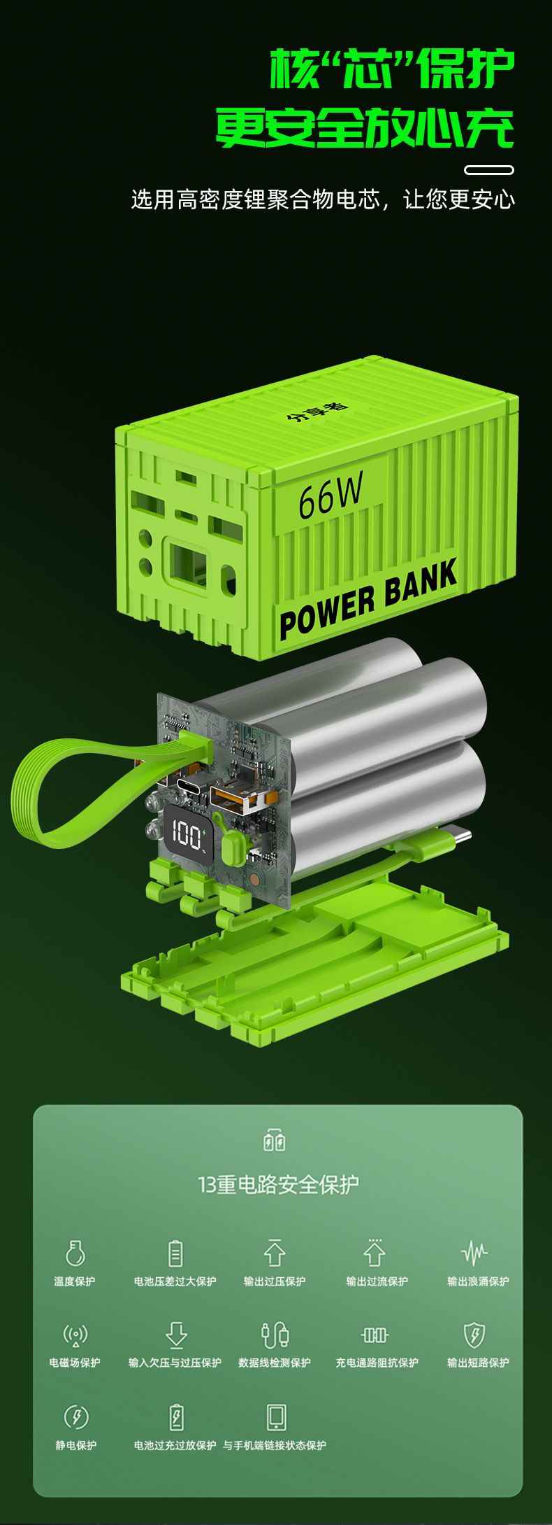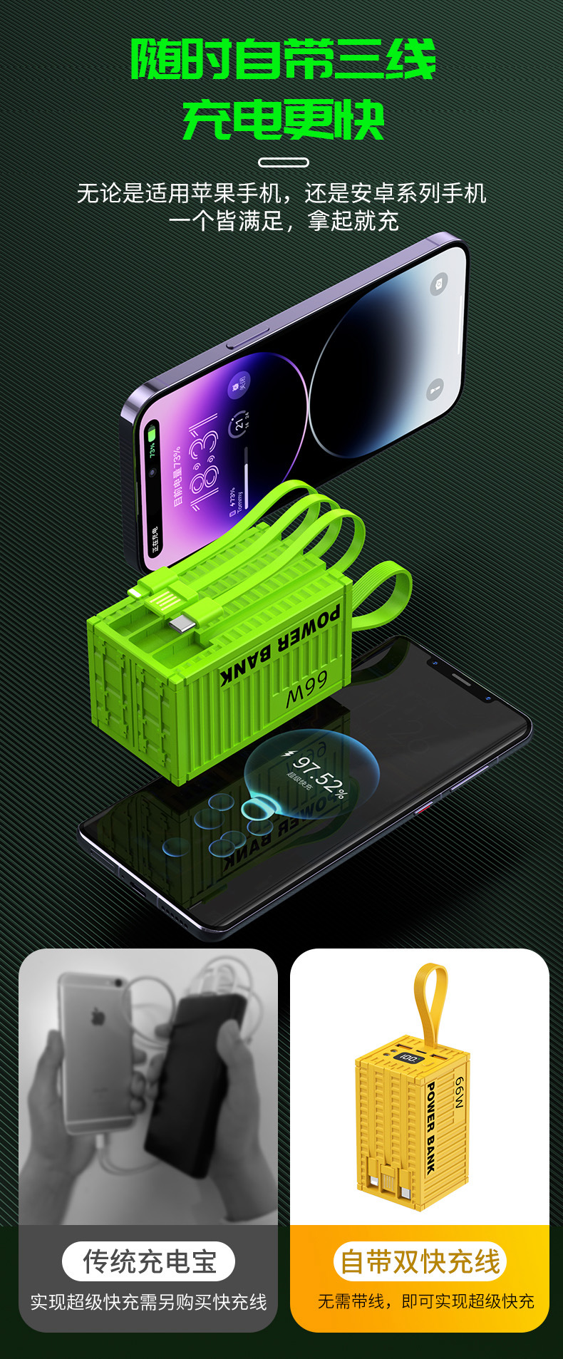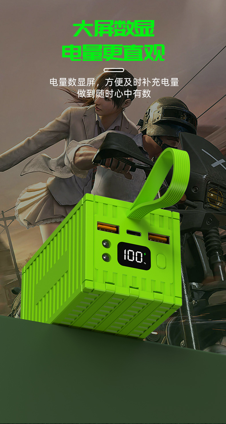 创意带线大容量集装箱66W超级快充电宝20000毫安移动电源印制LOGO