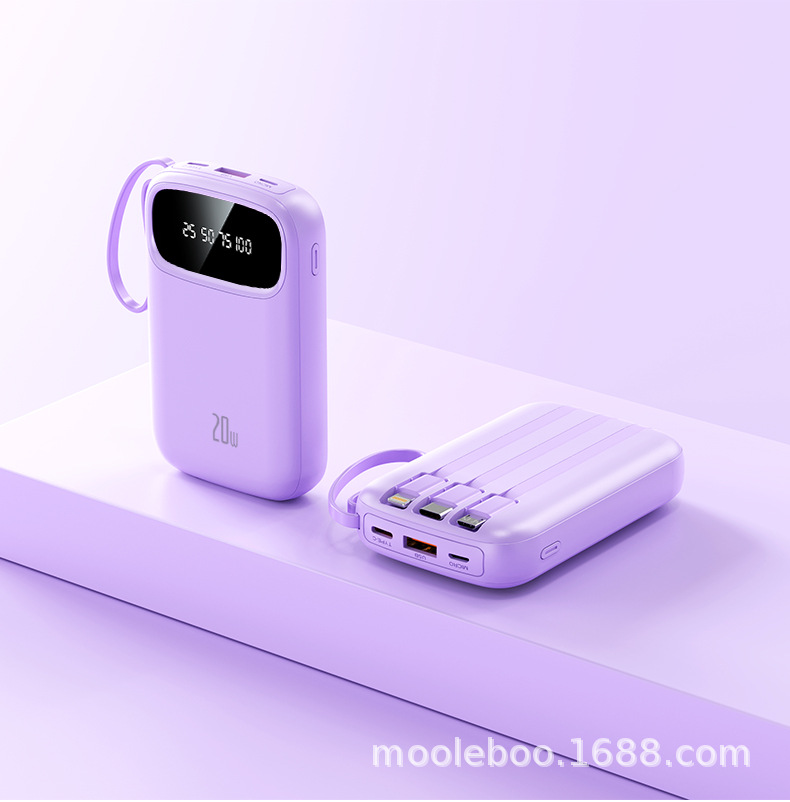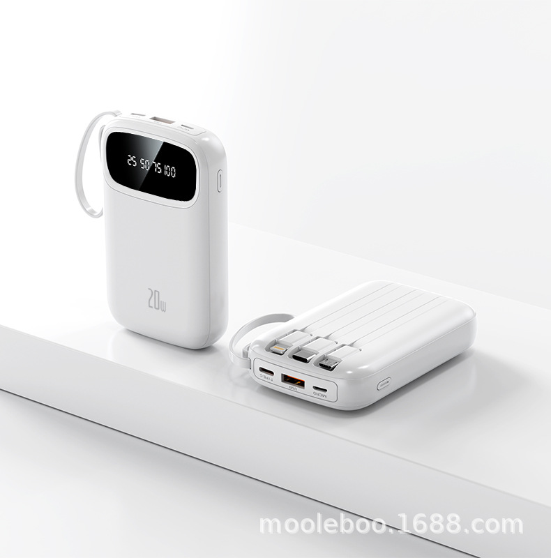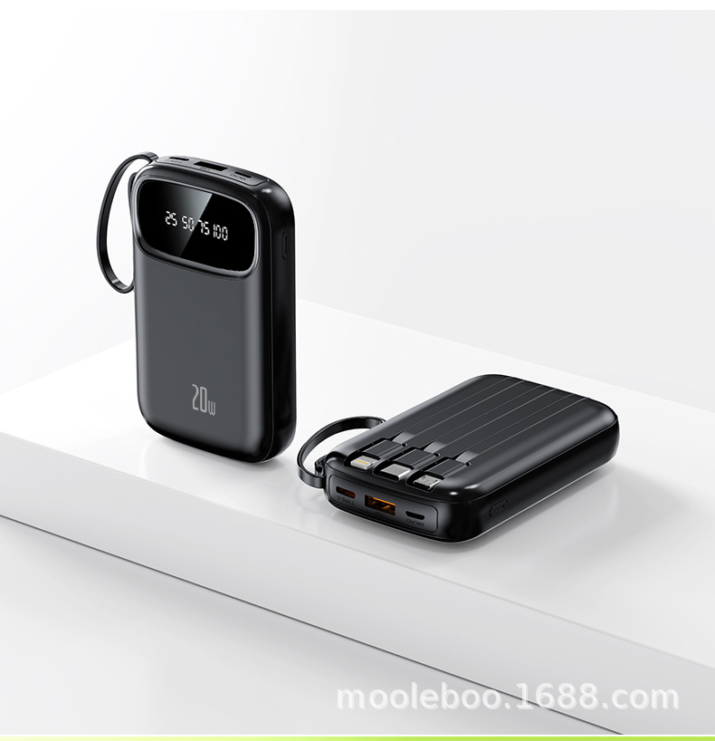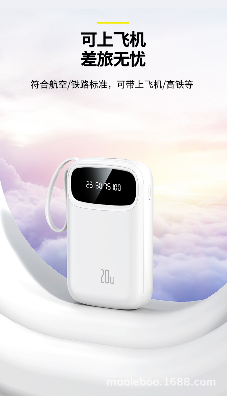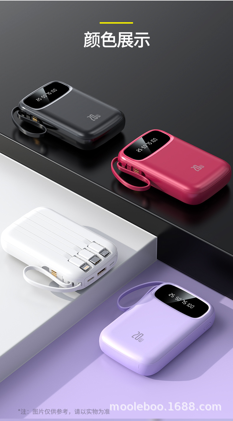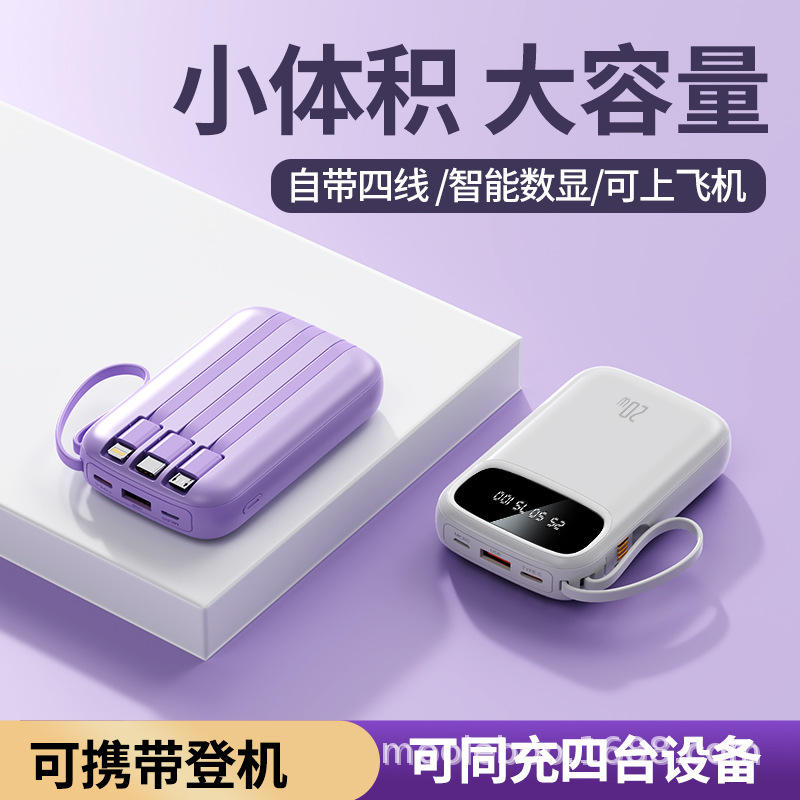 批发充电宝20000毫安自带线小巧迷你便携共享快充移动电源可 印制