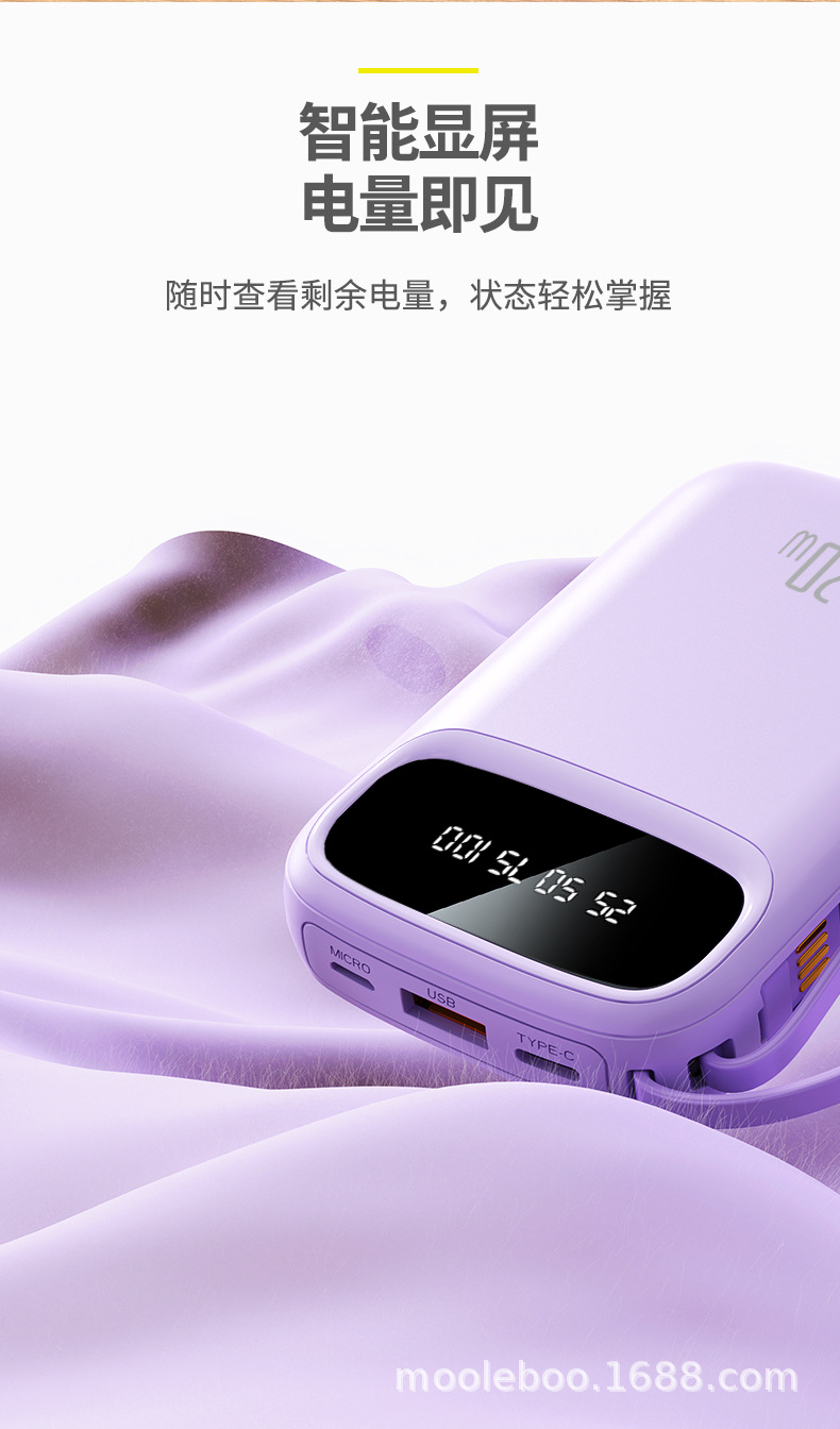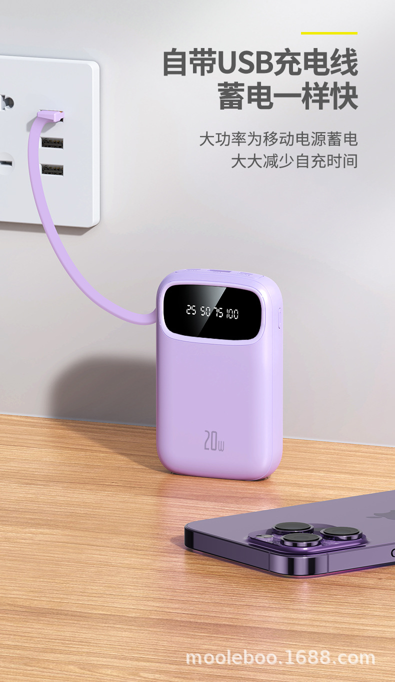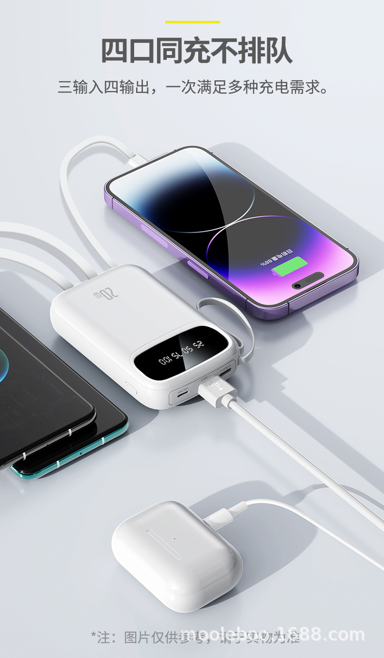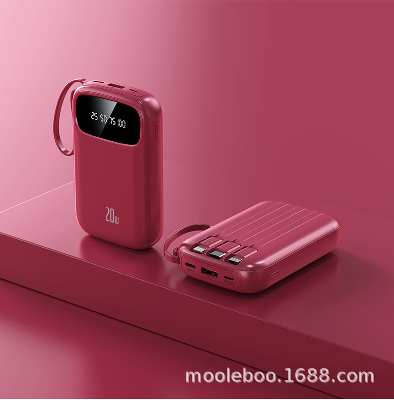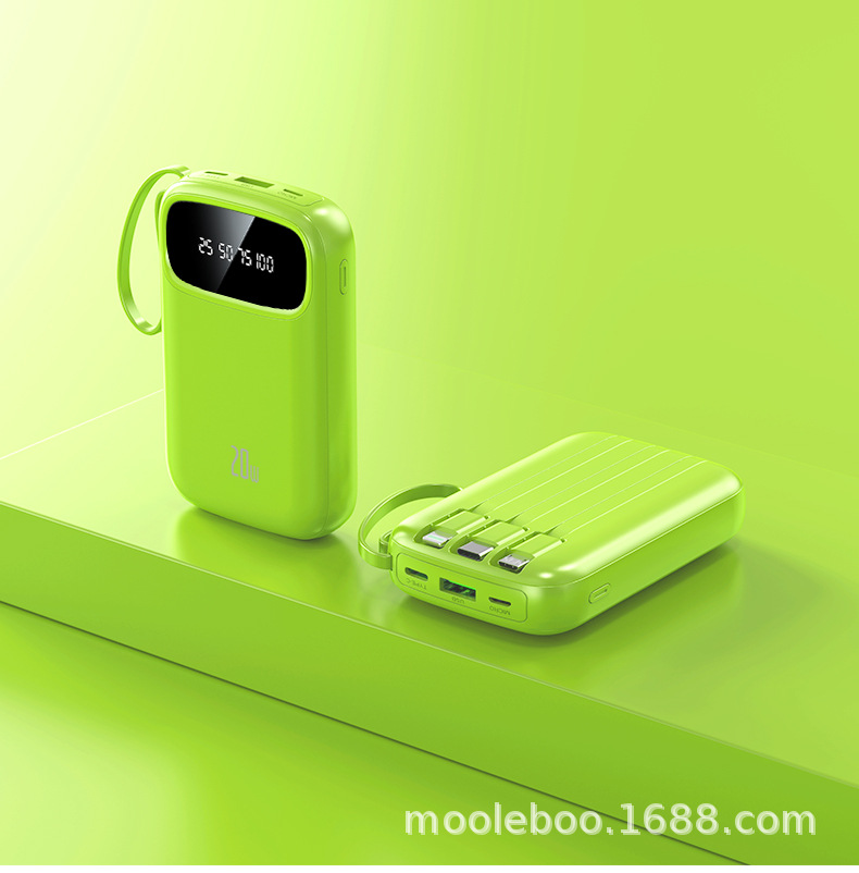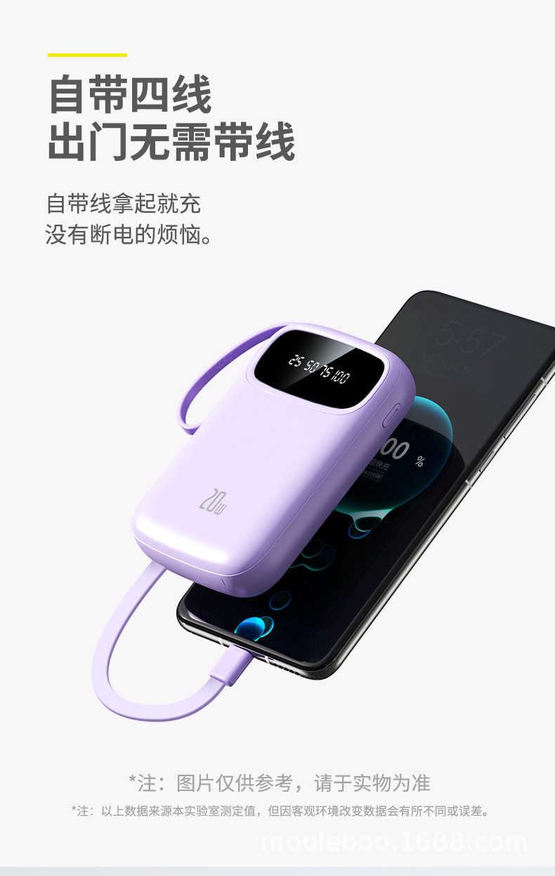 批发充电宝20000毫安自带线小巧迷你便携共享快充移动电源可 印制