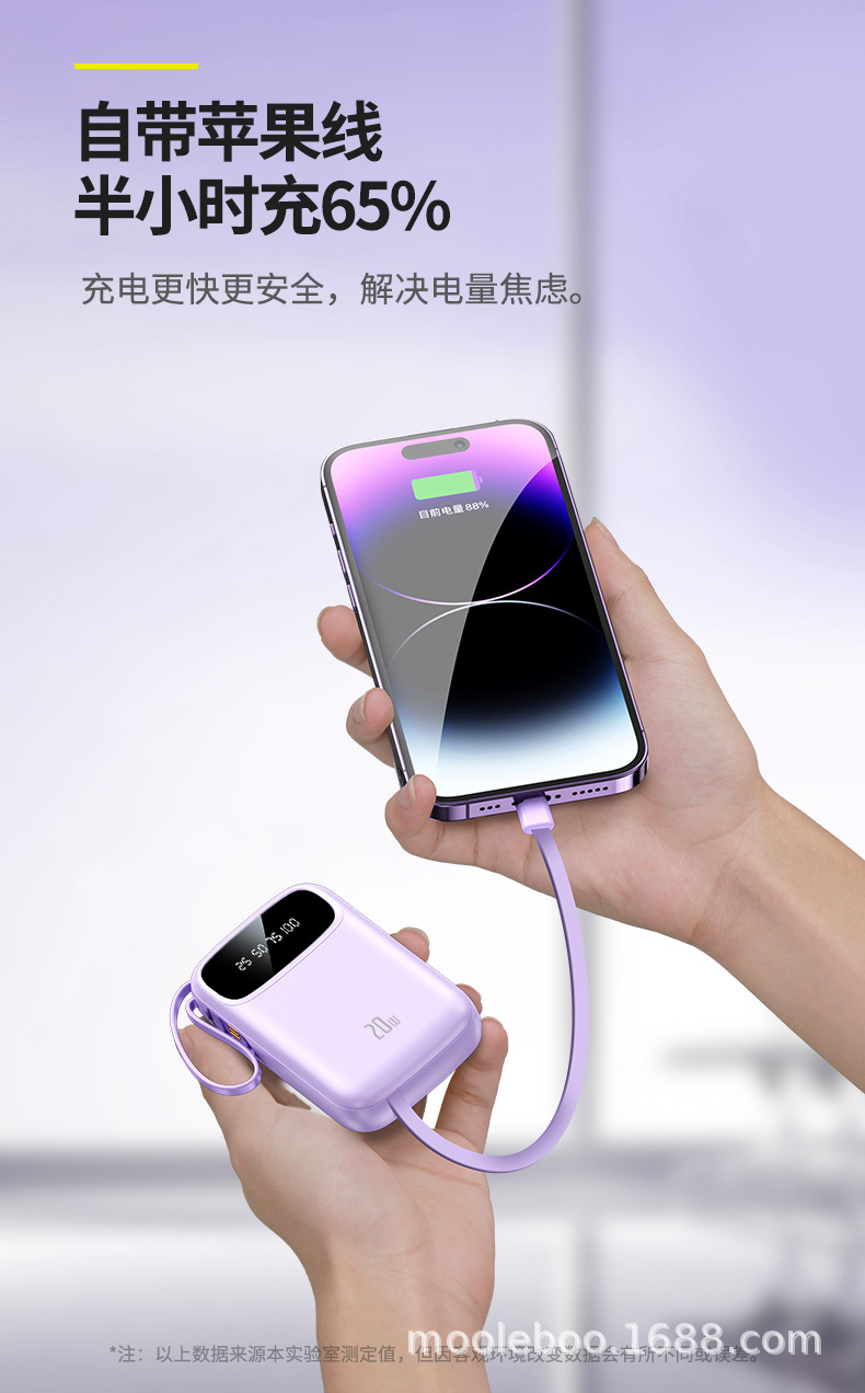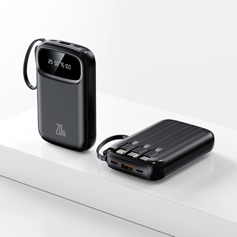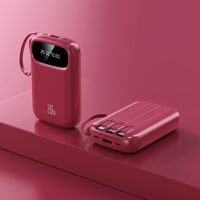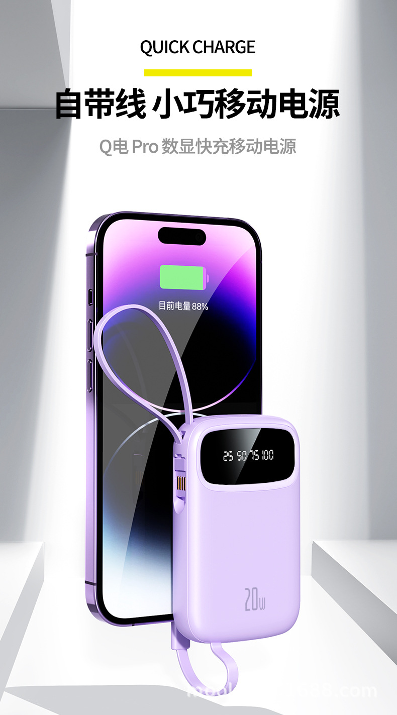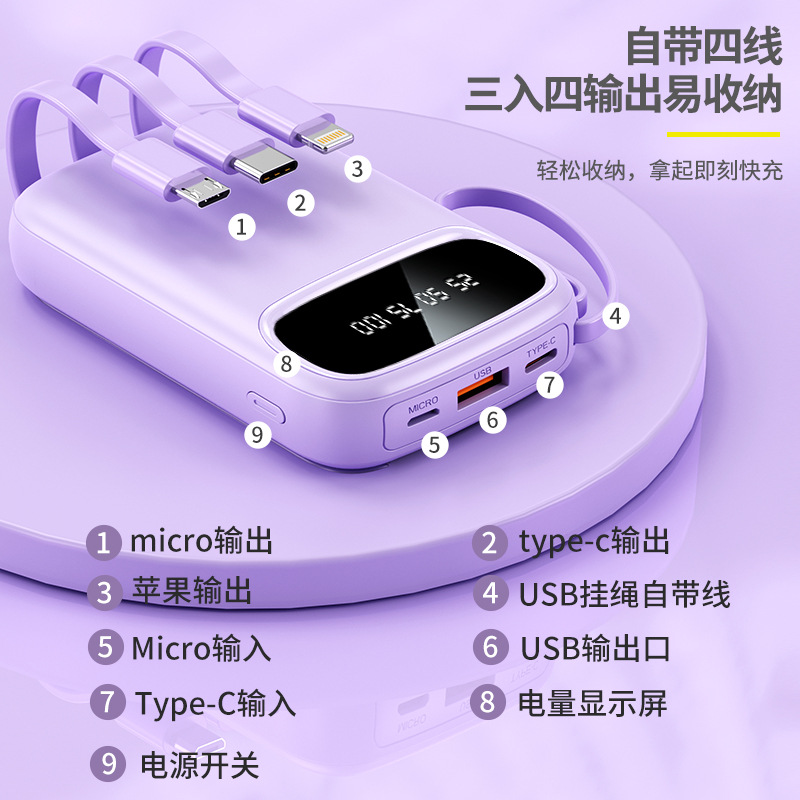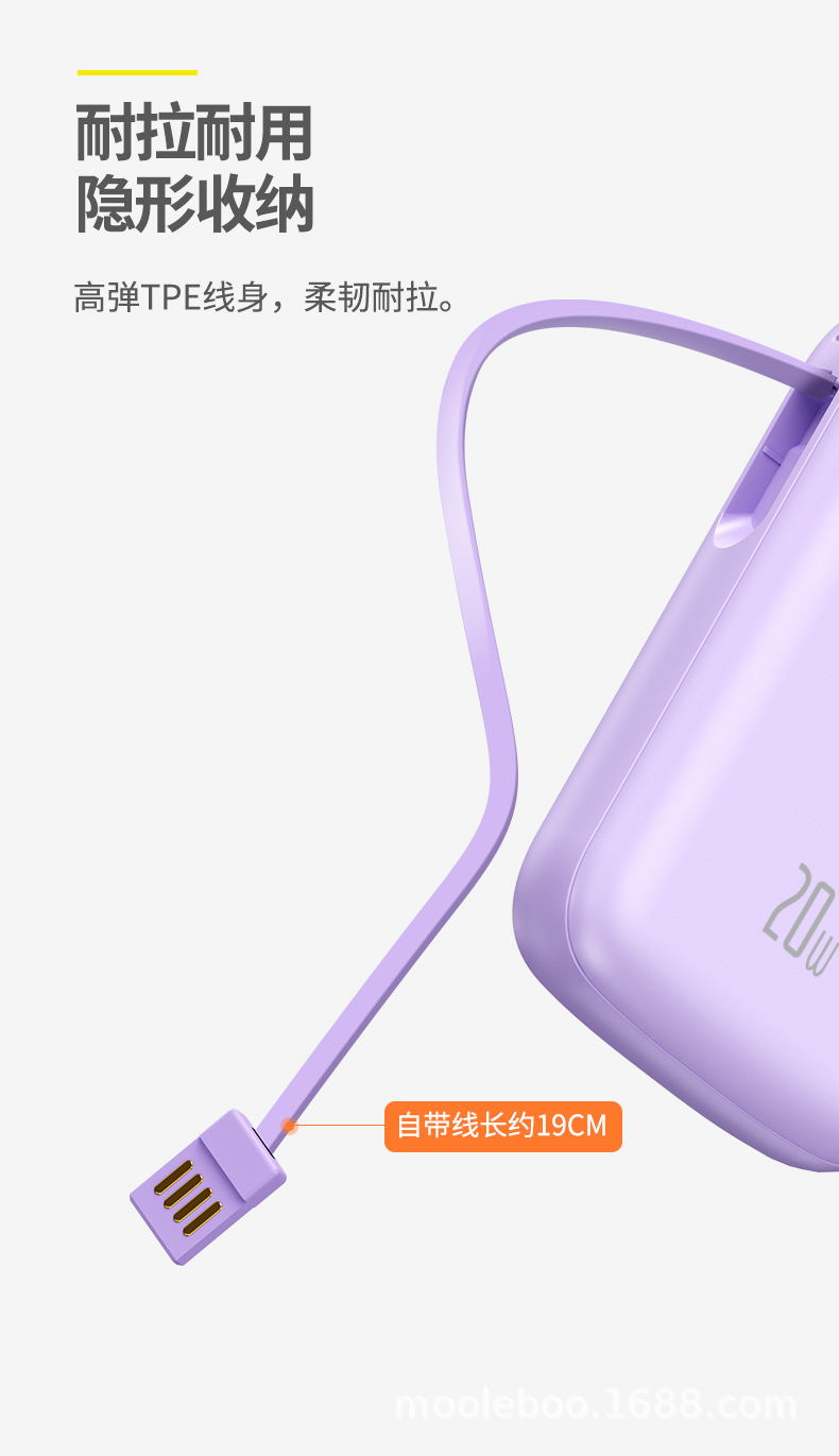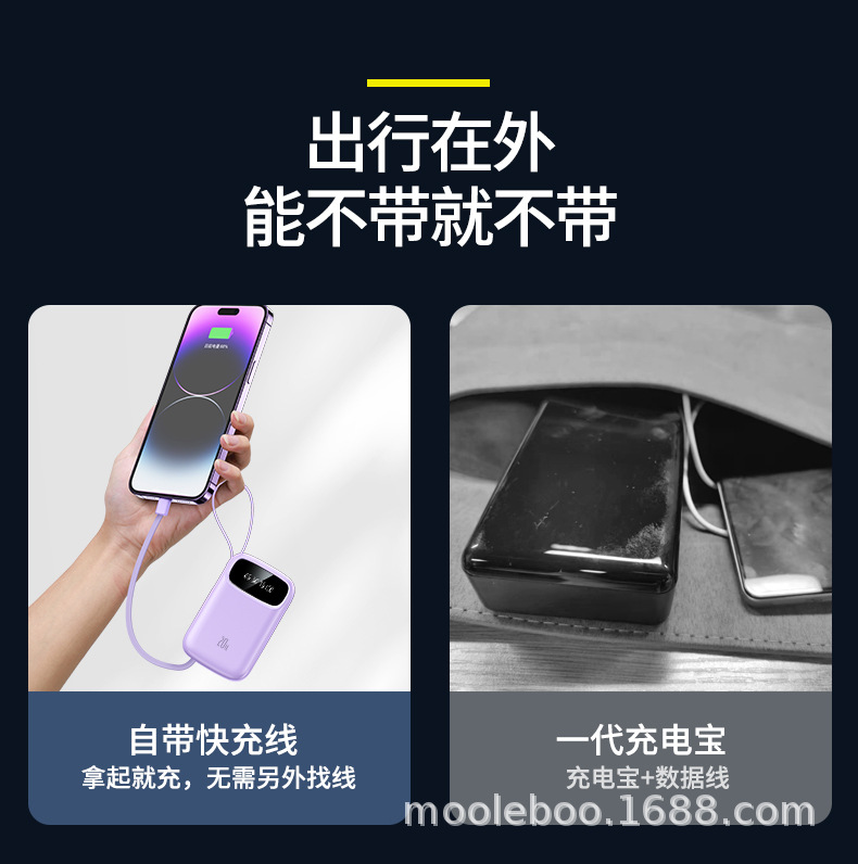 批发充电宝20000毫安自带线小巧迷你便携共享快充移动电源可 印制