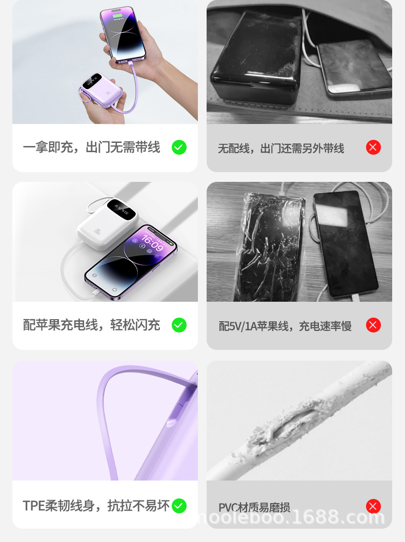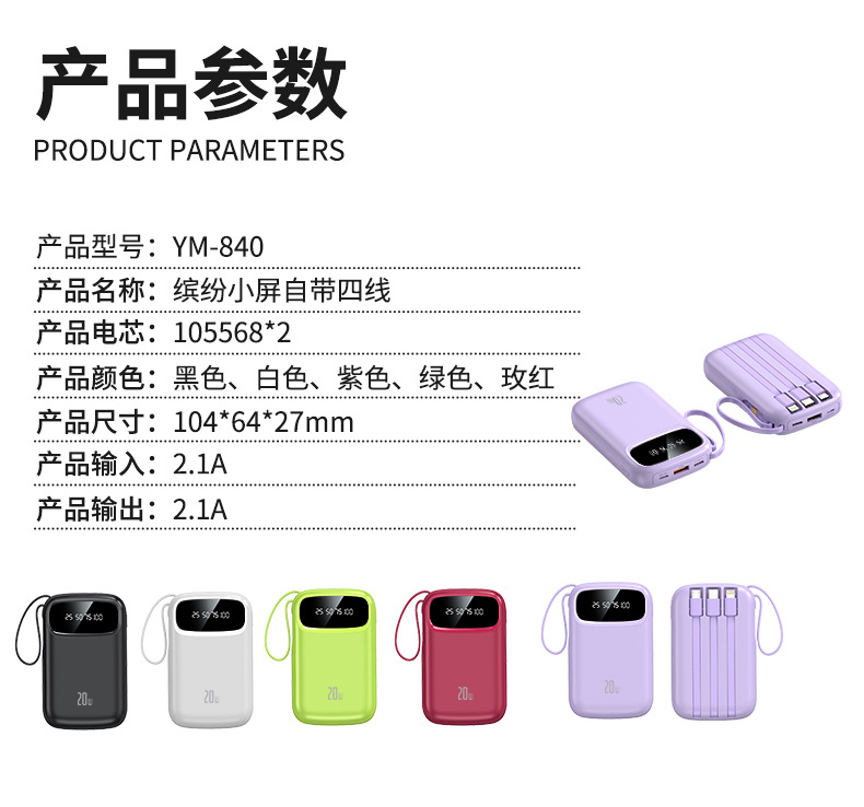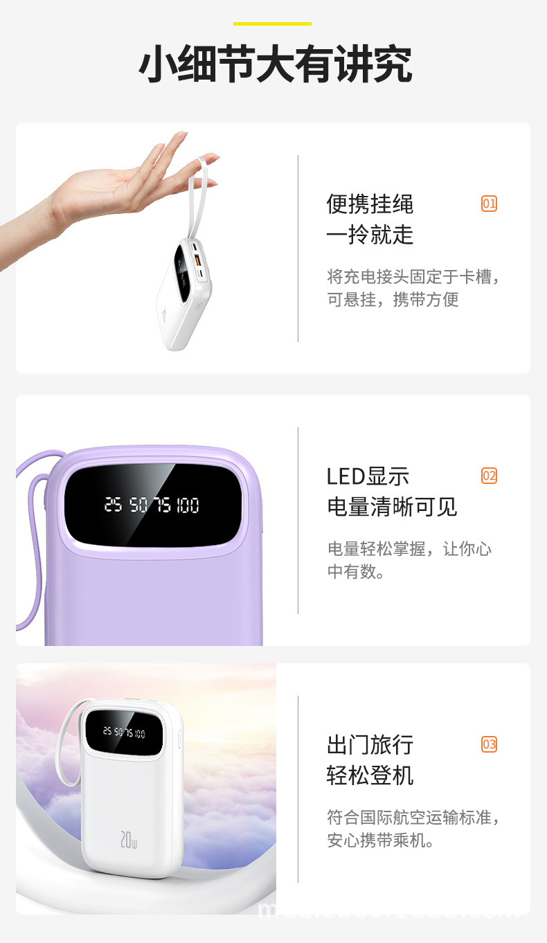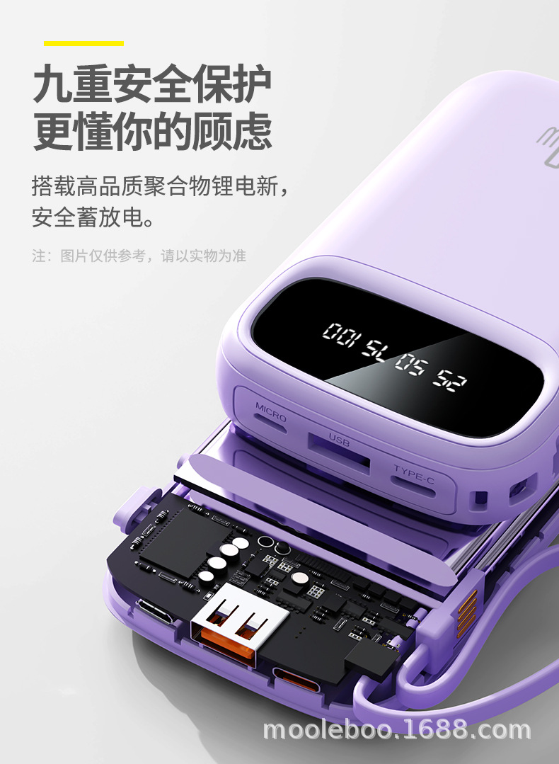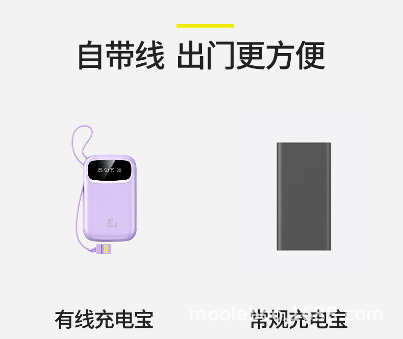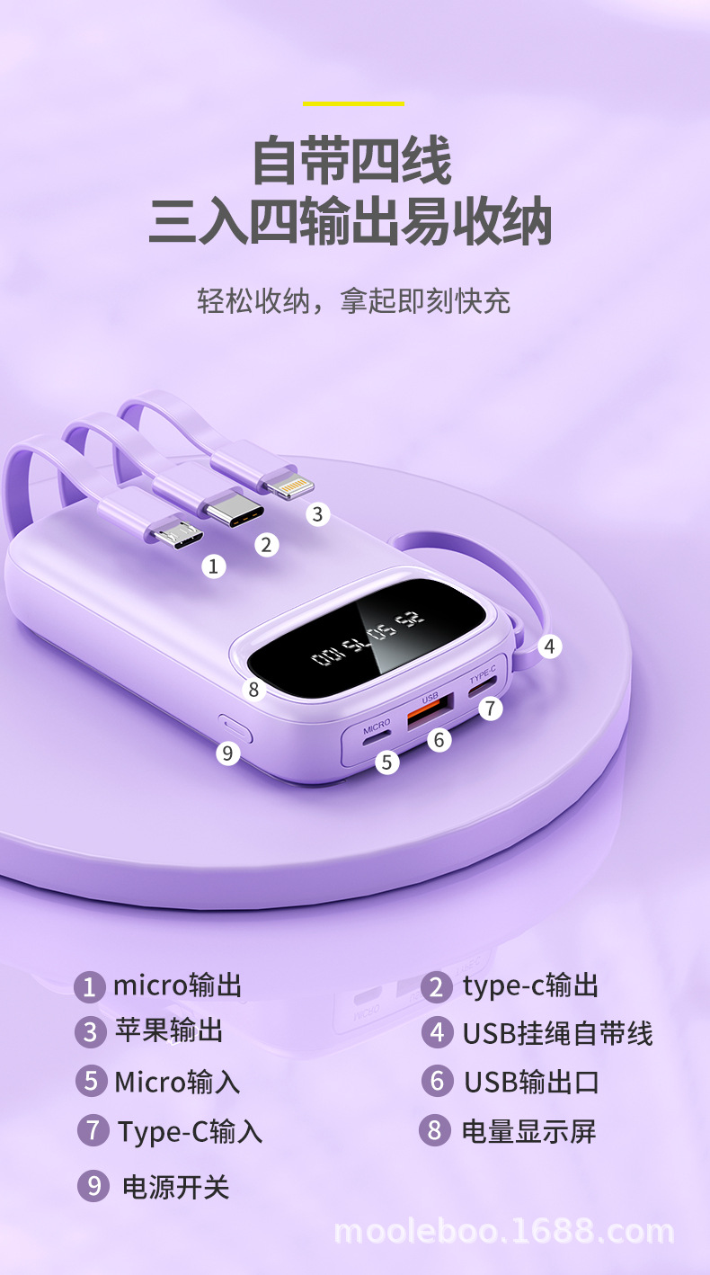 批发充电宝20000毫安自带线小巧迷你便携共享快充移动电源可 印制