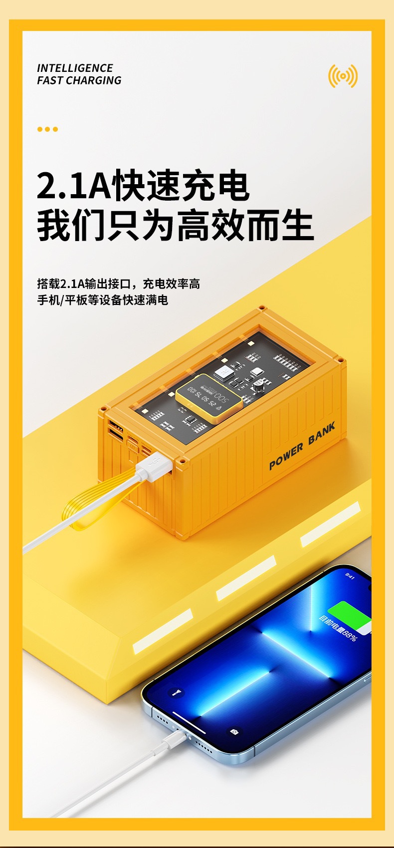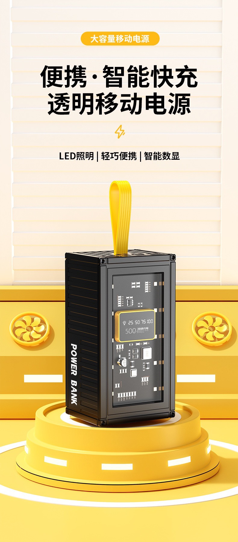 创意集装箱充电宝超大容量50000毫安透明工业风LED灯数显手机电源