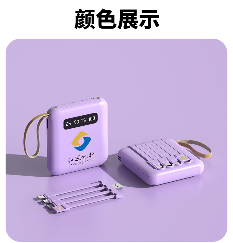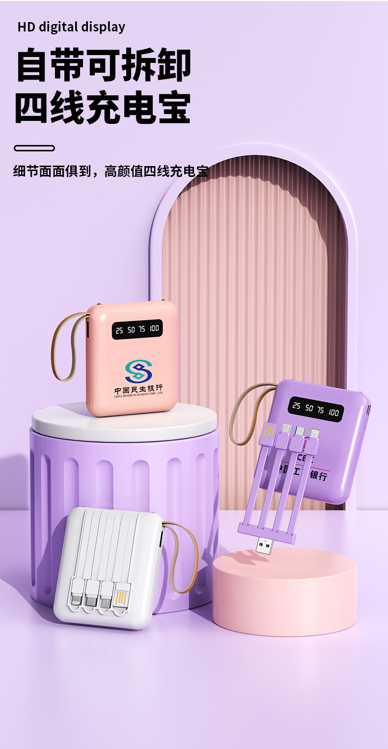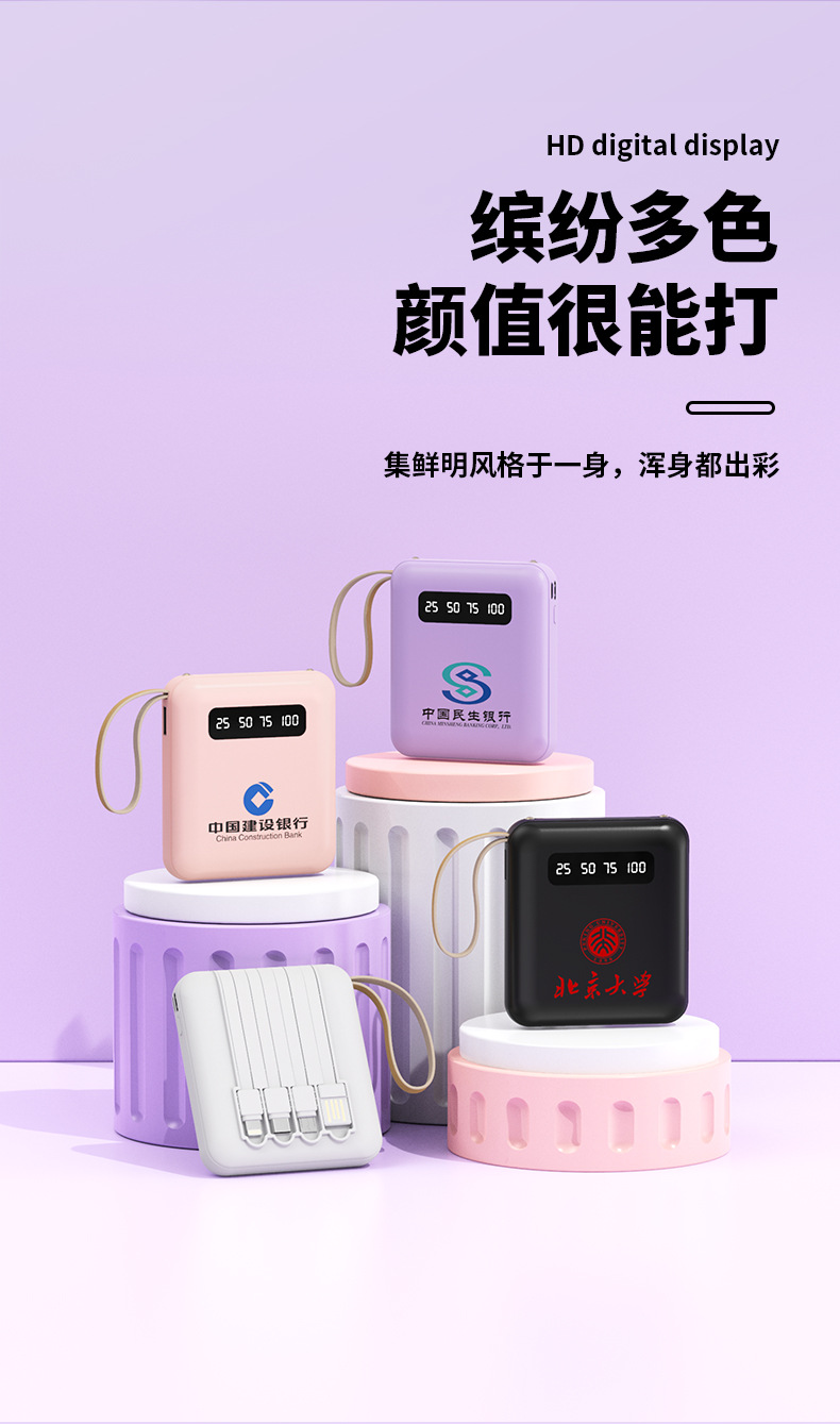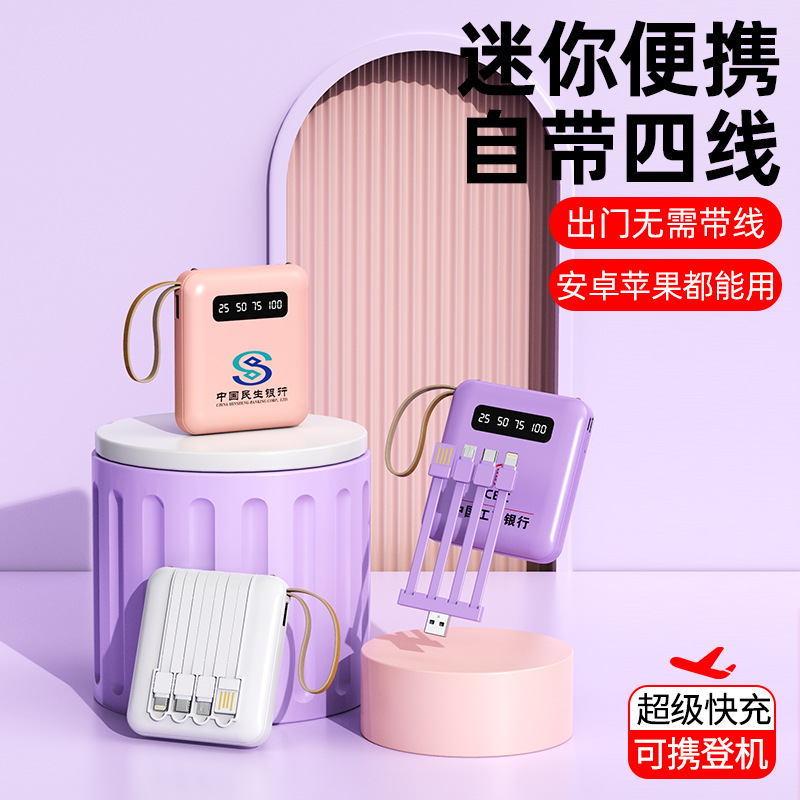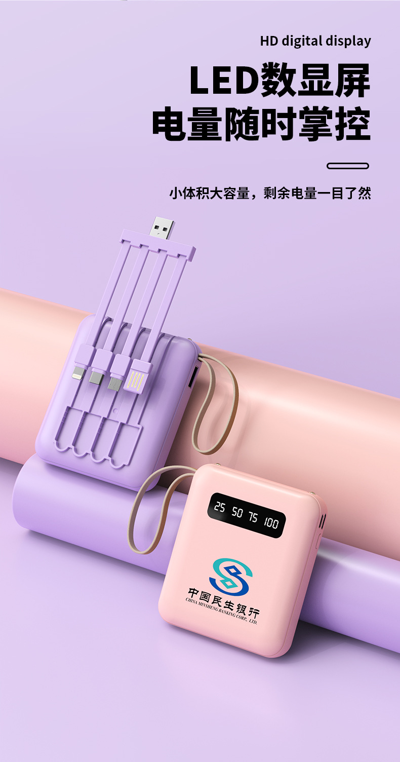 超薄小巧便携大容量充电宝20000毫安自带线礼品移动电源定 制LOGO