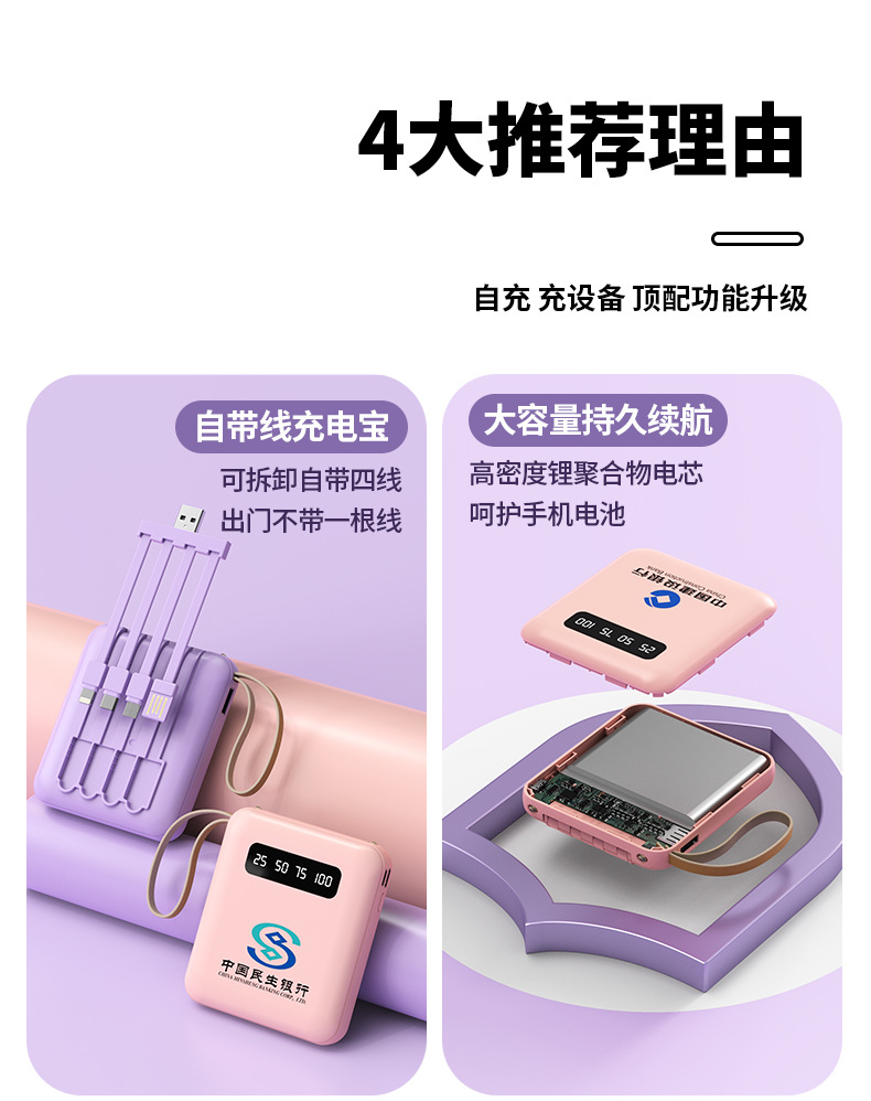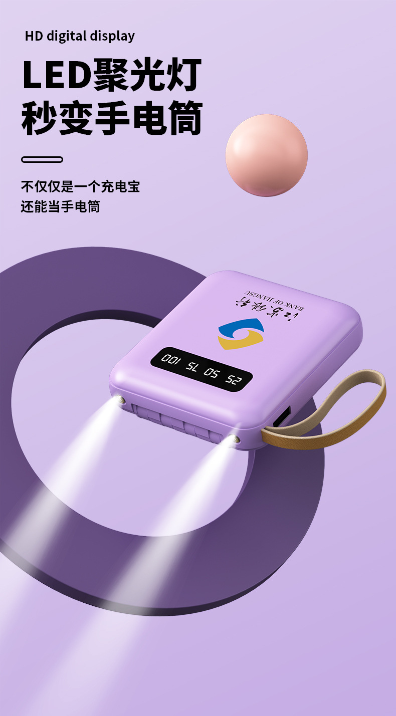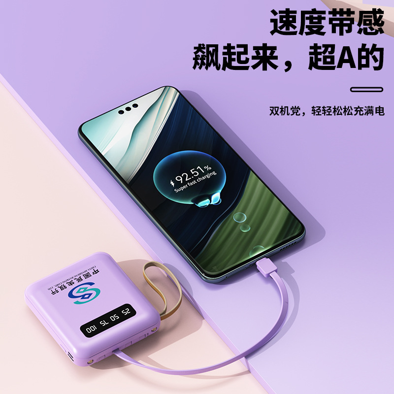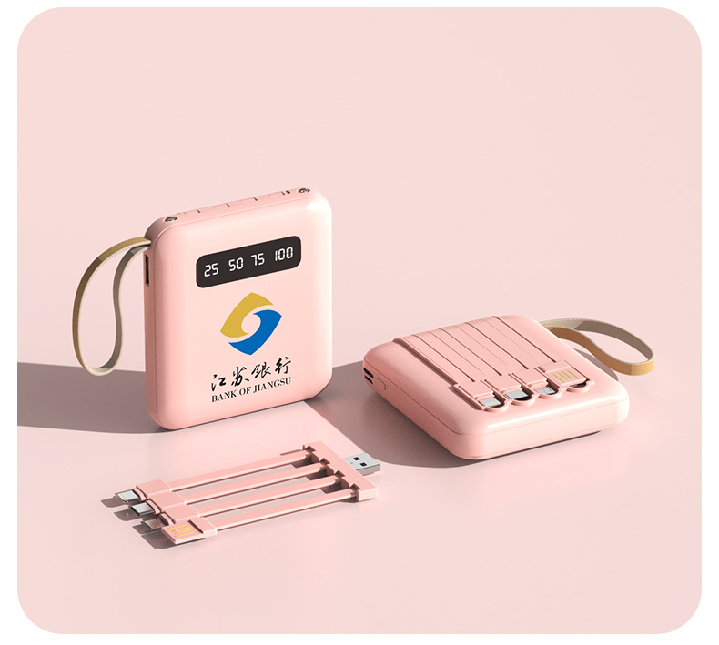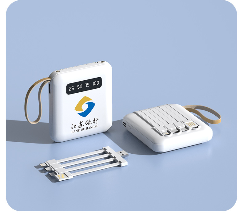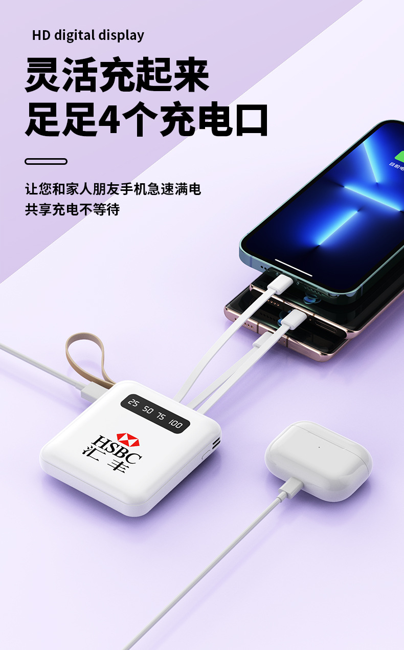 超薄小巧便携大容量充电宝20000毫安自带线礼品移动电源定 制LOGO