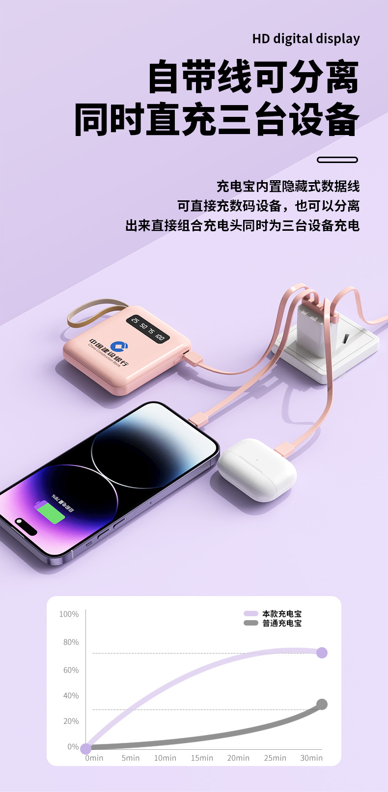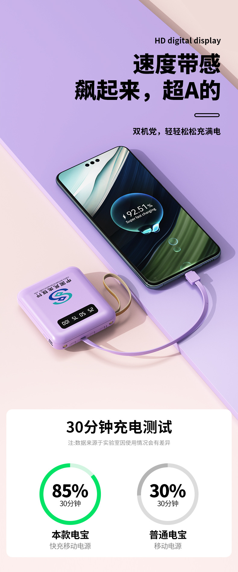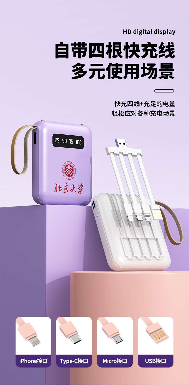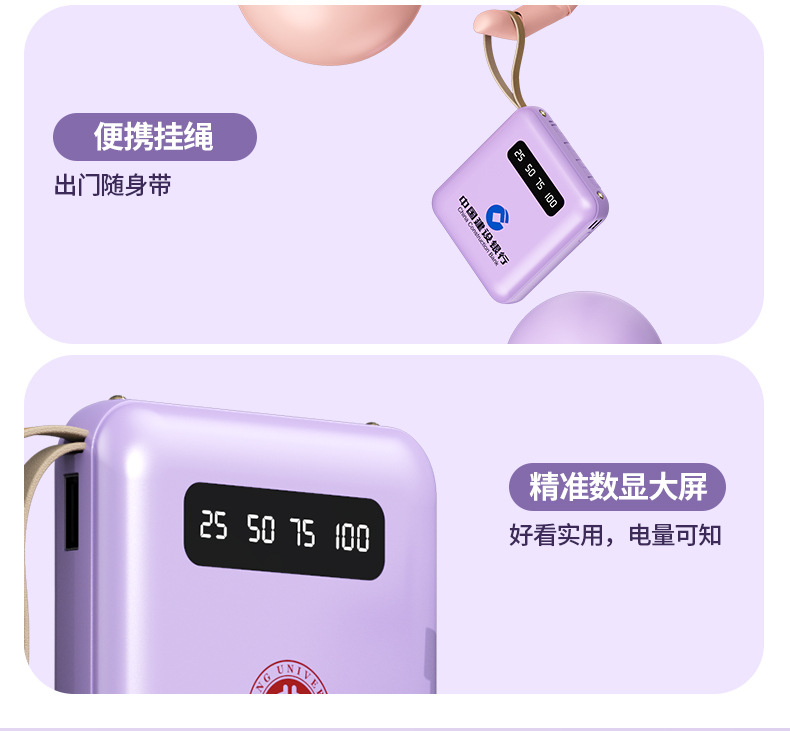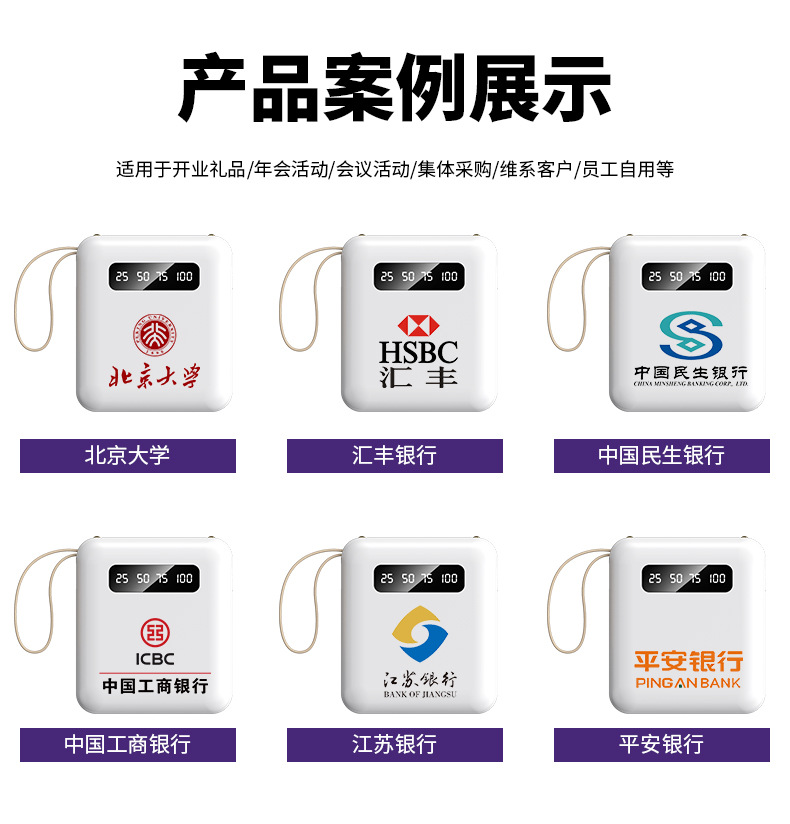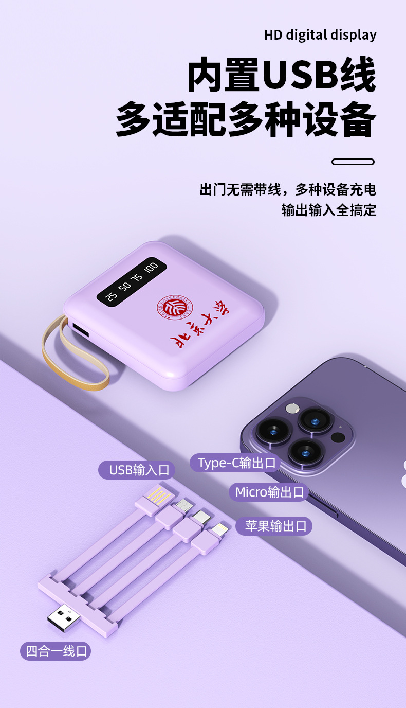 超薄小巧便携大容量充电宝20000毫安自带线礼品移动电源定 制LOGO