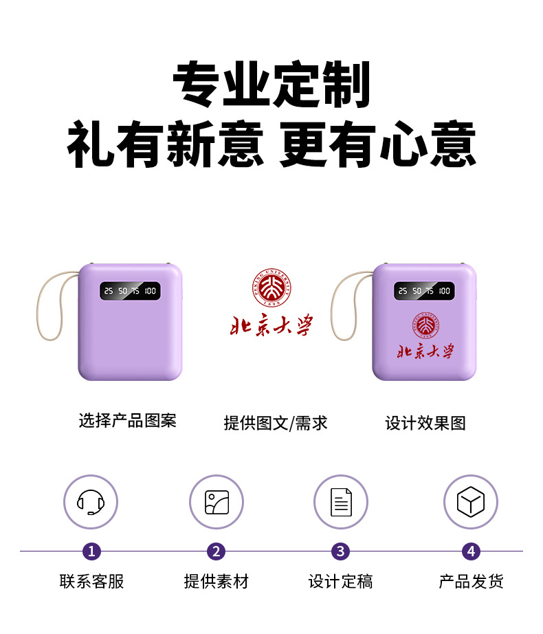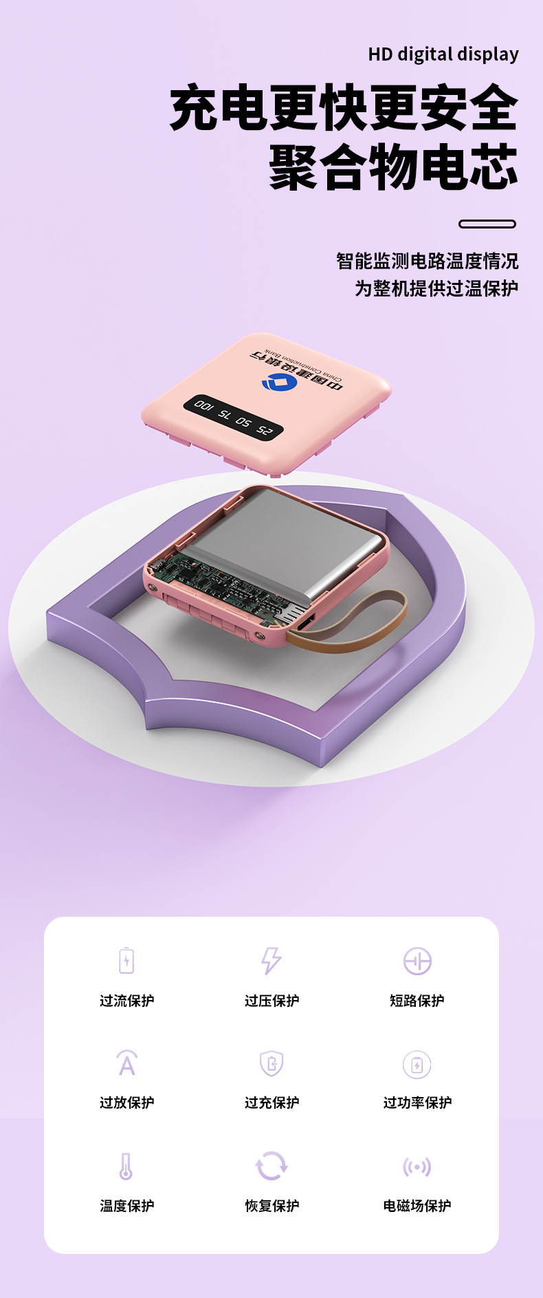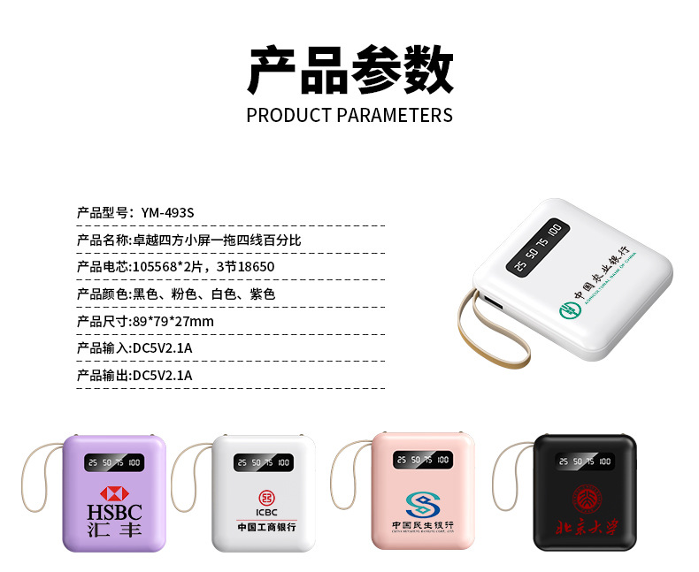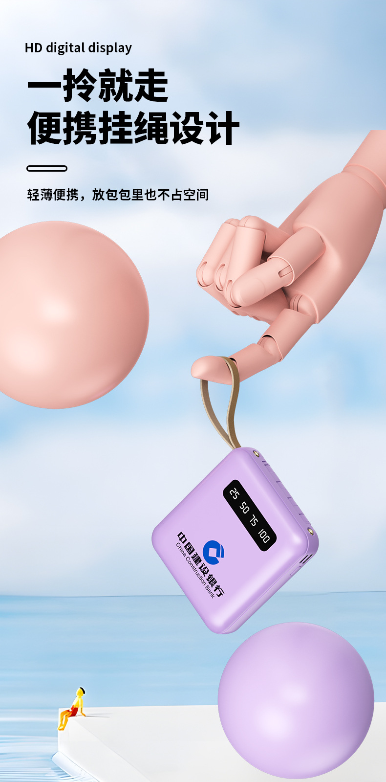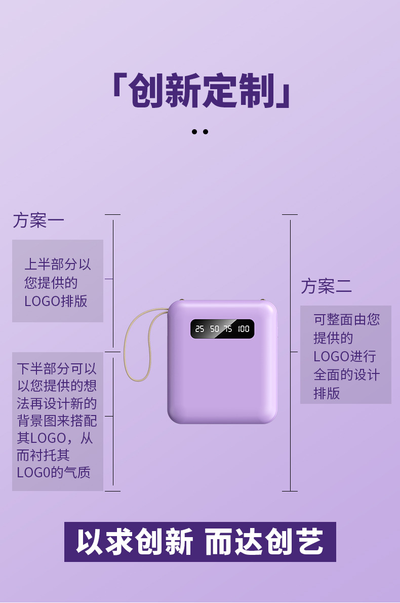 超薄小巧便携大容量充电宝20000毫安自带线礼品移动电源定 制LOGO