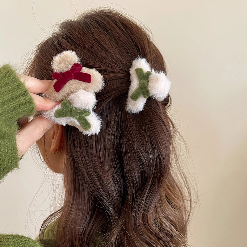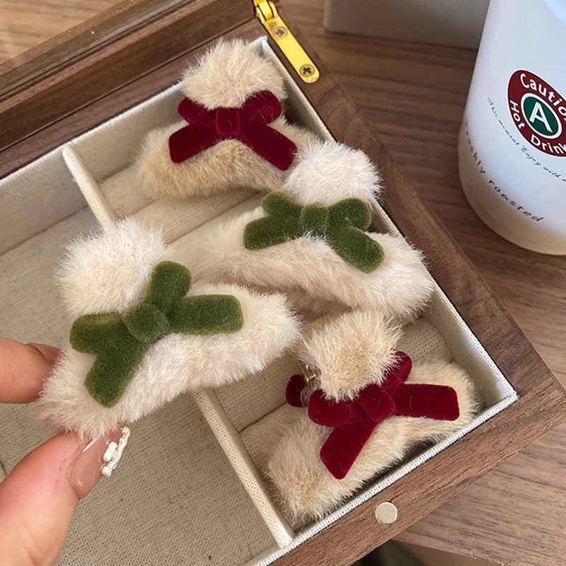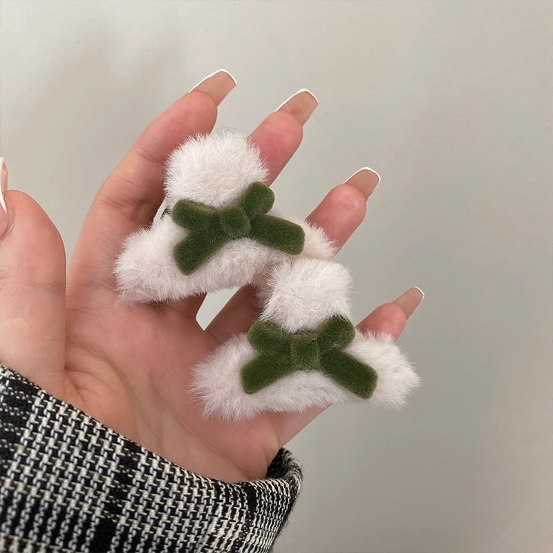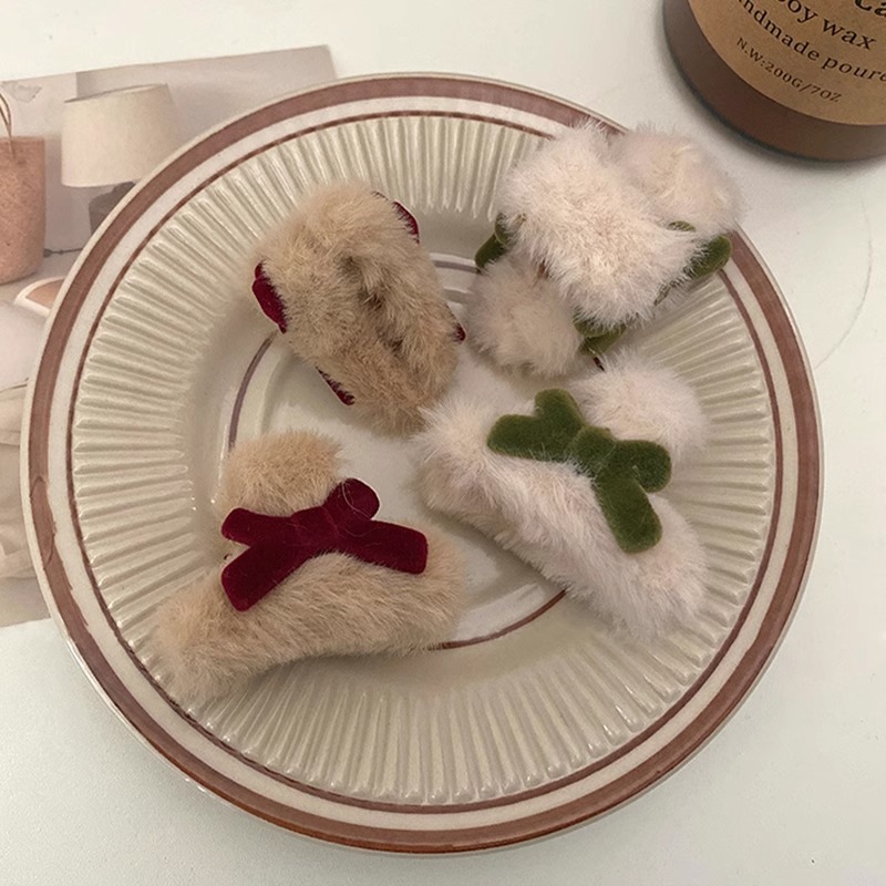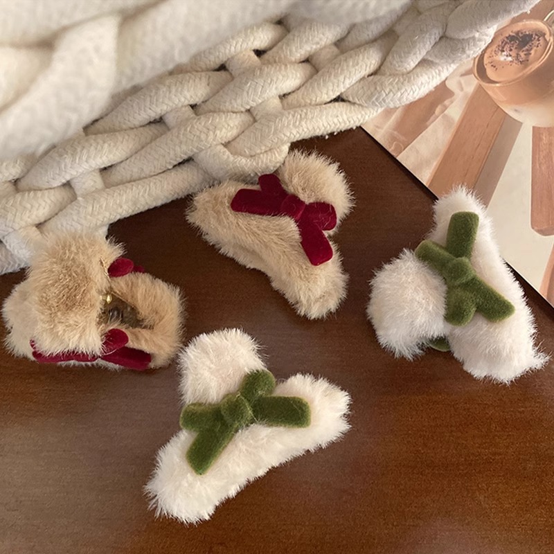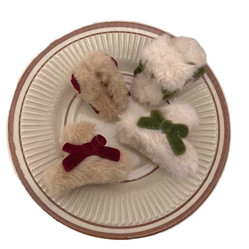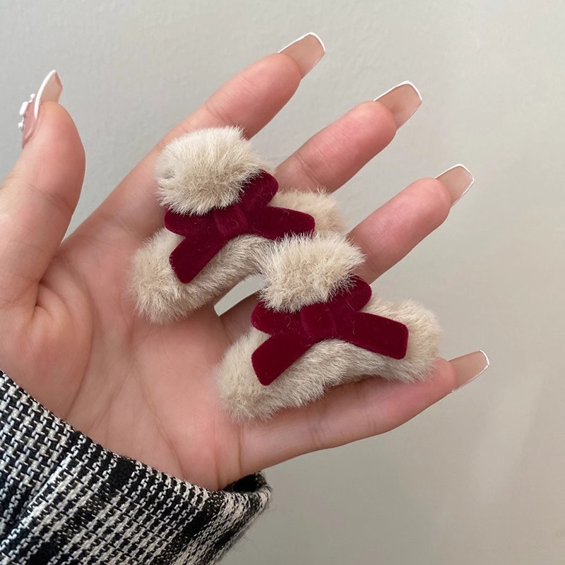 可爱蝴蝶结发夹女秋冬毛绒小抓夹发饰网红ins红色侧边刘海夹头饰