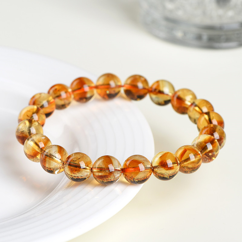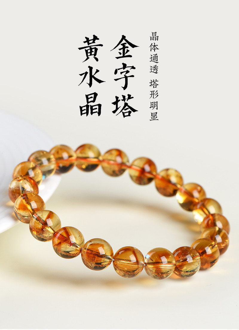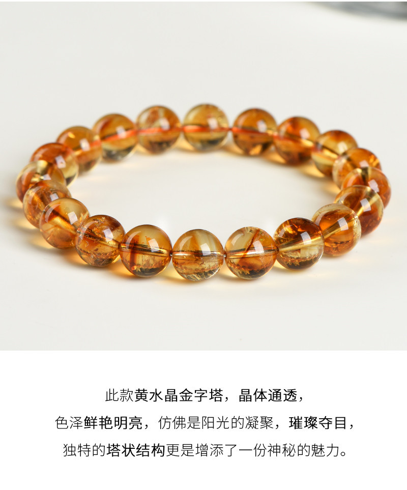 久雅水晶 天然黄水晶金字塔圆珠手链 黄水晶千层花散珠手串 批发
