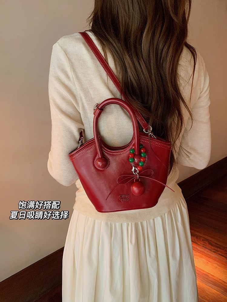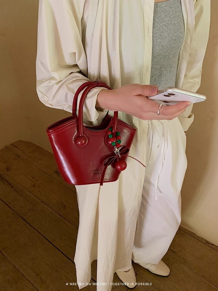CANDYN&KITE 真皮樱桃热恋手提托特包包女式2024新款单肩斜挎小包