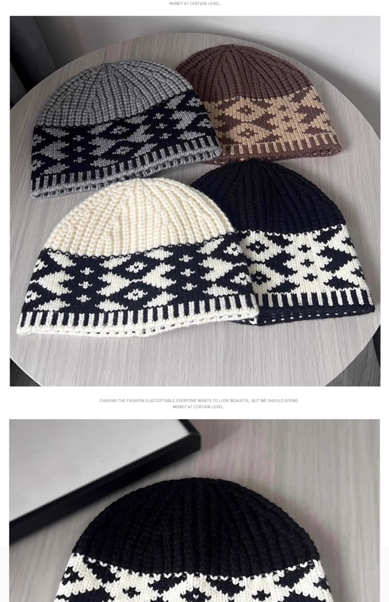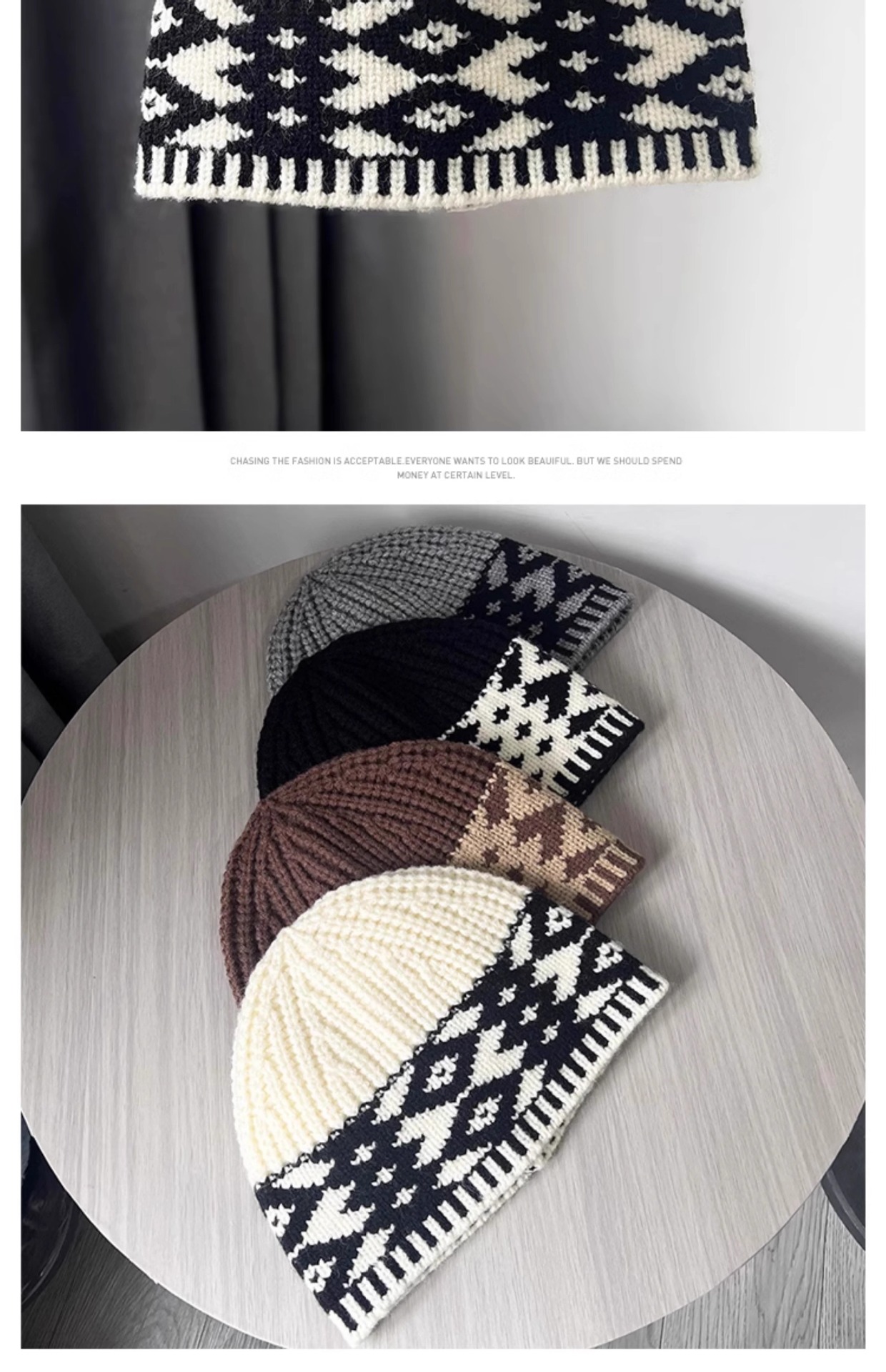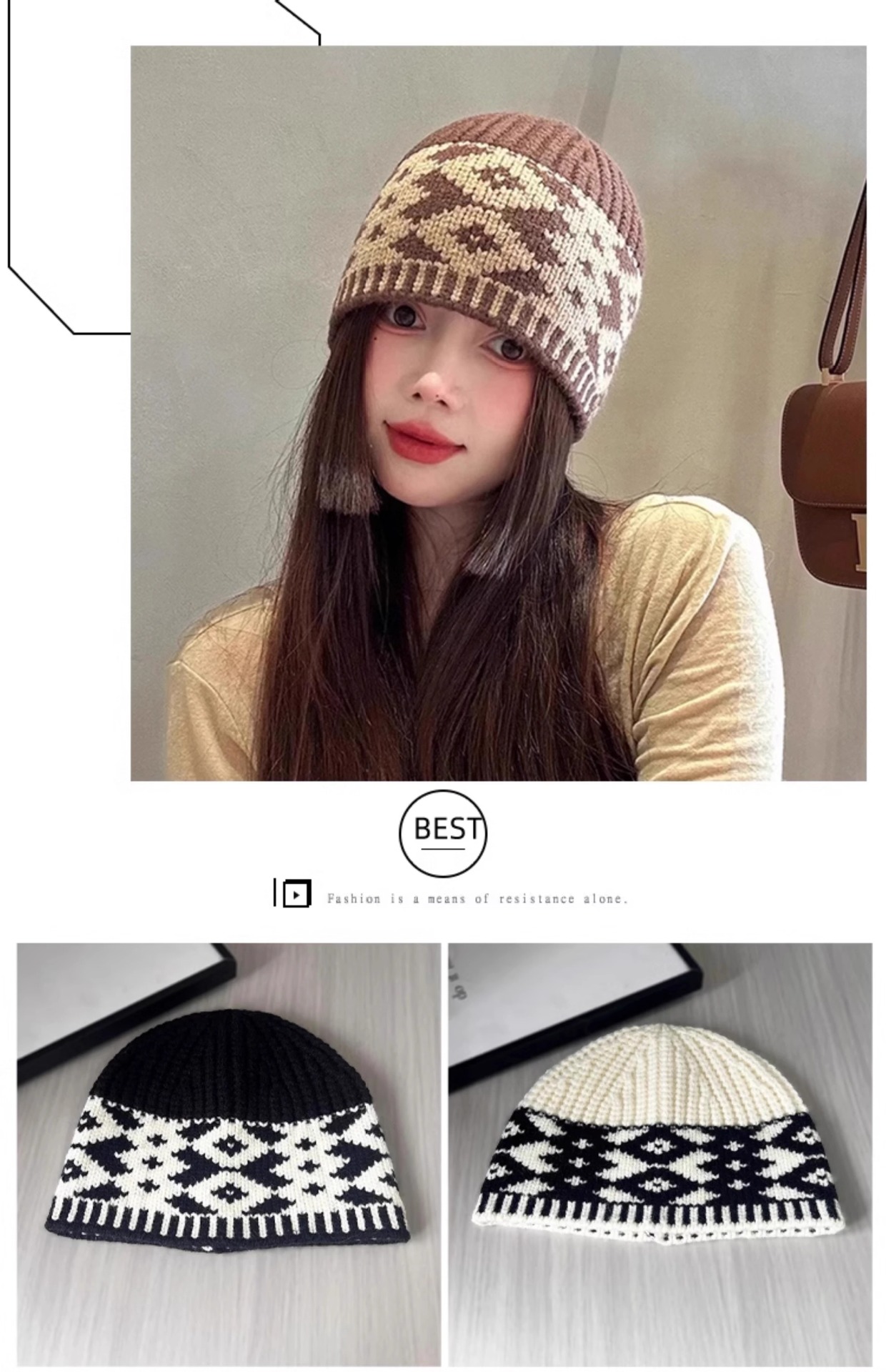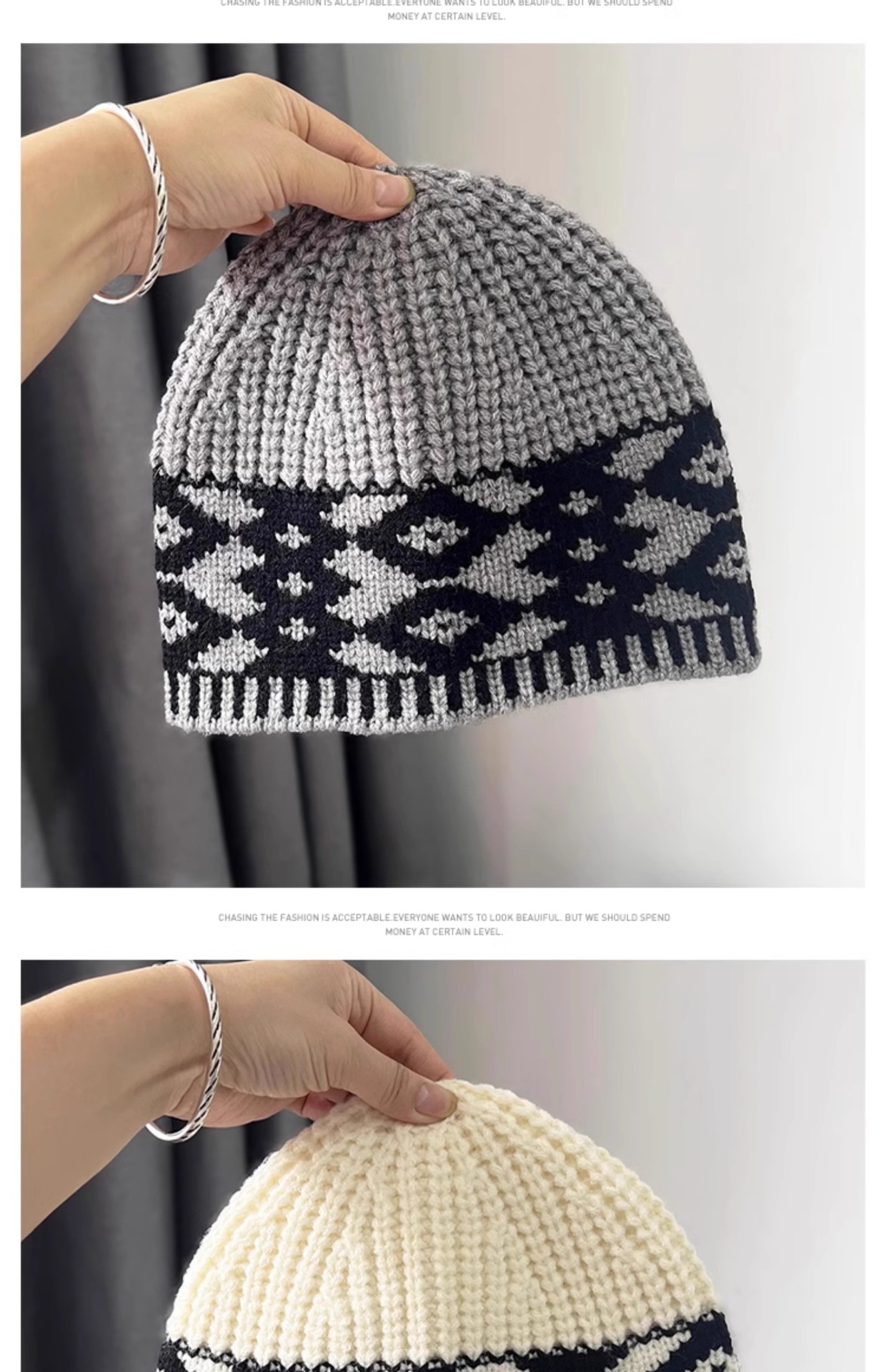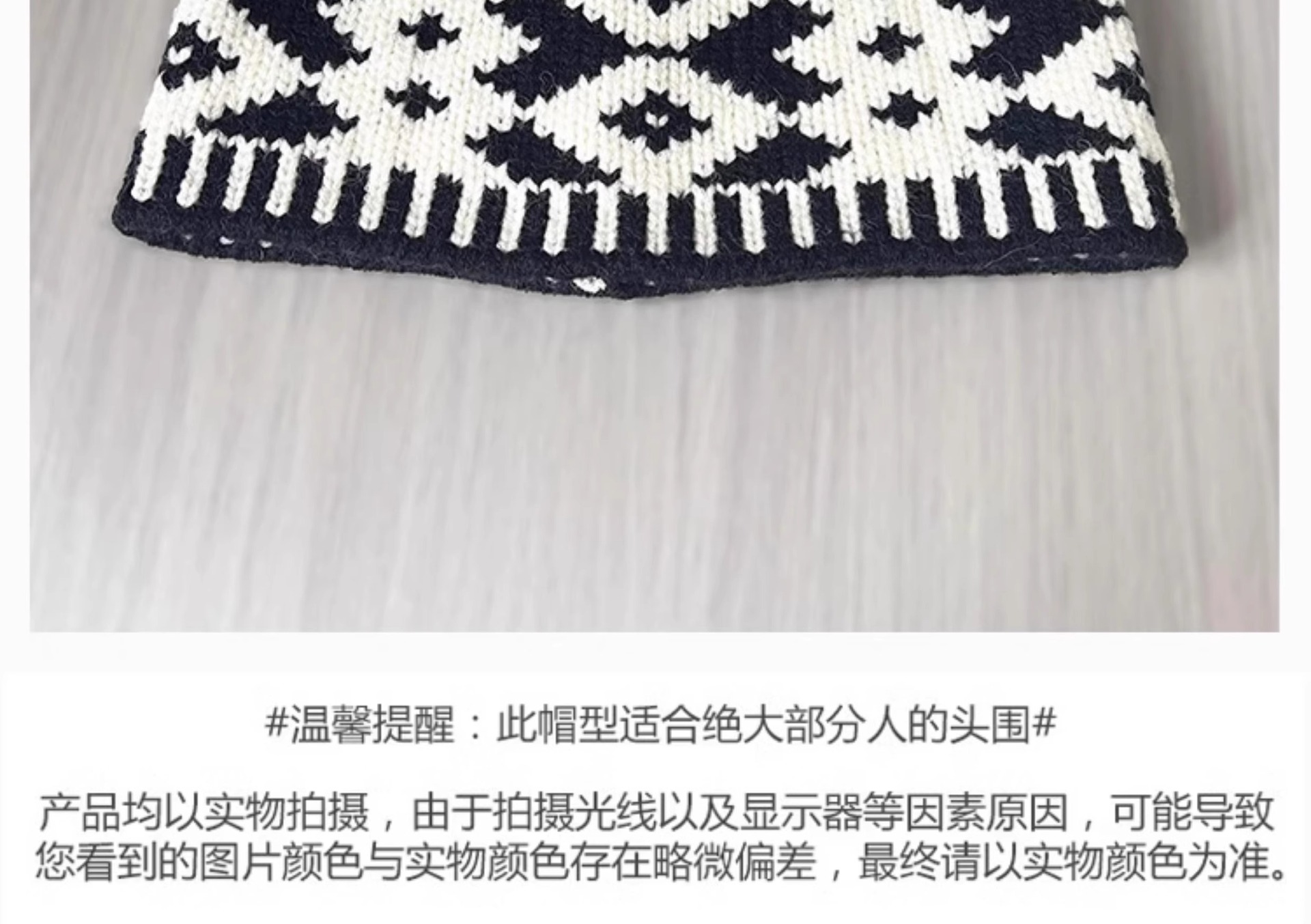 韩国拼色保暖毛线帽女秋冬复古显脸小针织帽子大头围护耳包头冷帽