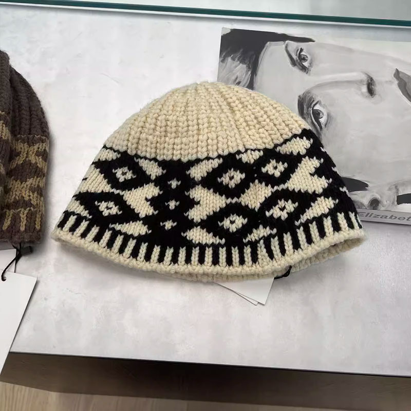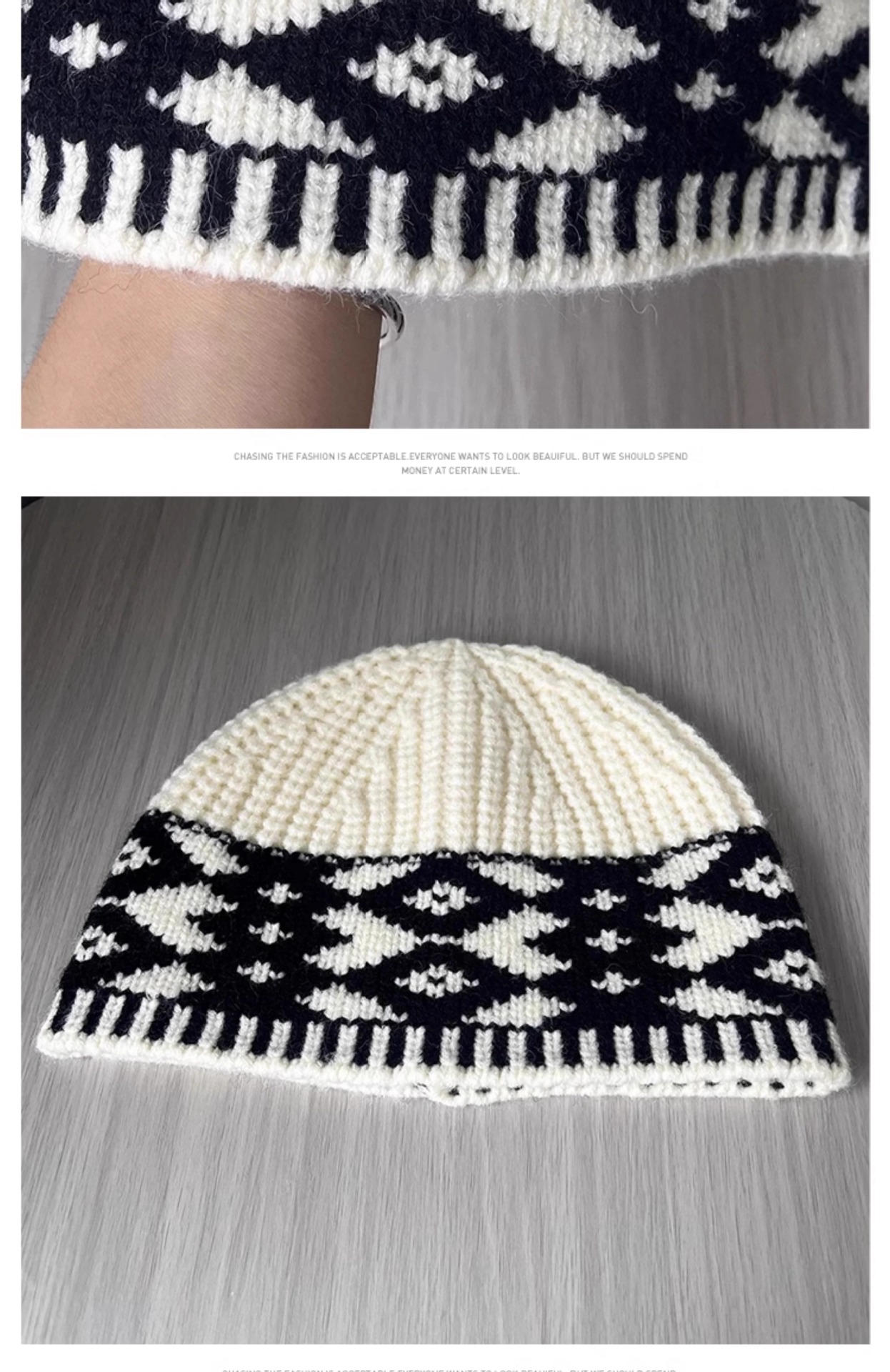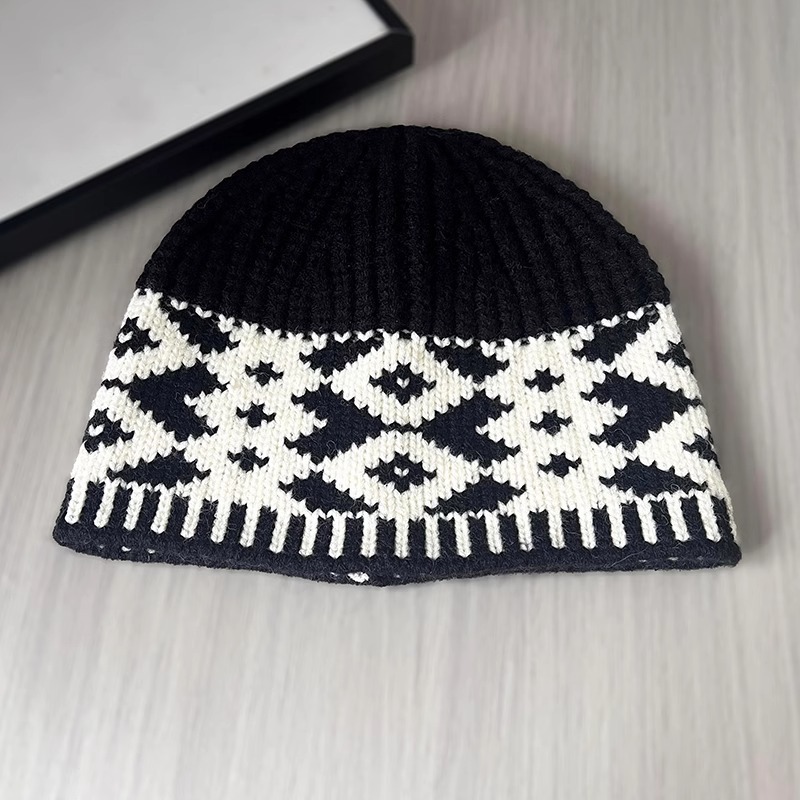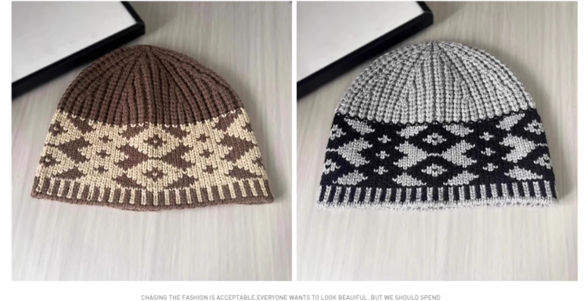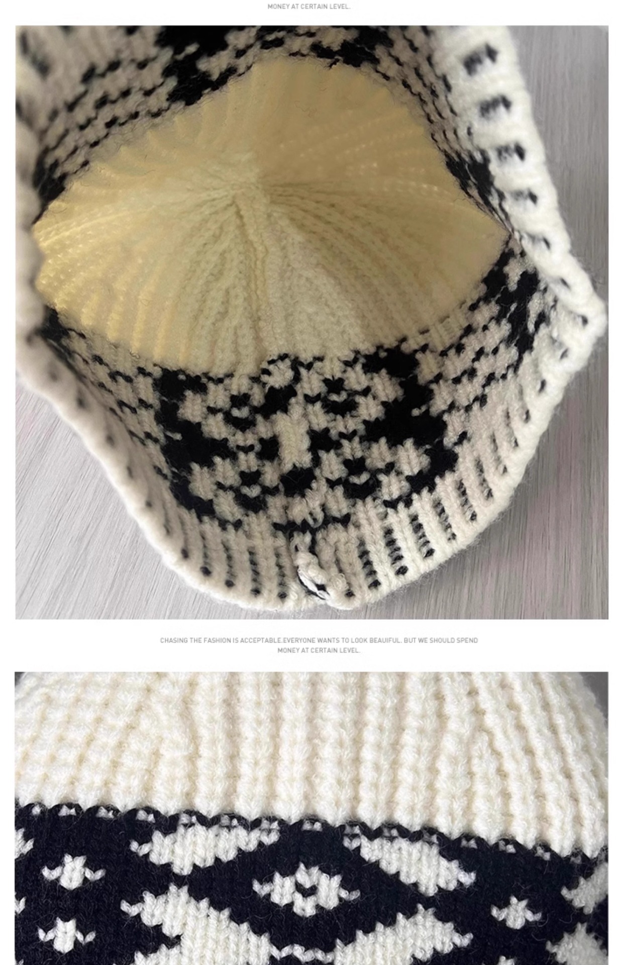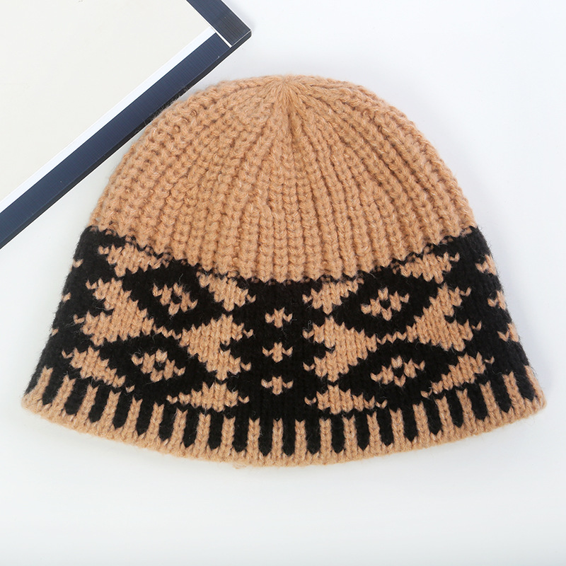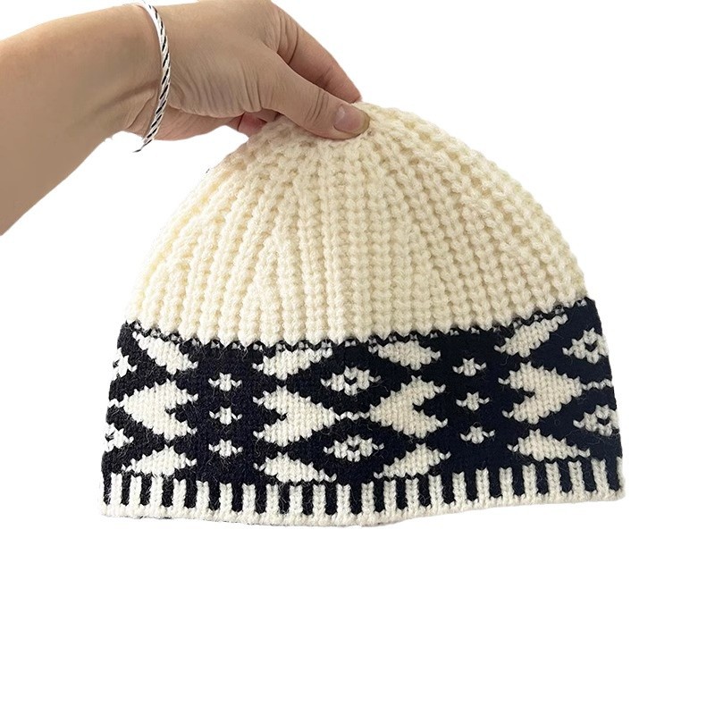 韩国拼色保暖毛线帽女秋冬复古显脸小针织帽子大头围护耳包头冷帽