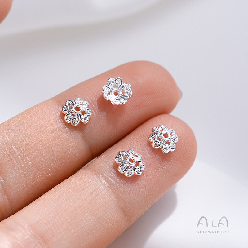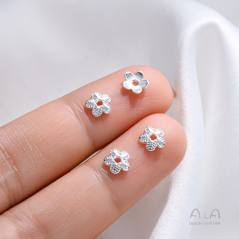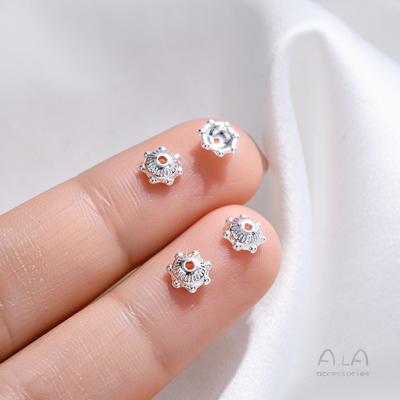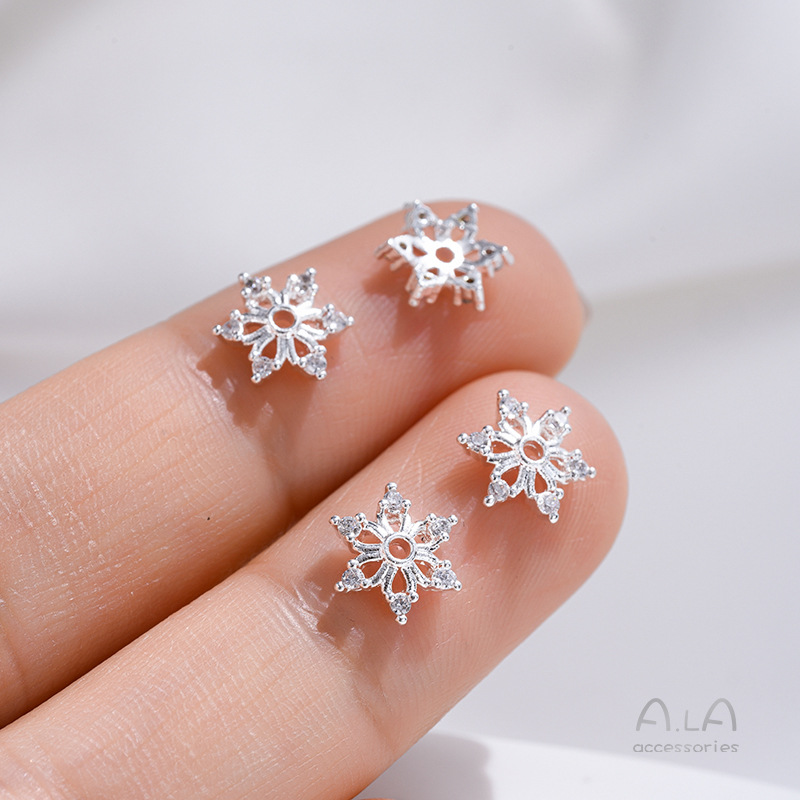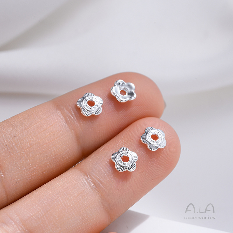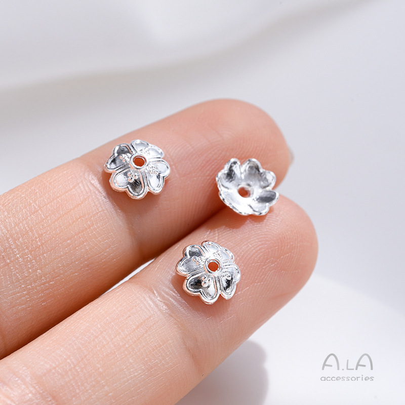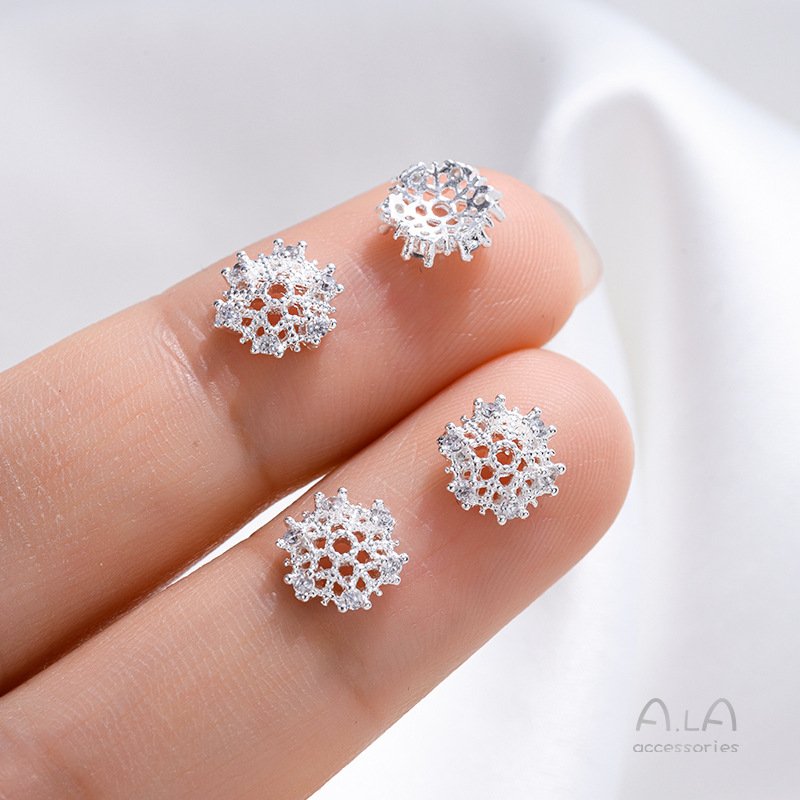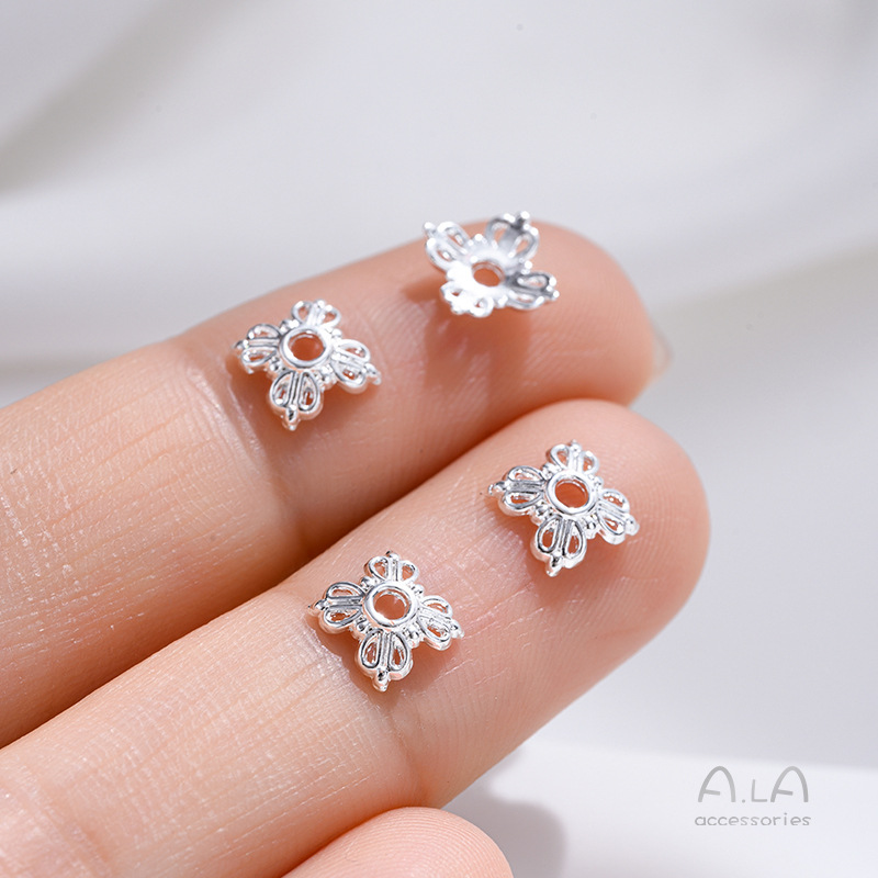 强保色镀纯银花托四叶草桃花托 镶锆石雪花托隔珠托珠帽隔片配件