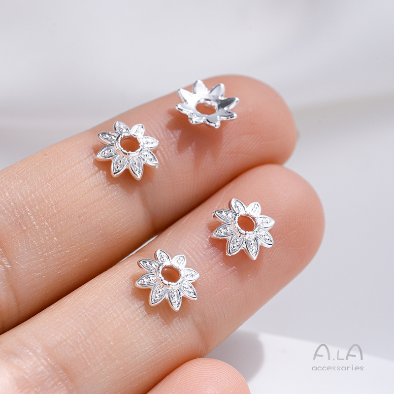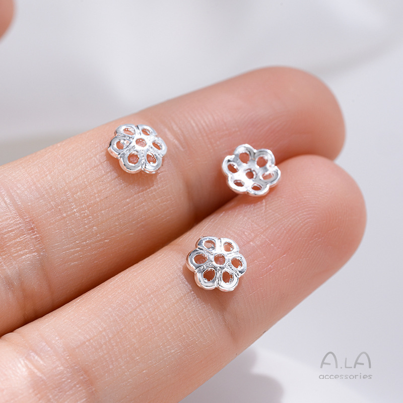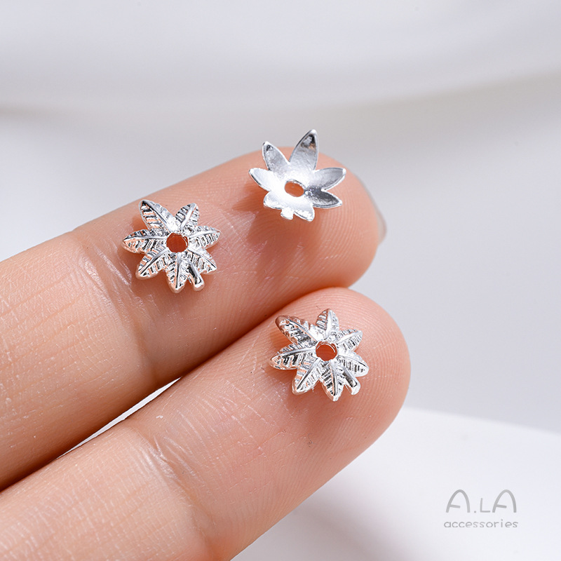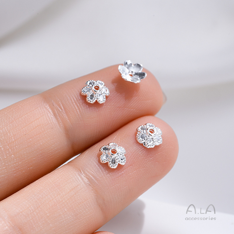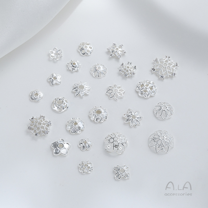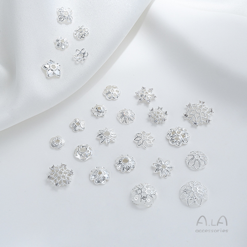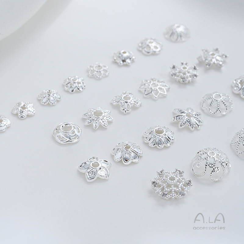 强保色镀纯银花托四叶草桃花托 镶锆石雪花托隔珠托珠帽隔片配件