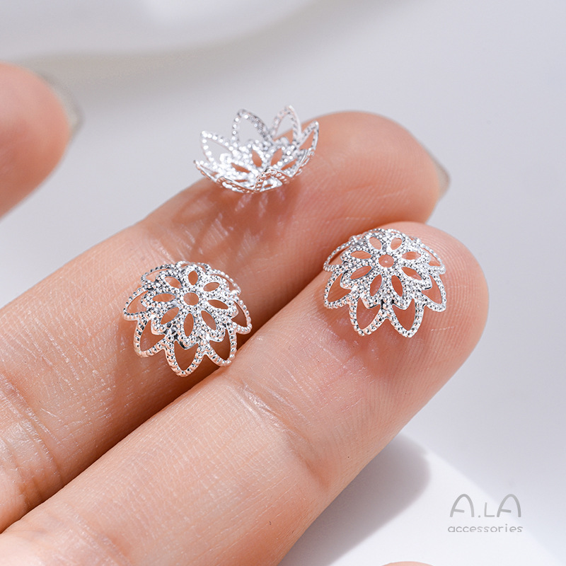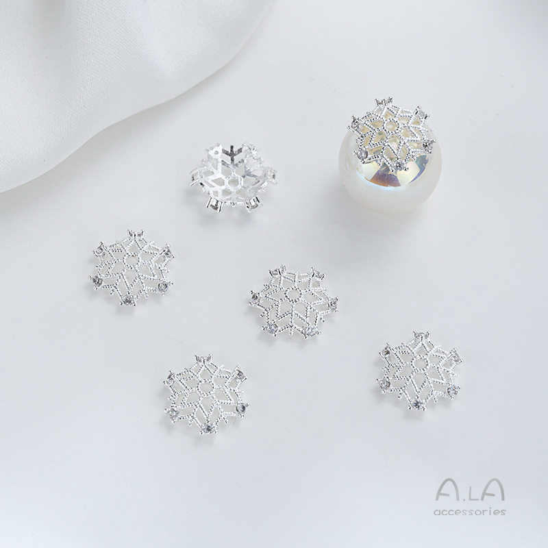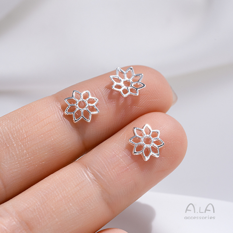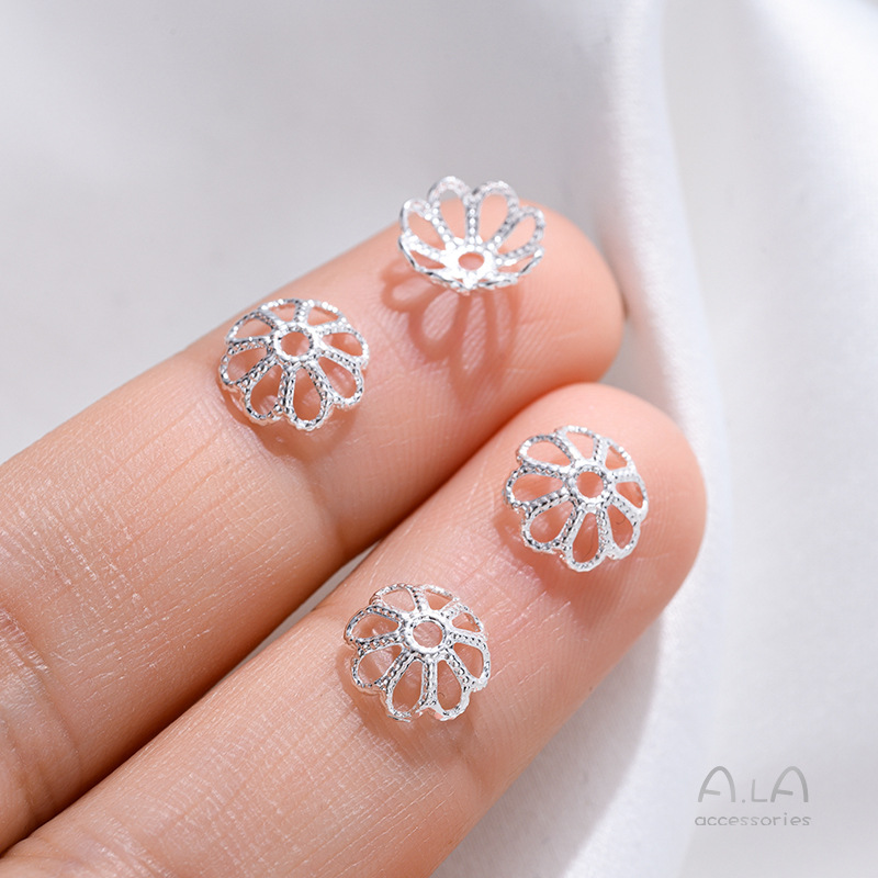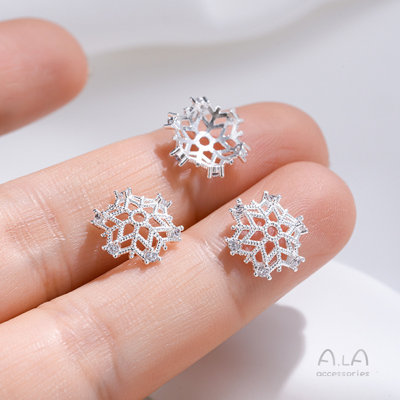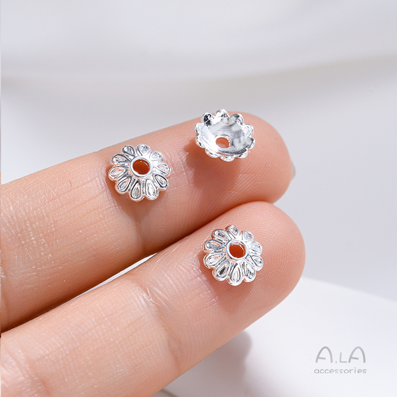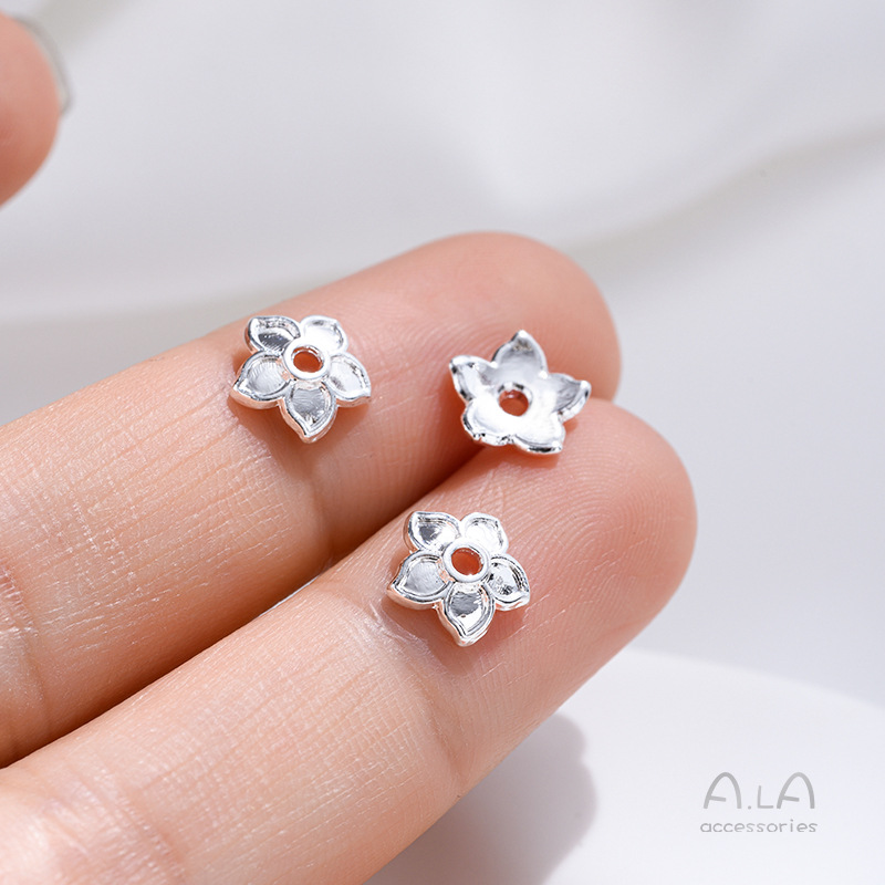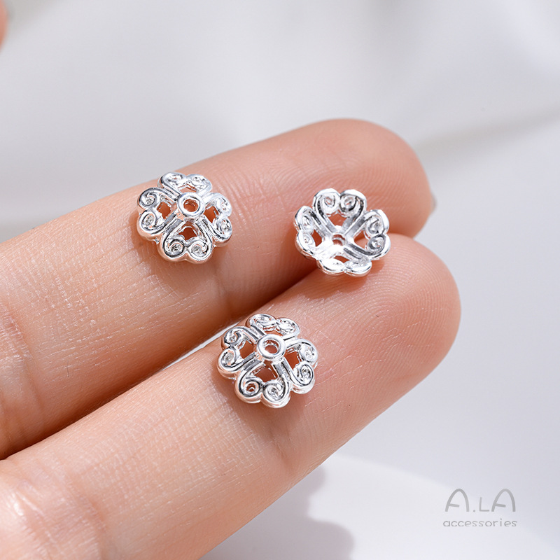 强保色镀纯银花托四叶草桃花托 镶锆石雪花托隔珠托珠帽隔片配件