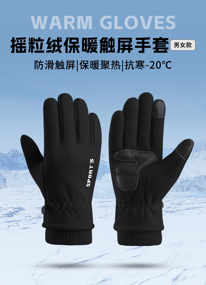 摇粒绒保暖手套男士冬季户外骑行运动触屏手套加绒加厚防滑手套