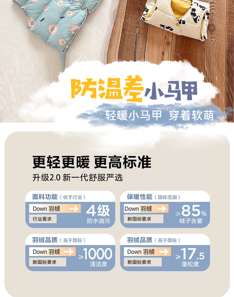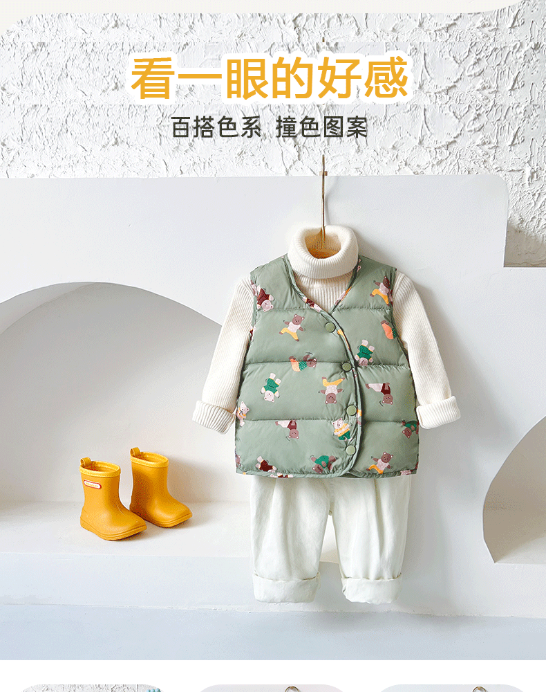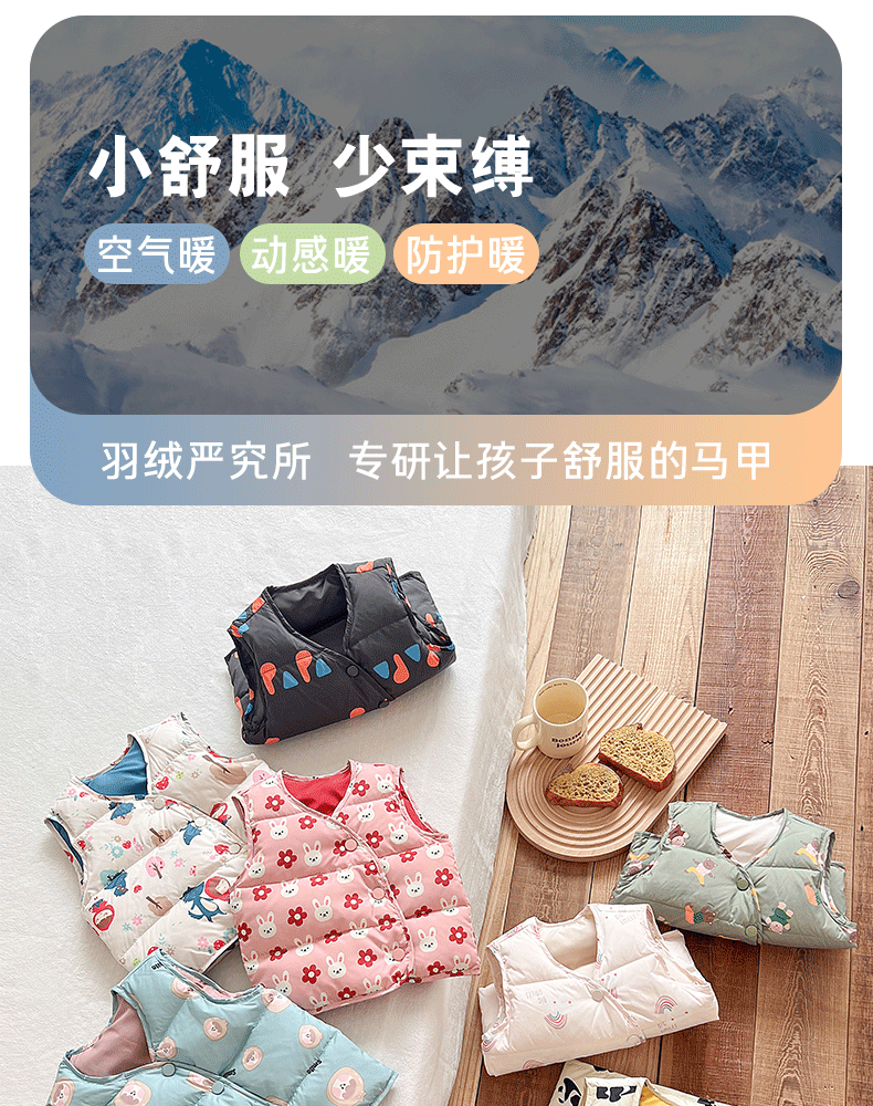 2024新款儿童羽绒马甲新标90白鸭绒男童女童加厚保暖背心宝宝坎肩