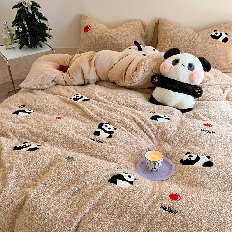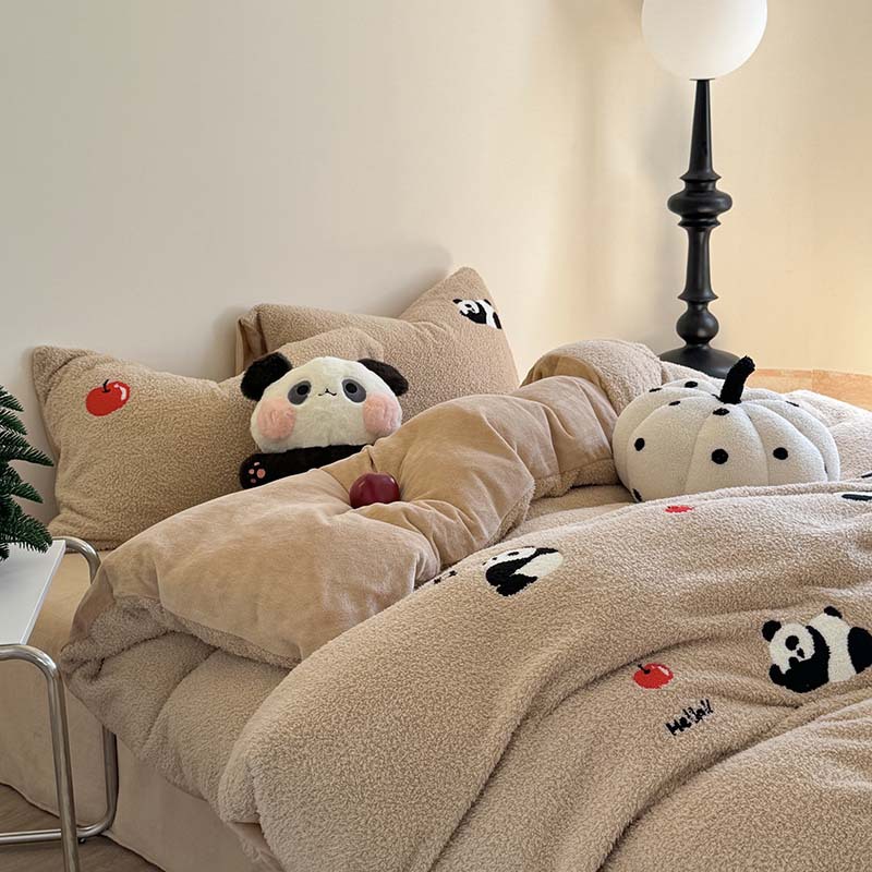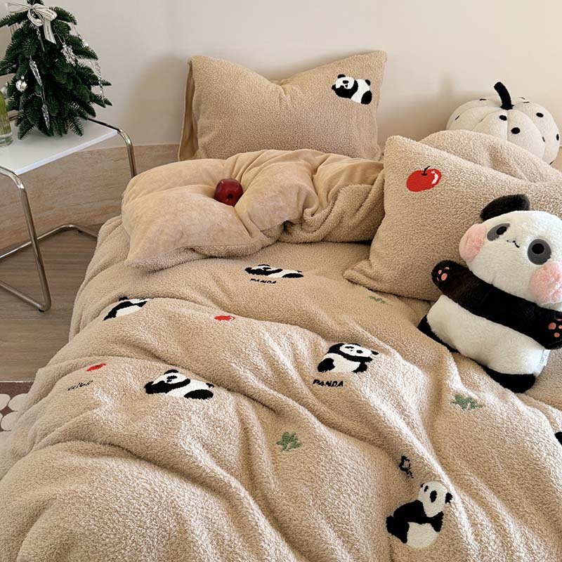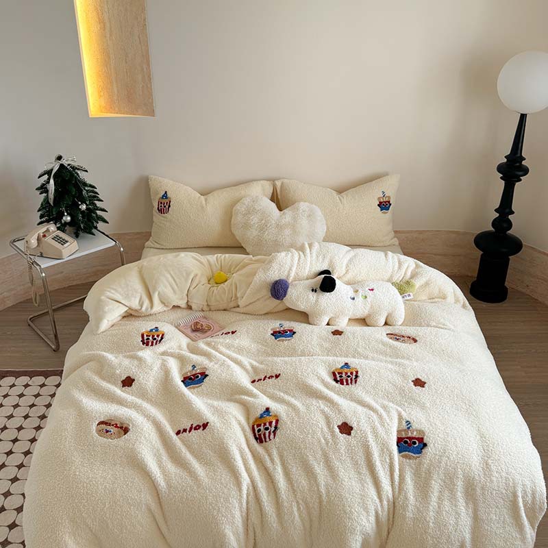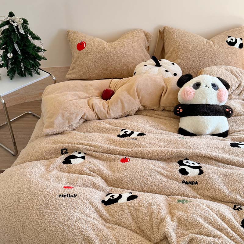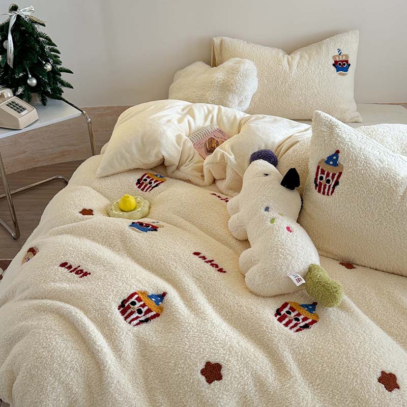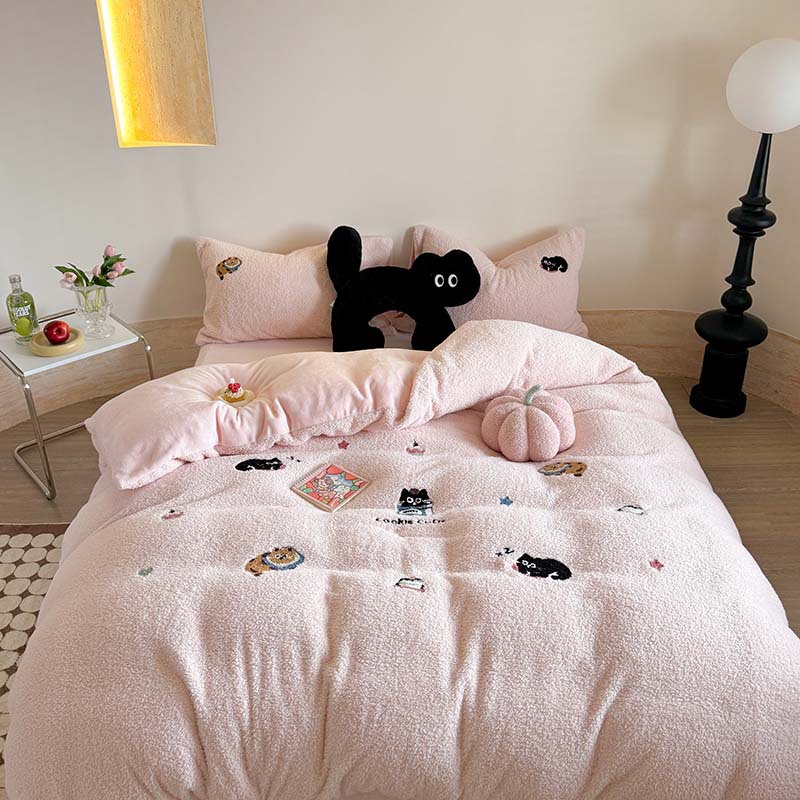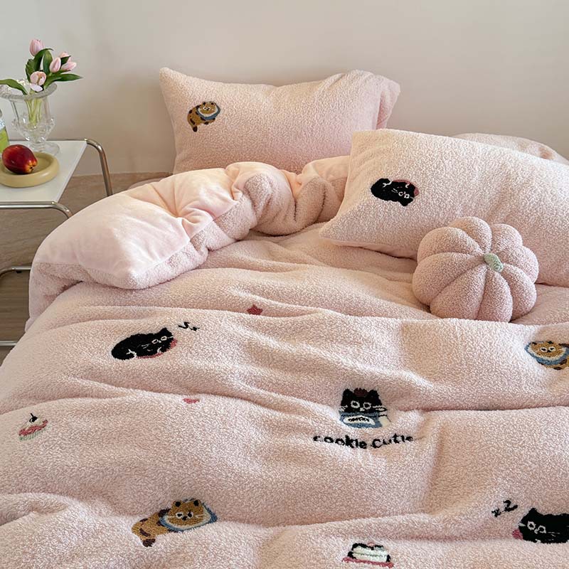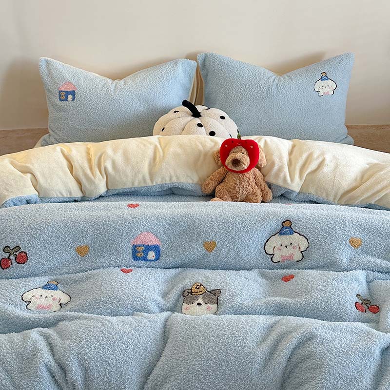 ins卡通加厚泰迪绒毛巾绣刺绣四件套1.5m1.8牛奶绒秋冬季保暖床单