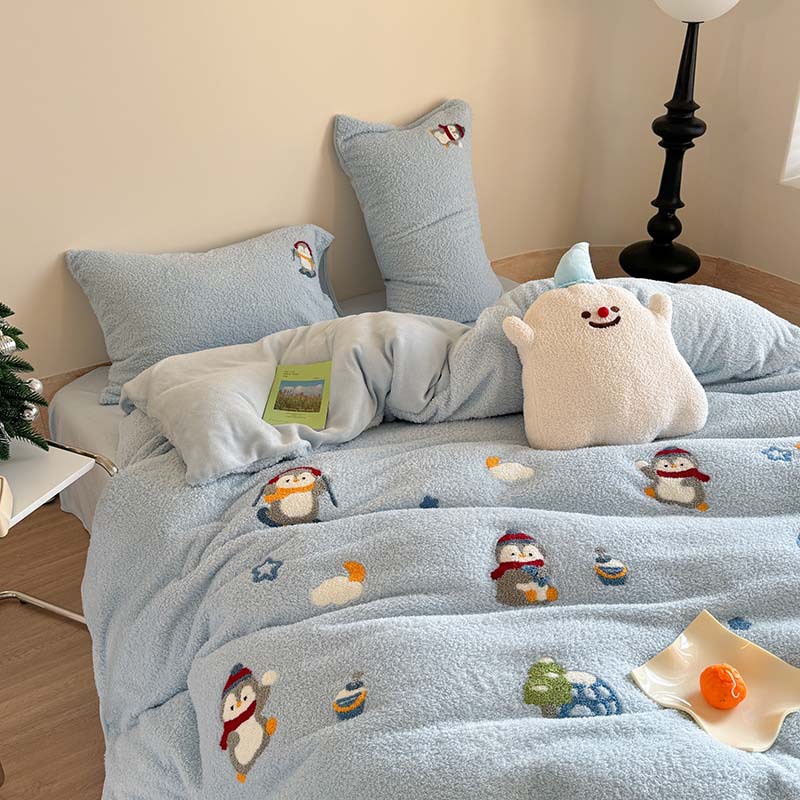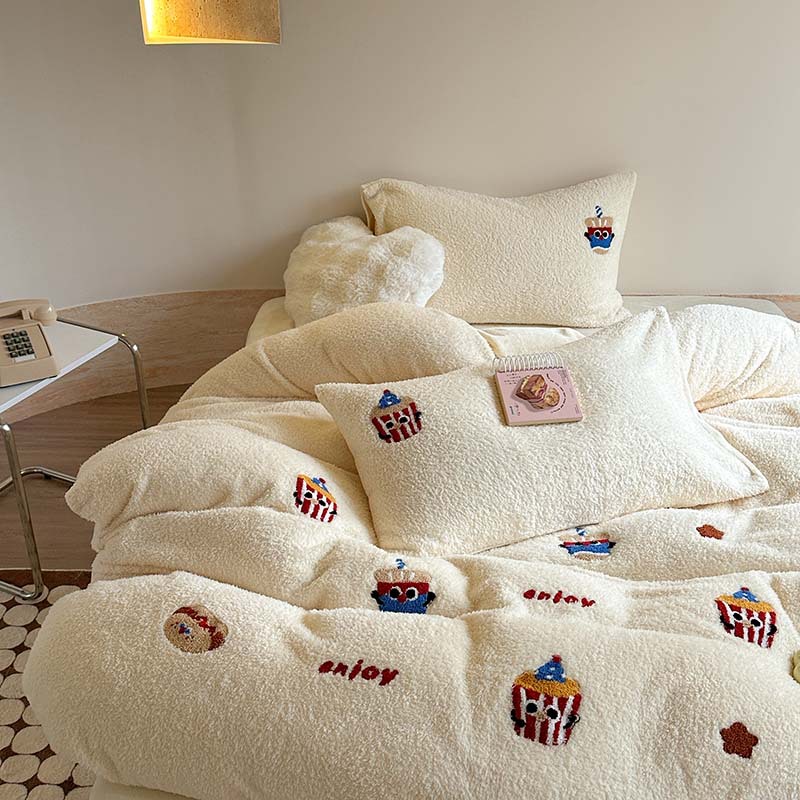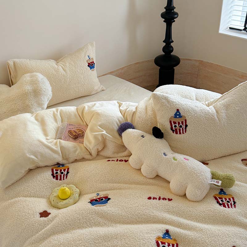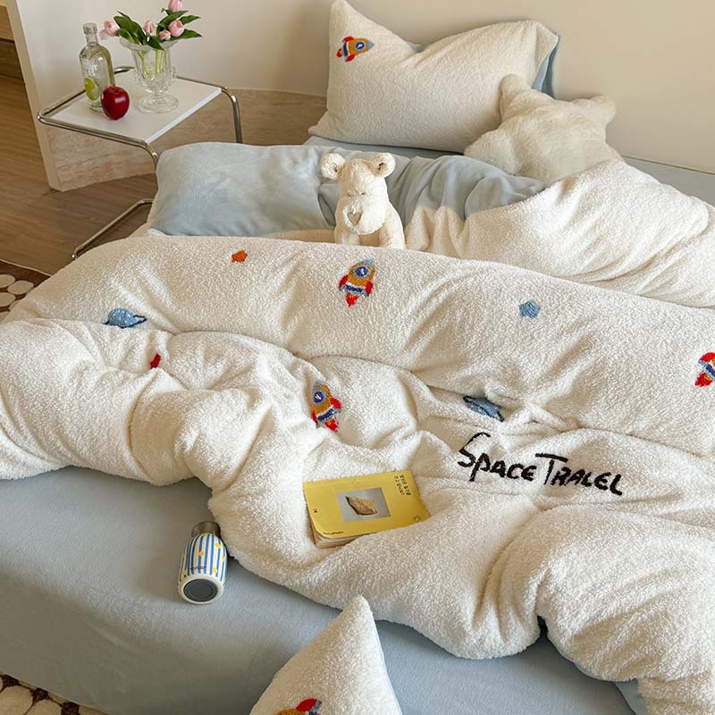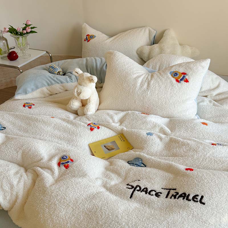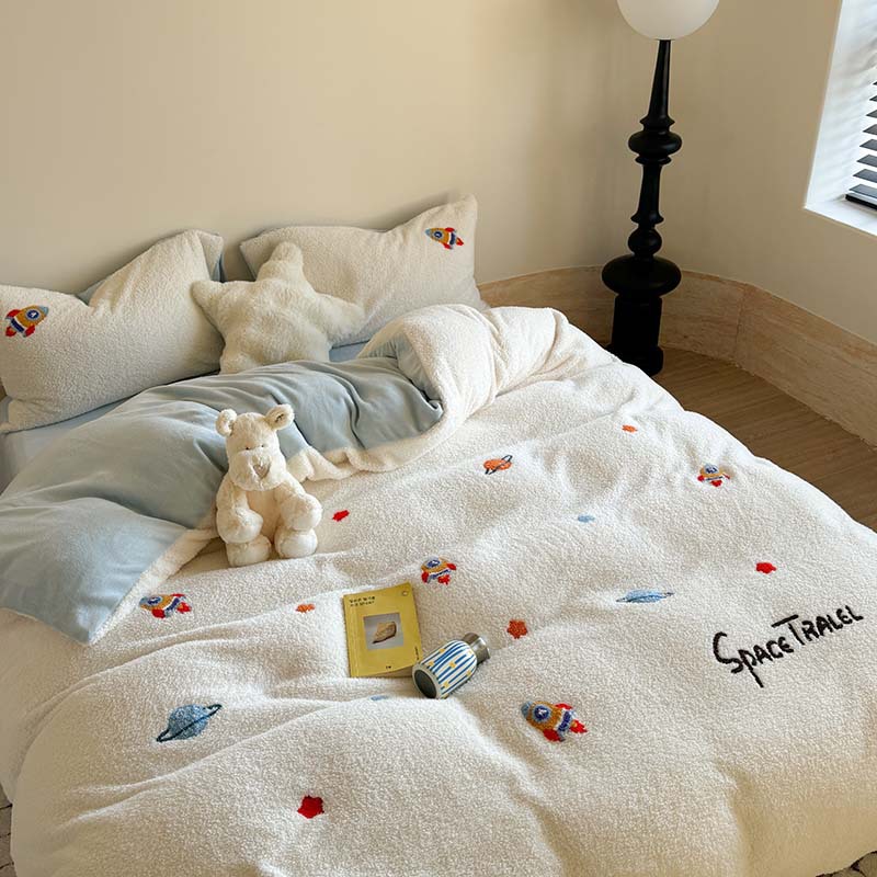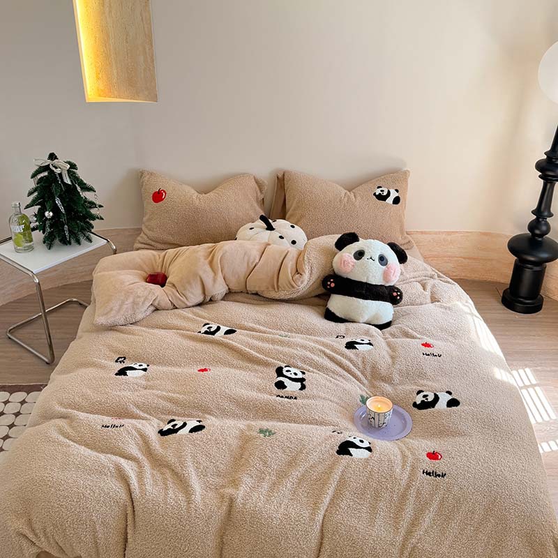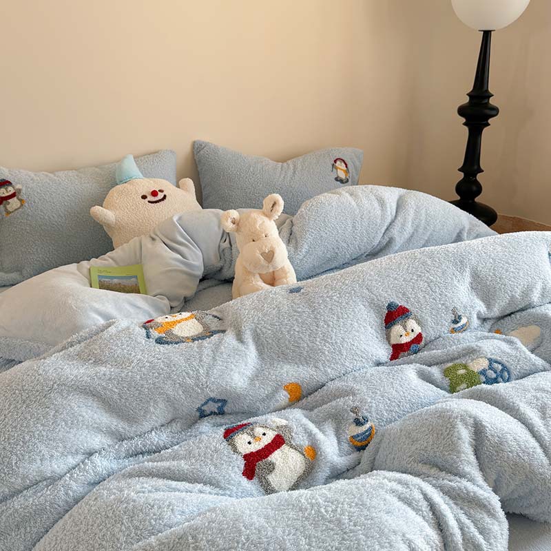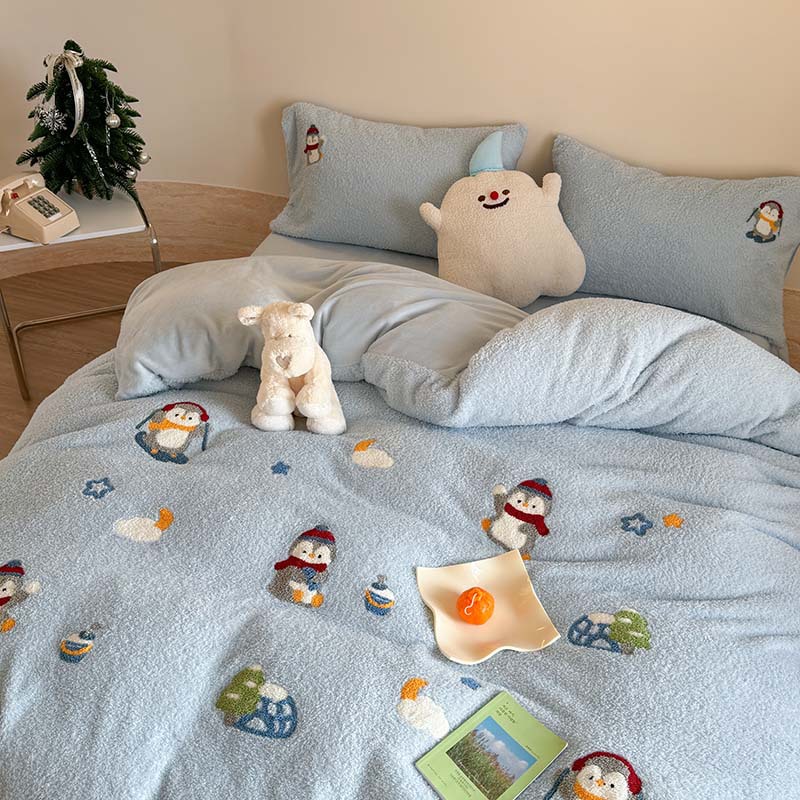 ins卡通加厚泰迪绒毛巾绣刺绣四件套1.5m1.8牛奶绒秋冬季保暖床单