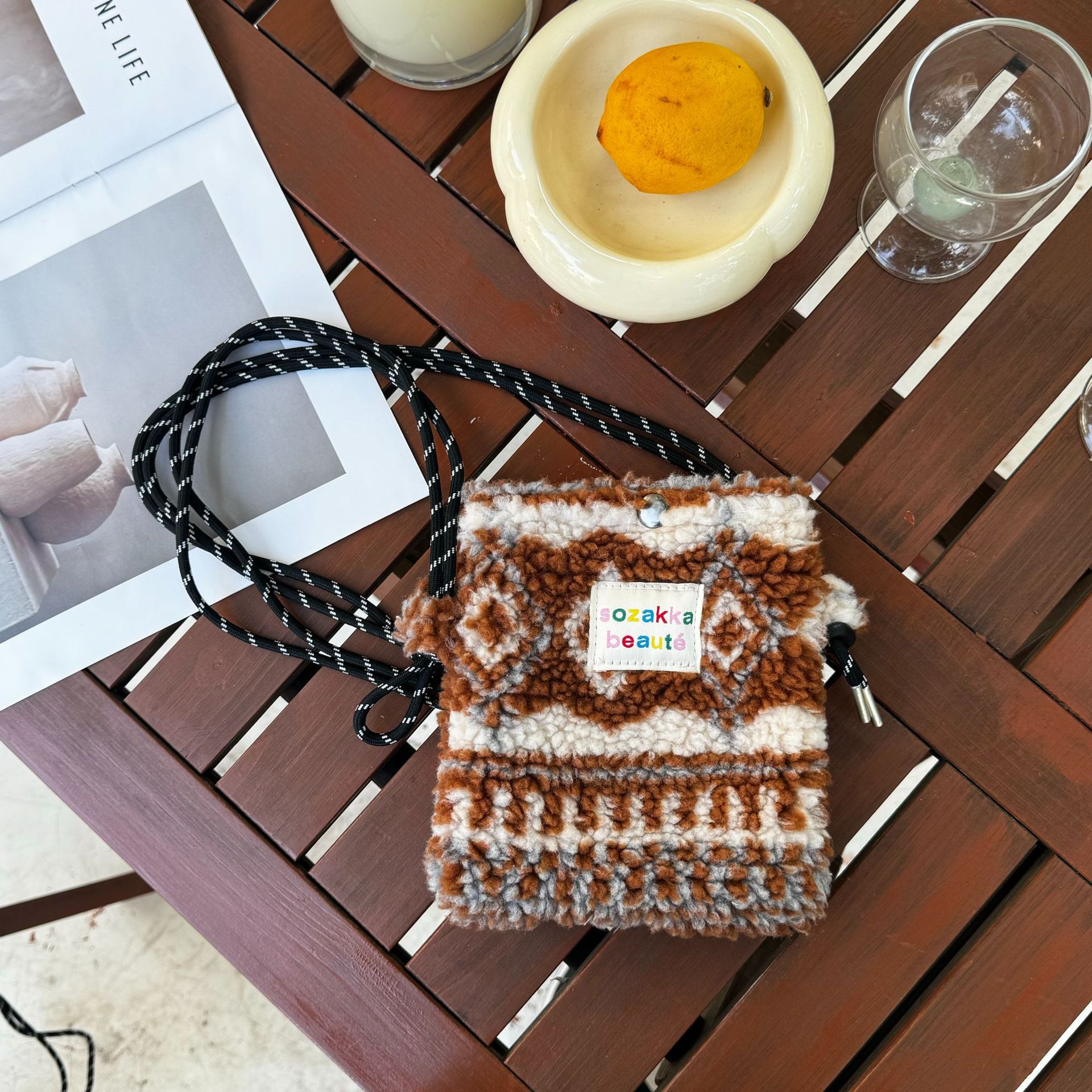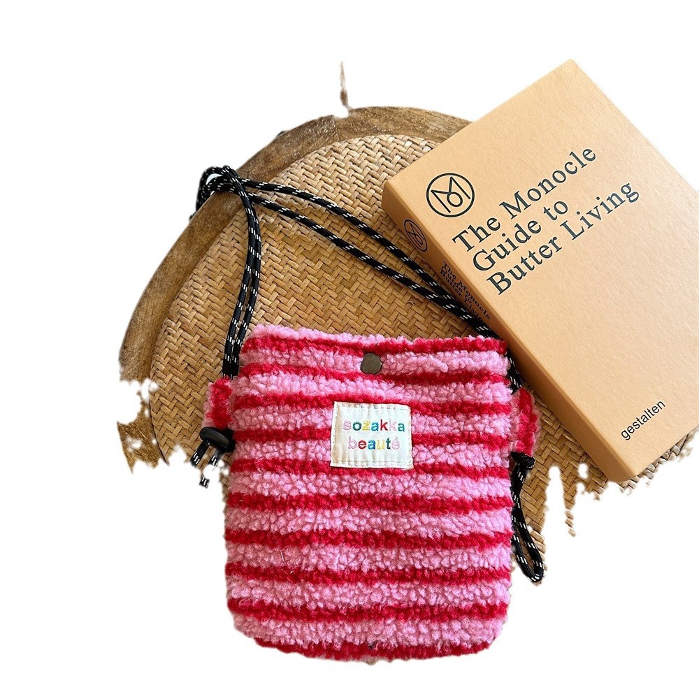 韩国冬季新款毛绒彩虹波点可爱小包包粉色单肩斜挎包逛街随身收纳
