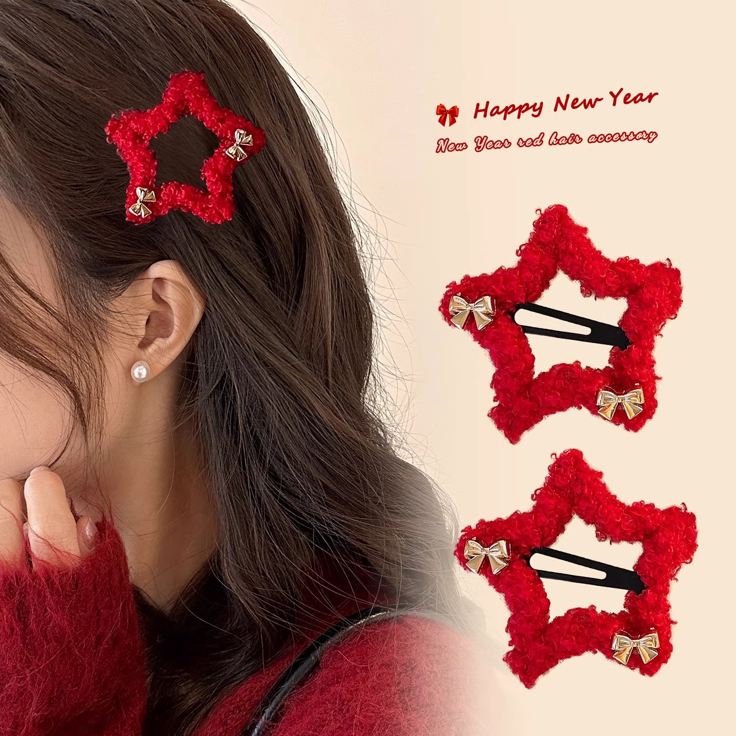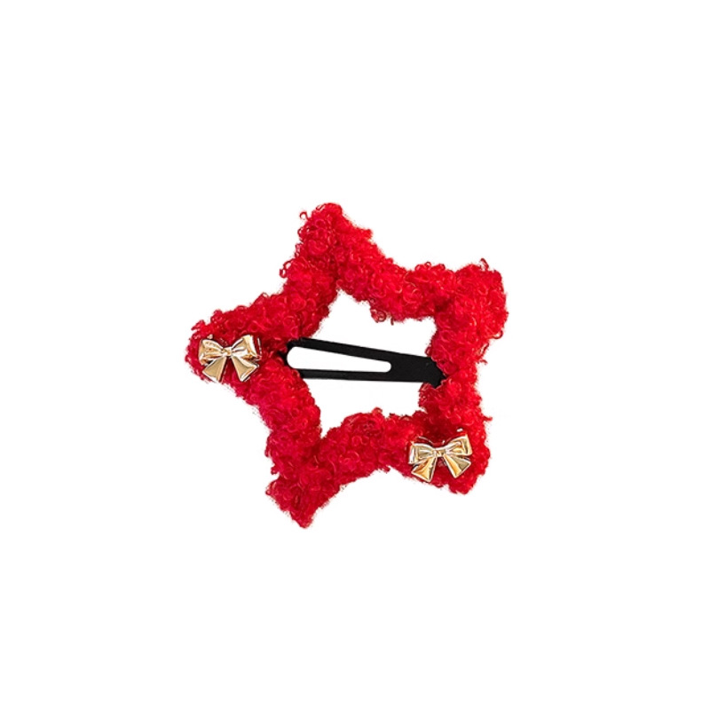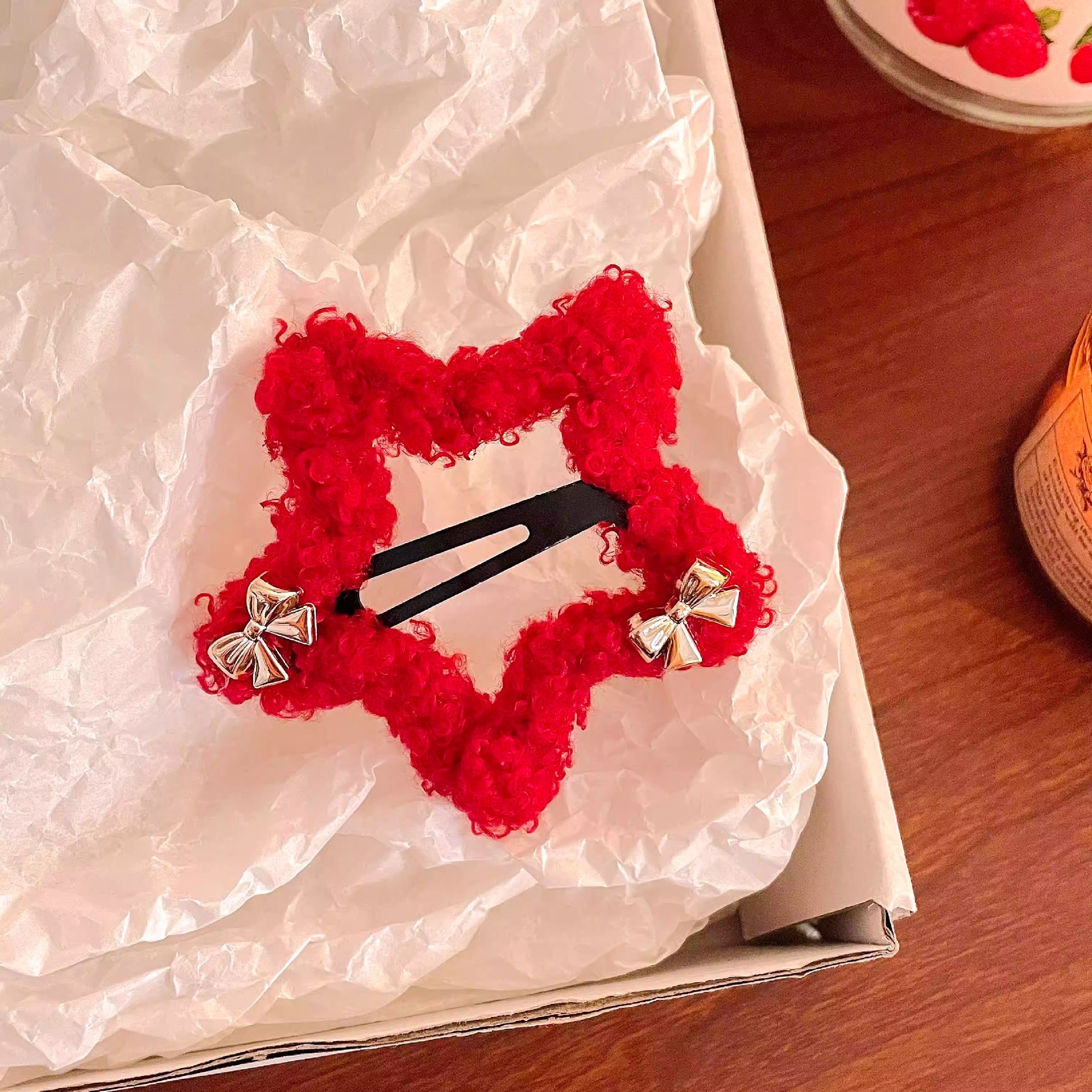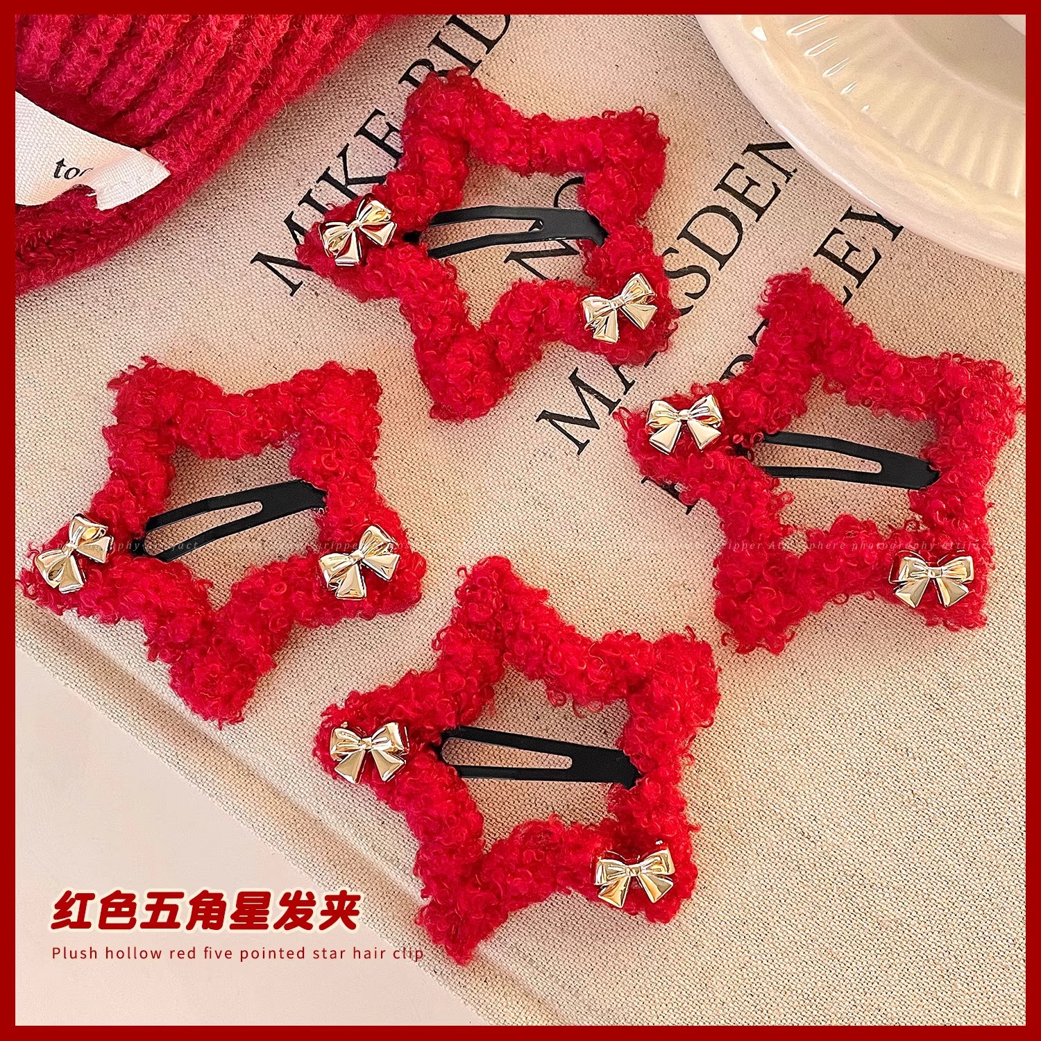新年毛绒五角星发夹女甜美可爱侧边夹刘海碎发夹秋冬夹子头饰发卡
