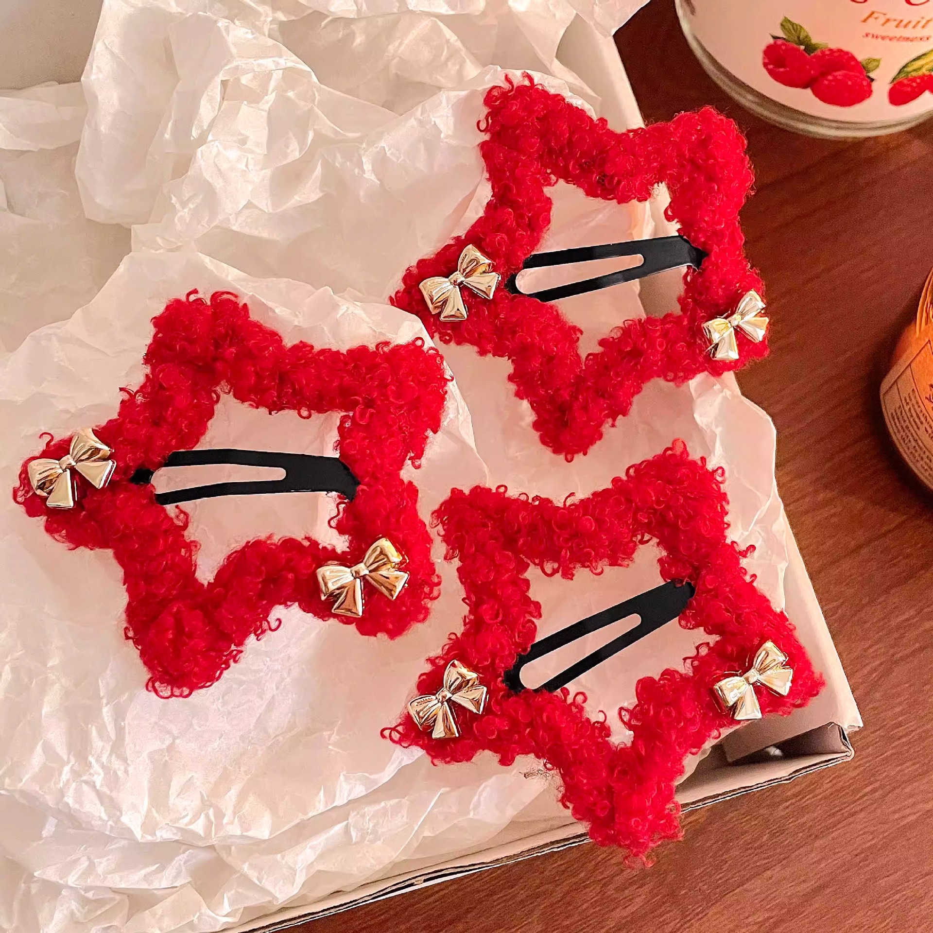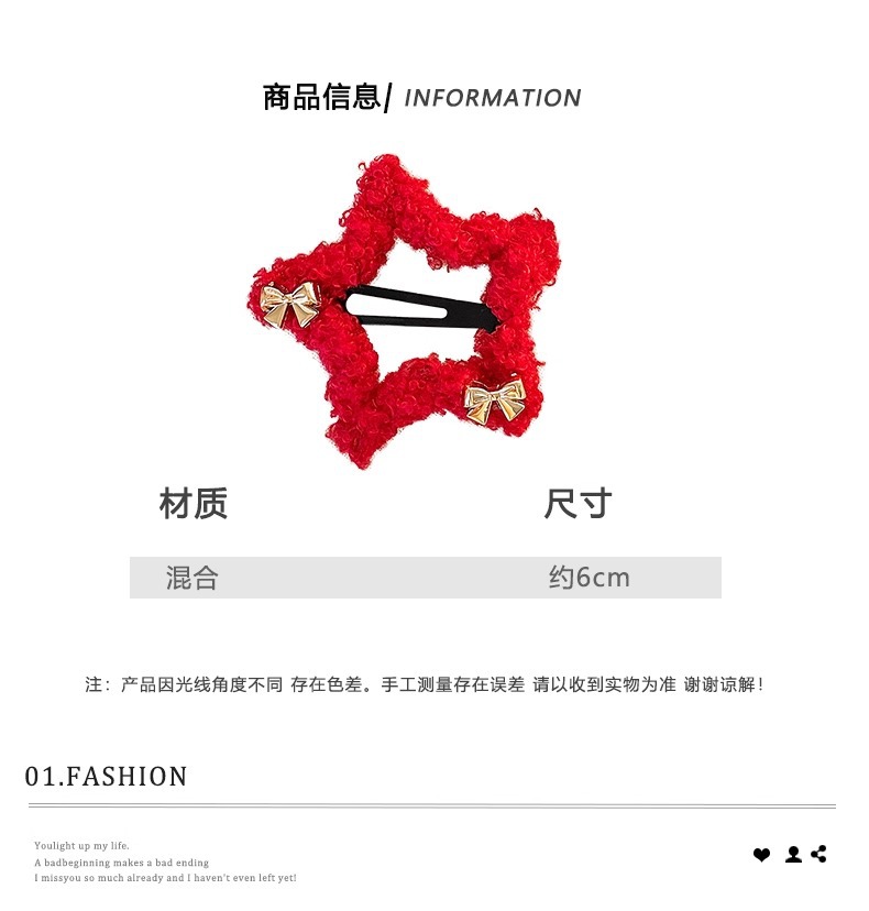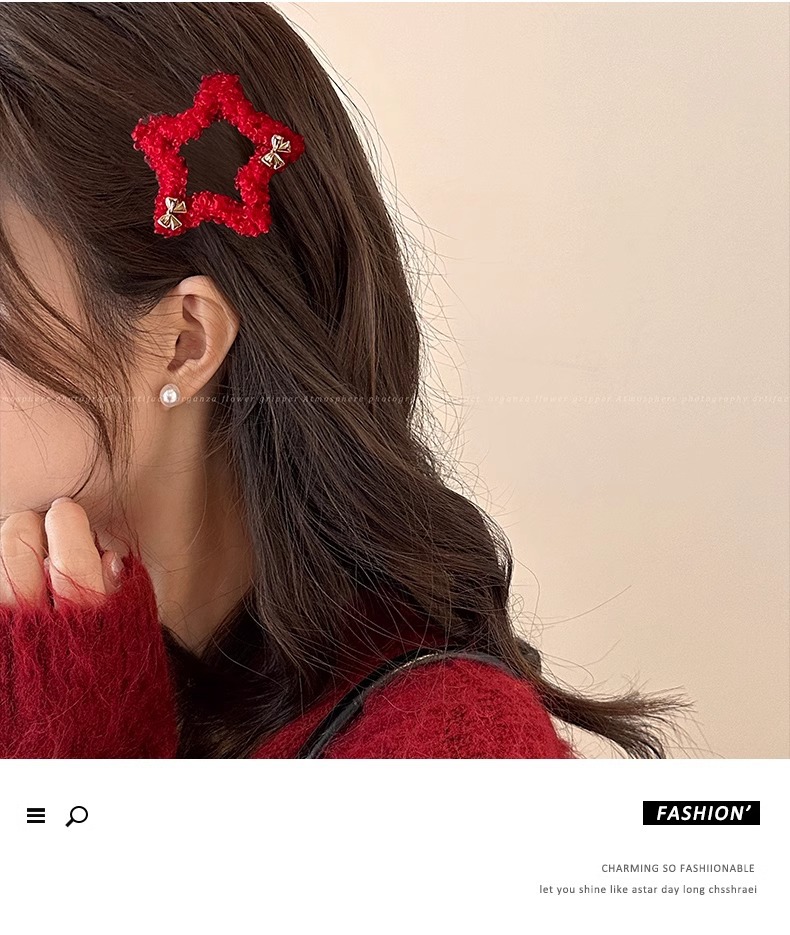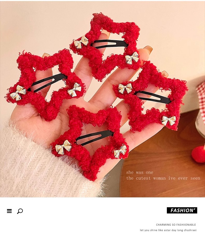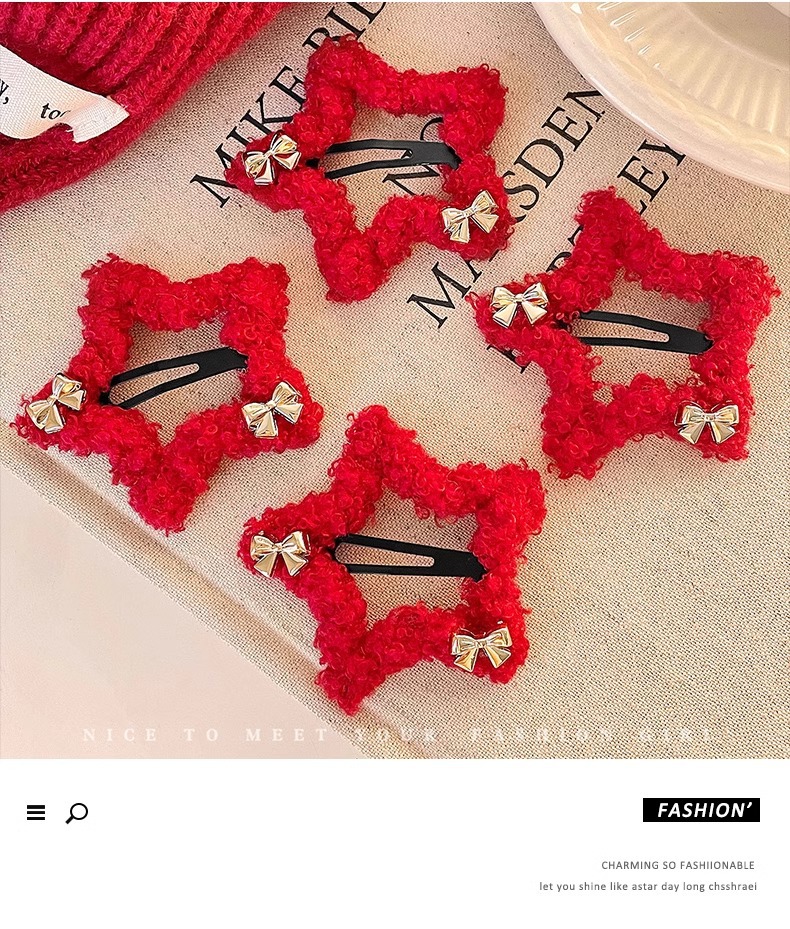 新年毛绒五角星发夹女甜美可爱侧边夹刘海碎发夹秋冬夹子头饰发卡