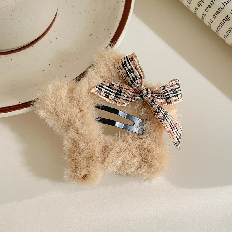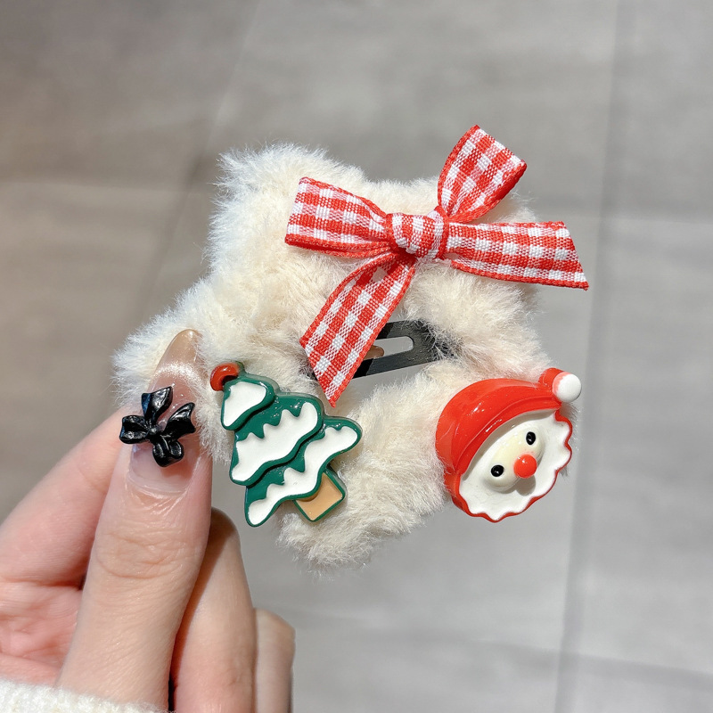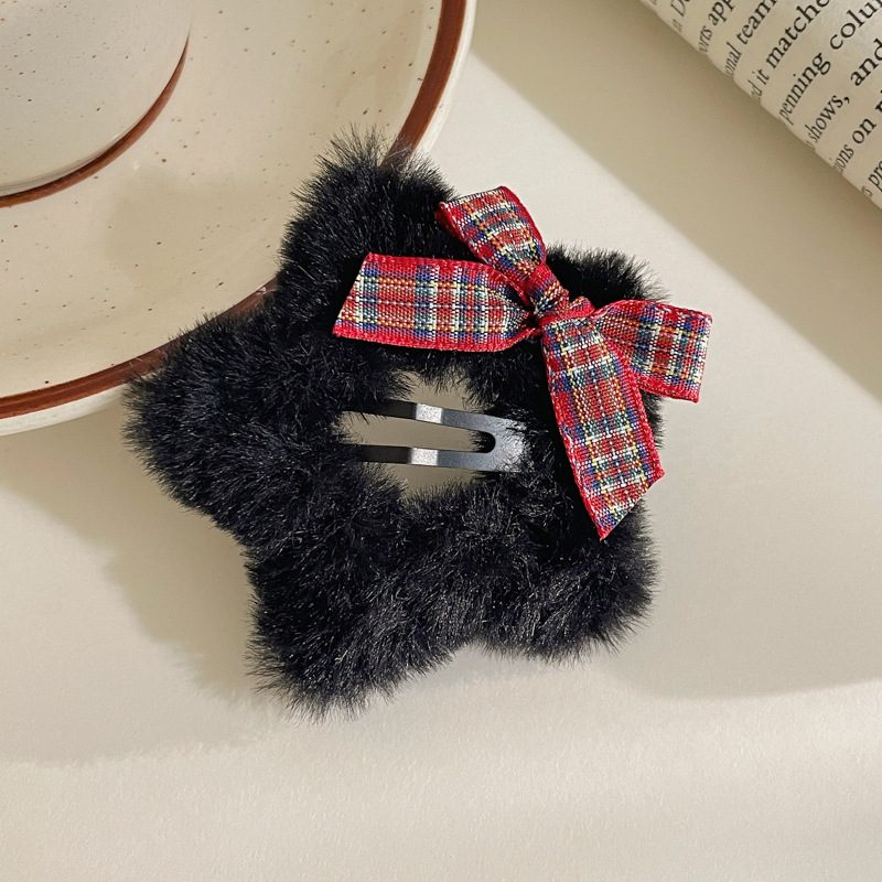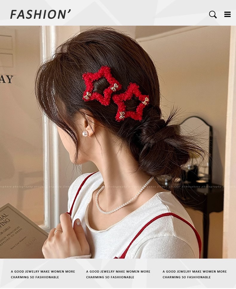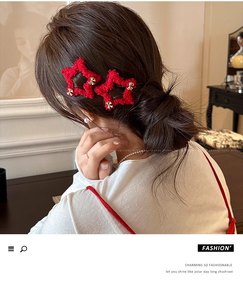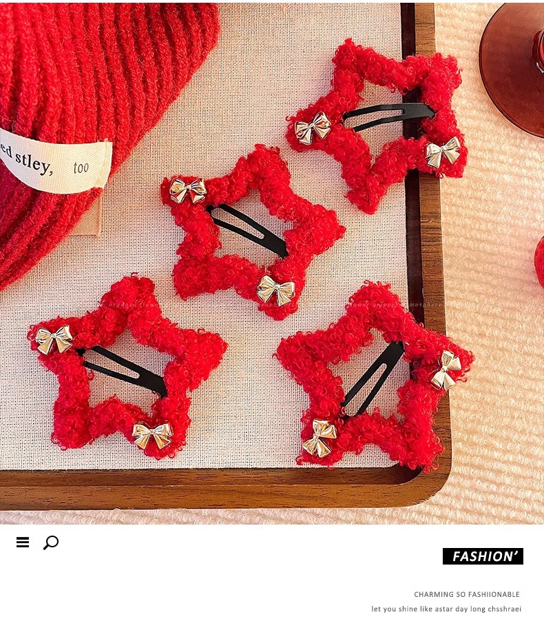 新年毛绒五角星发夹女甜美可爱侧边夹刘海碎发夹秋冬夹子头饰发卡
