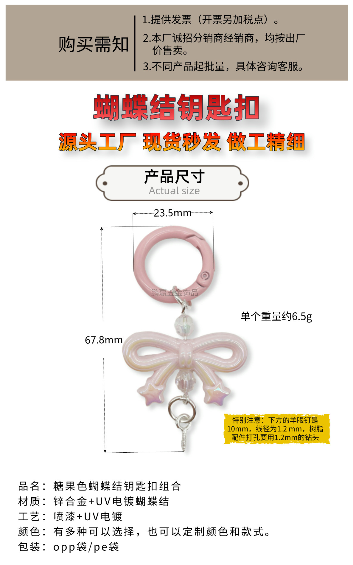 蝴蝶结钥匙扣包包挂饰弹簧扣diy饰品配件串珠盲盒萌粒挂链挂件扣