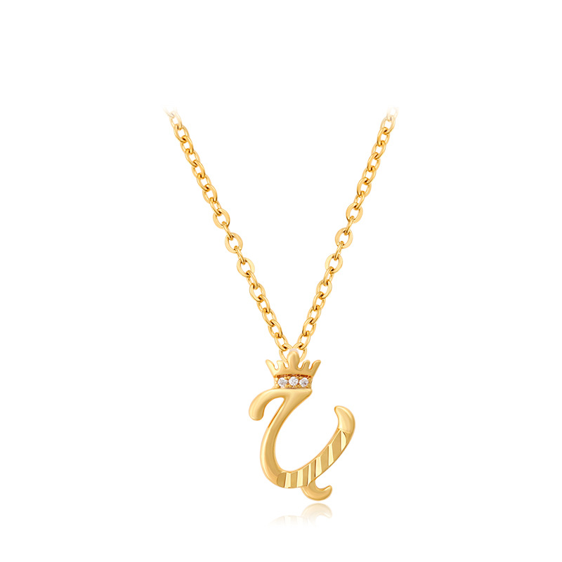 旭平首饰欧美小众合金字母吊坠锁骨链气质26个字母项链批发饰品女