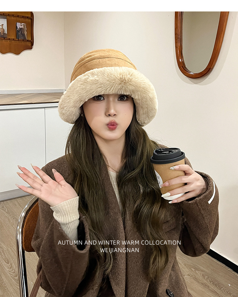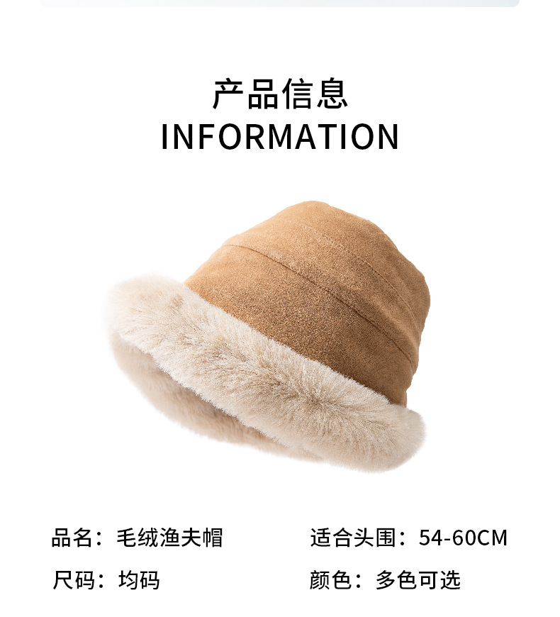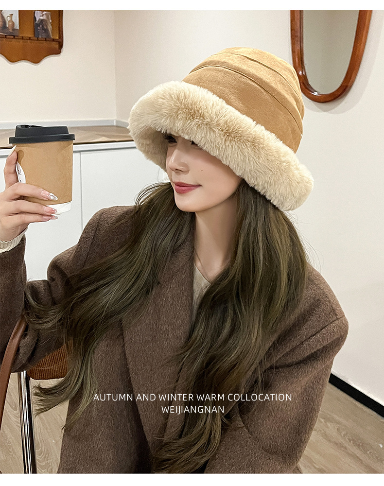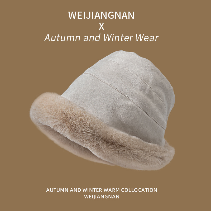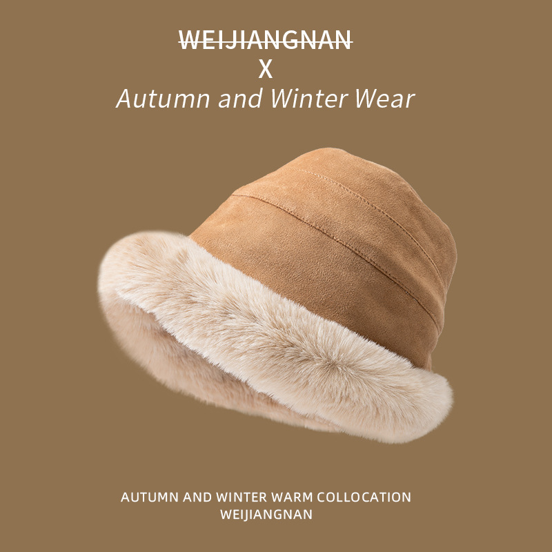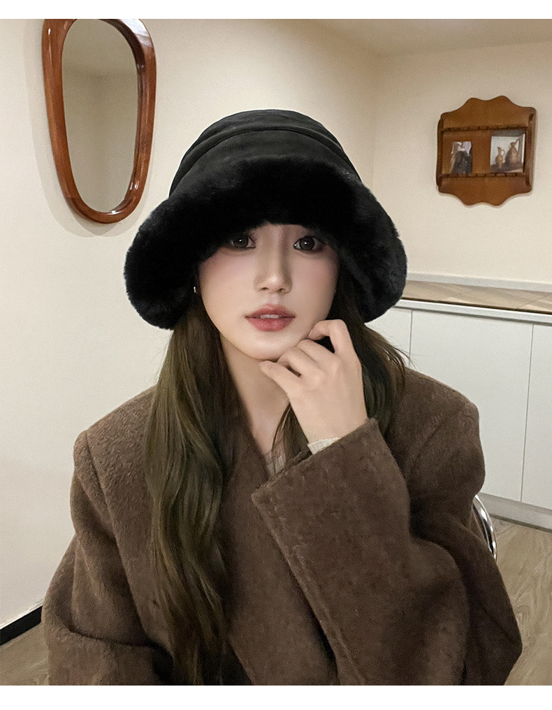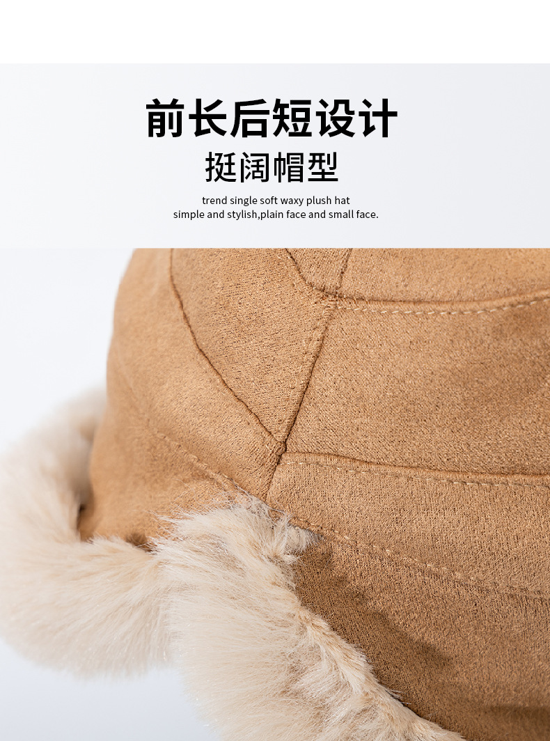 毛绒渔夫帽女冬季韩版高级感加厚保暖盆帽防风雷锋帽麂皮绒蒙古帽