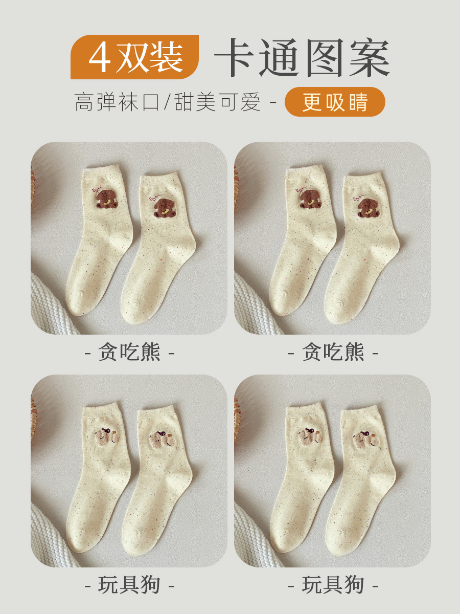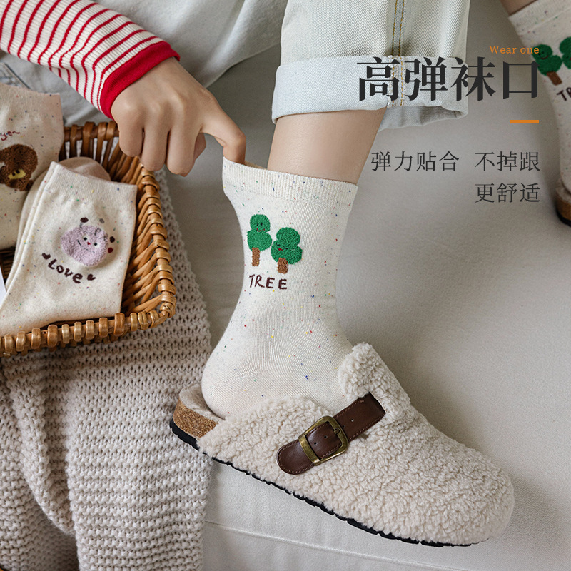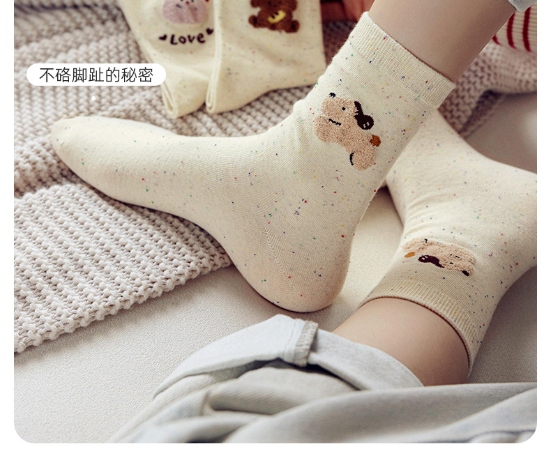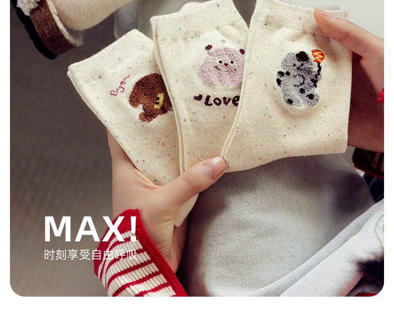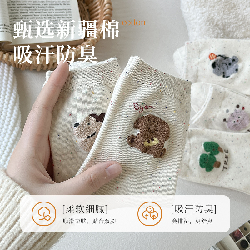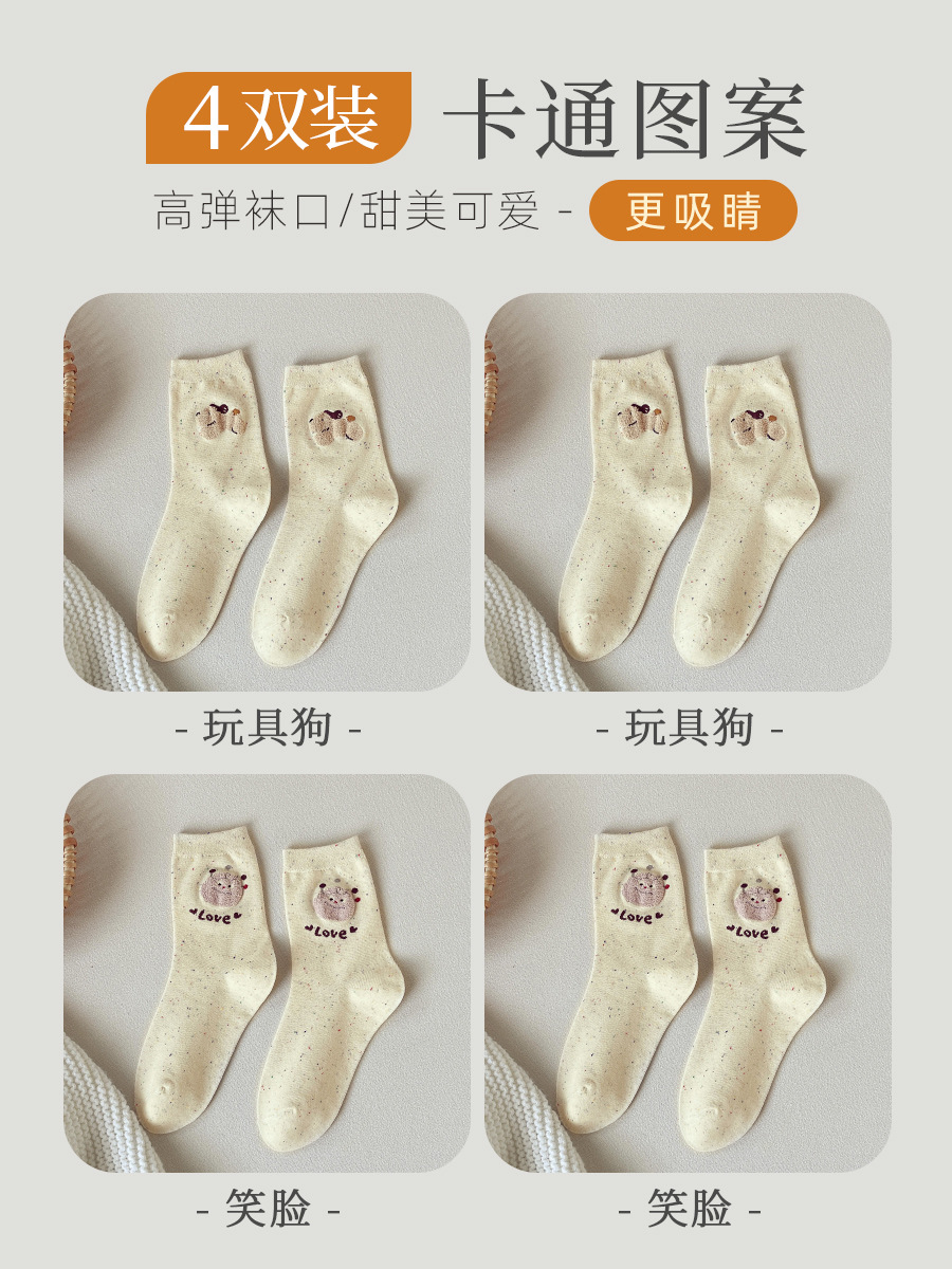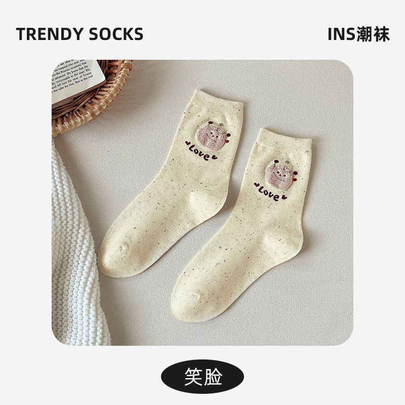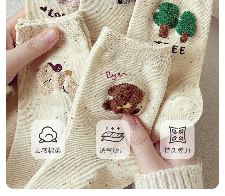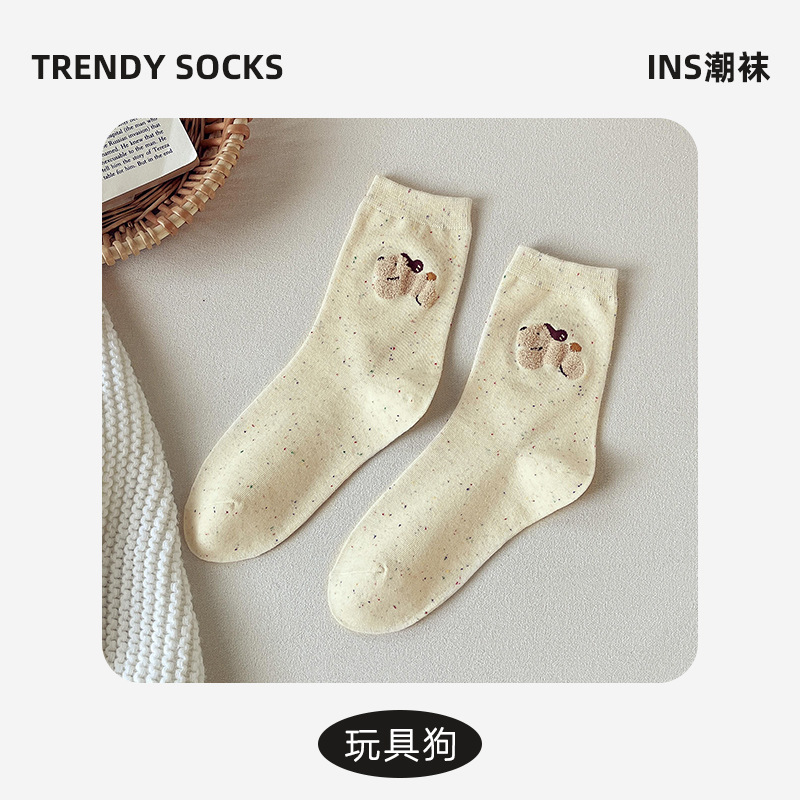 秋冬新品女士袜子多巴胺卡通可爱狗狗立体刺绣中筒袜ins潮袜女袜