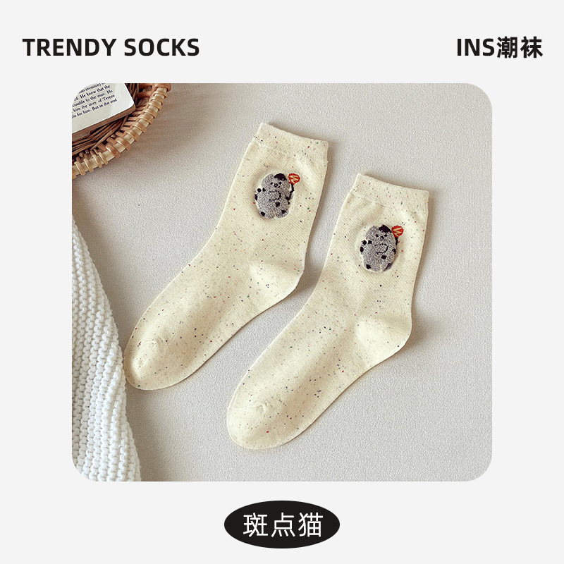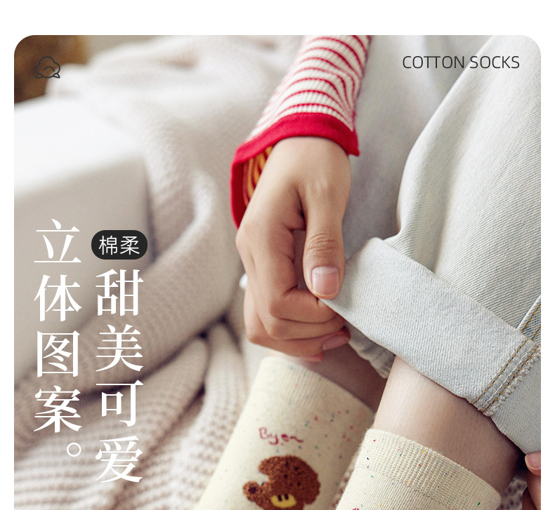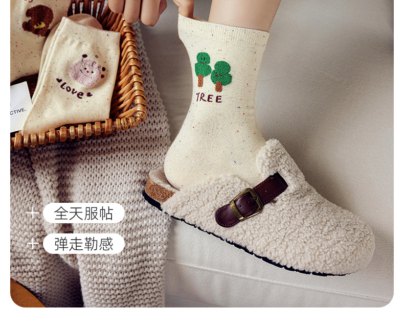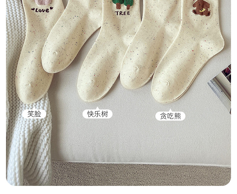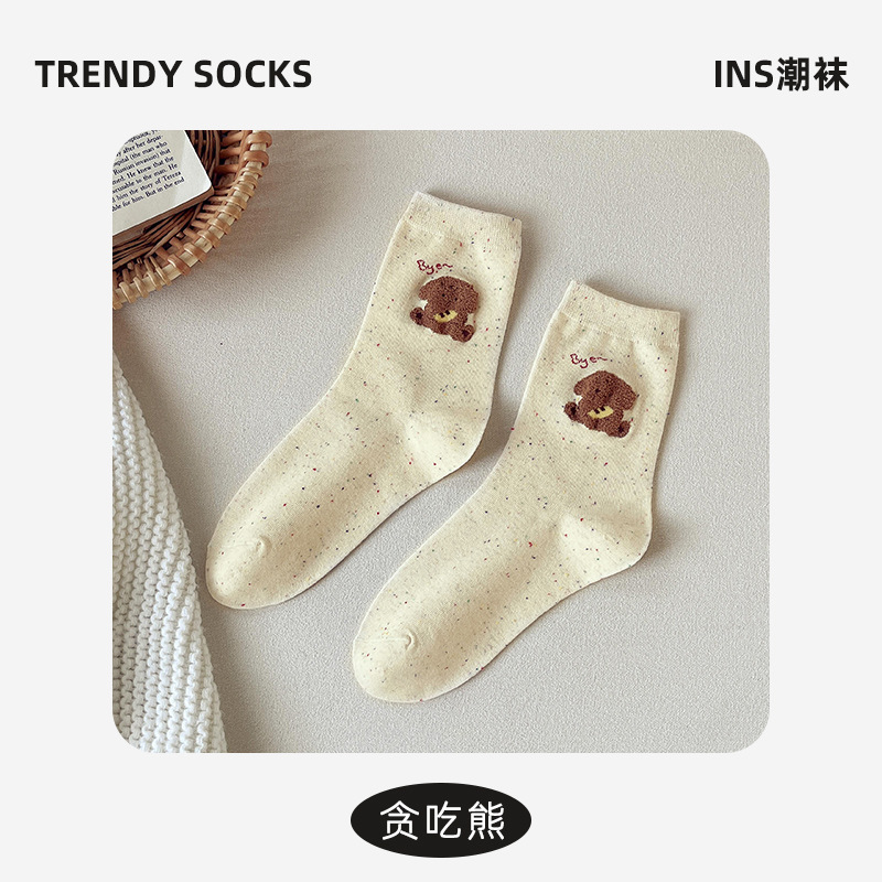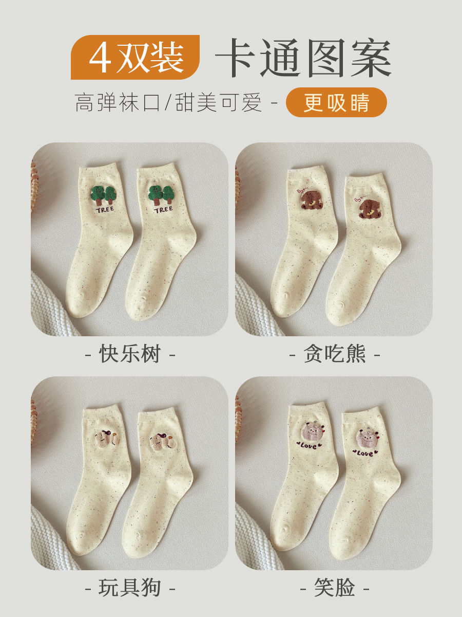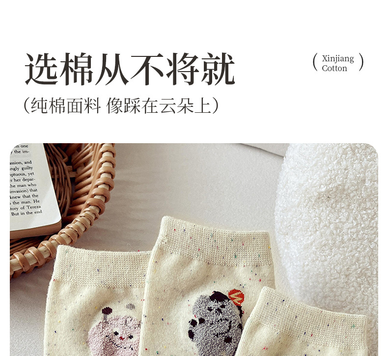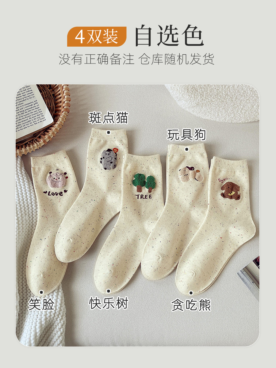 秋冬新品女士袜子多巴胺卡通可爱狗狗立体刺绣中筒袜ins潮袜女袜