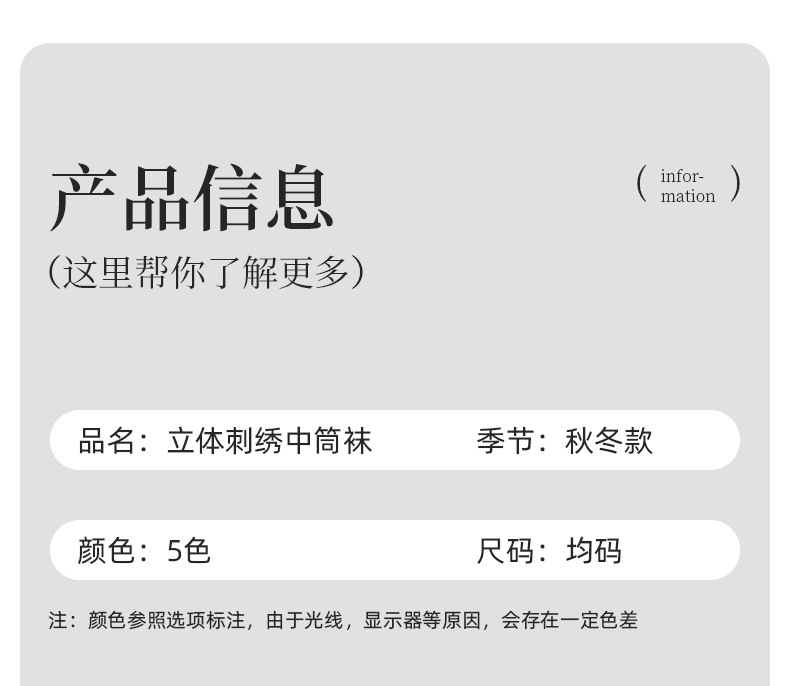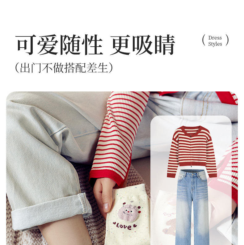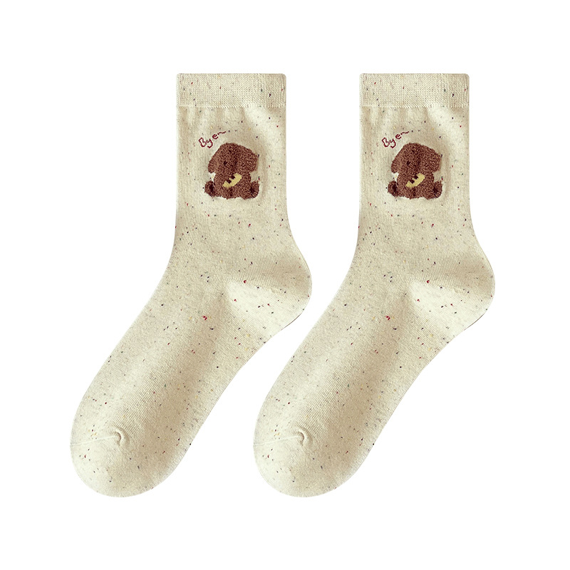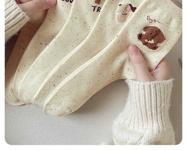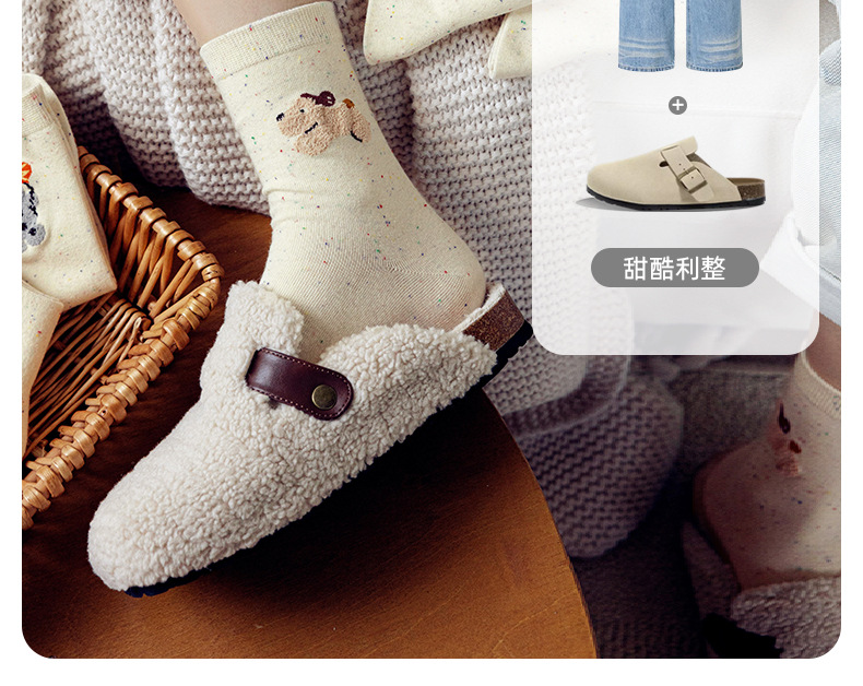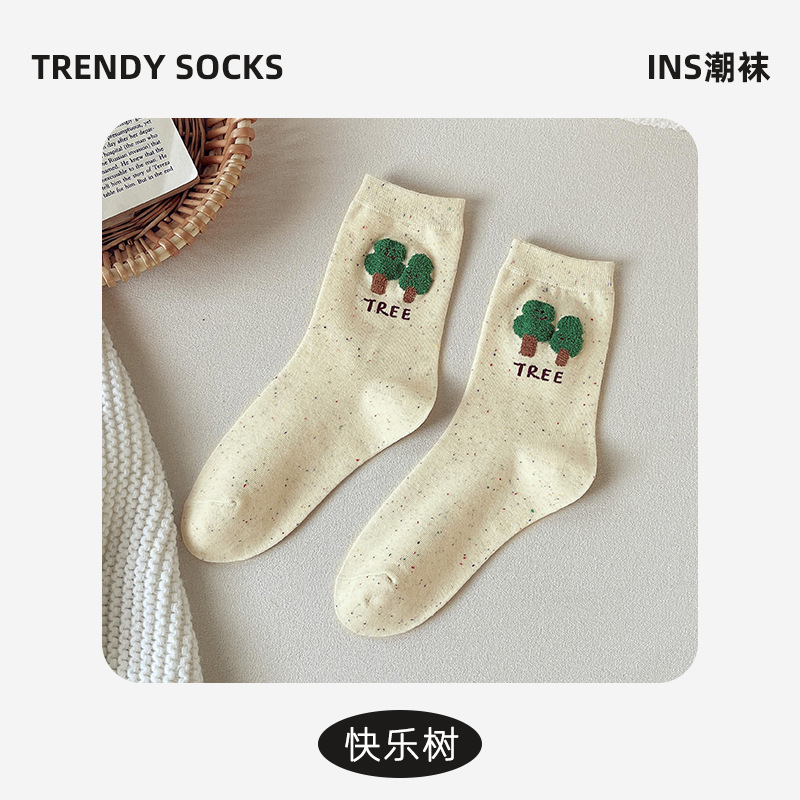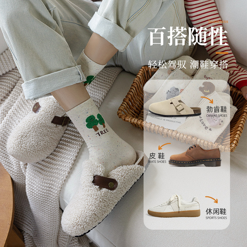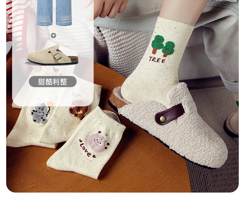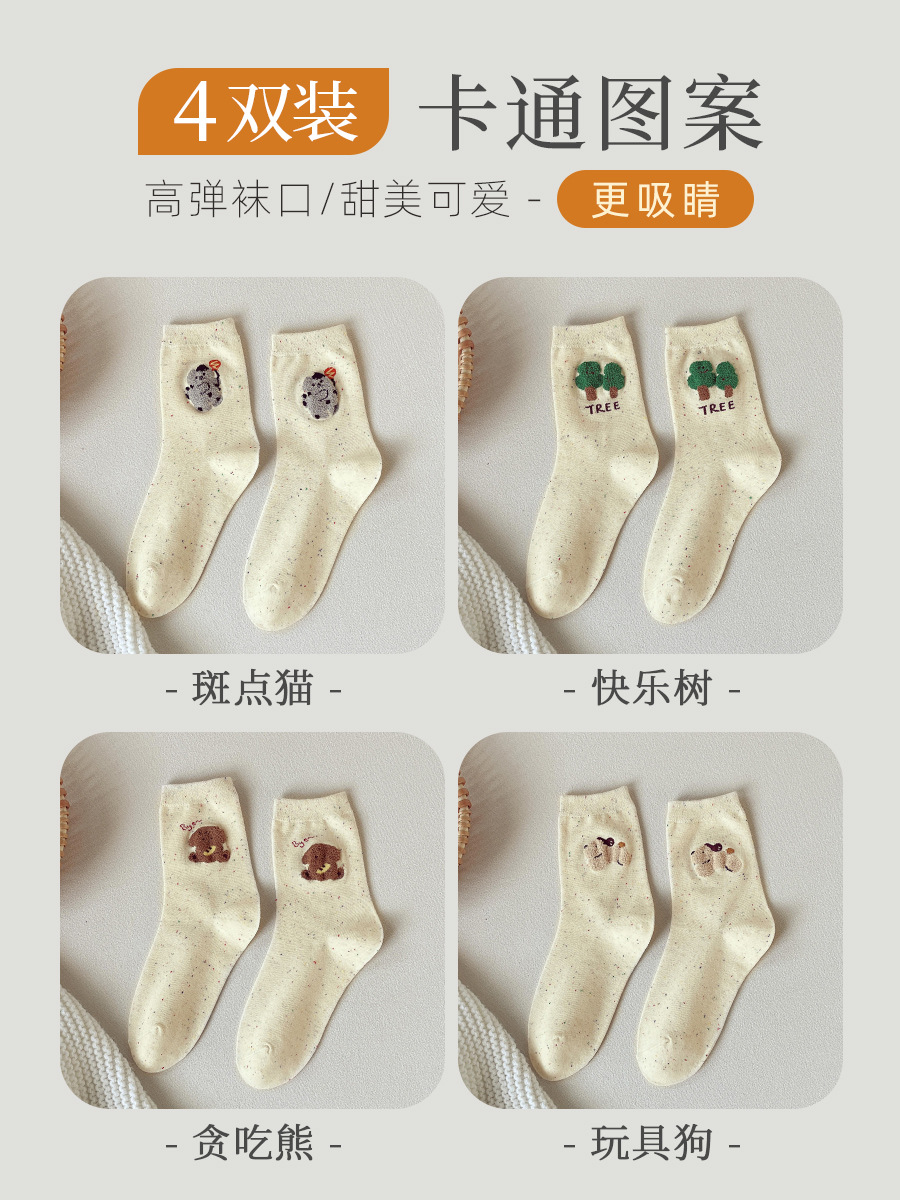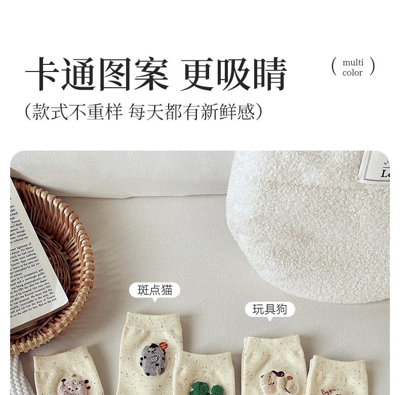 秋冬新品女士袜子多巴胺卡通可爱狗狗立体刺绣中筒袜ins潮袜女袜