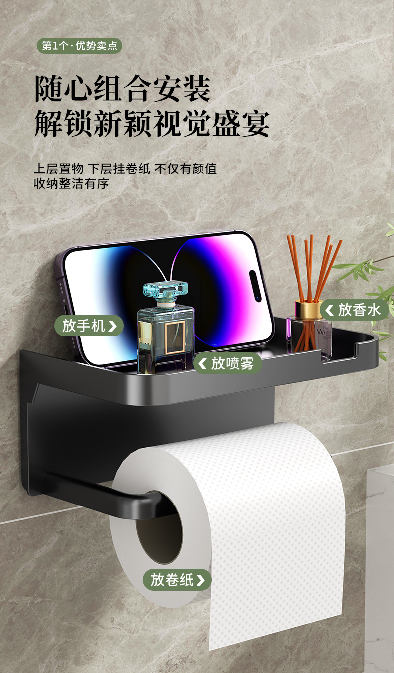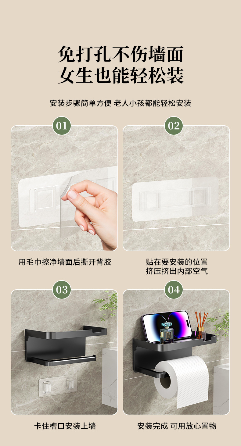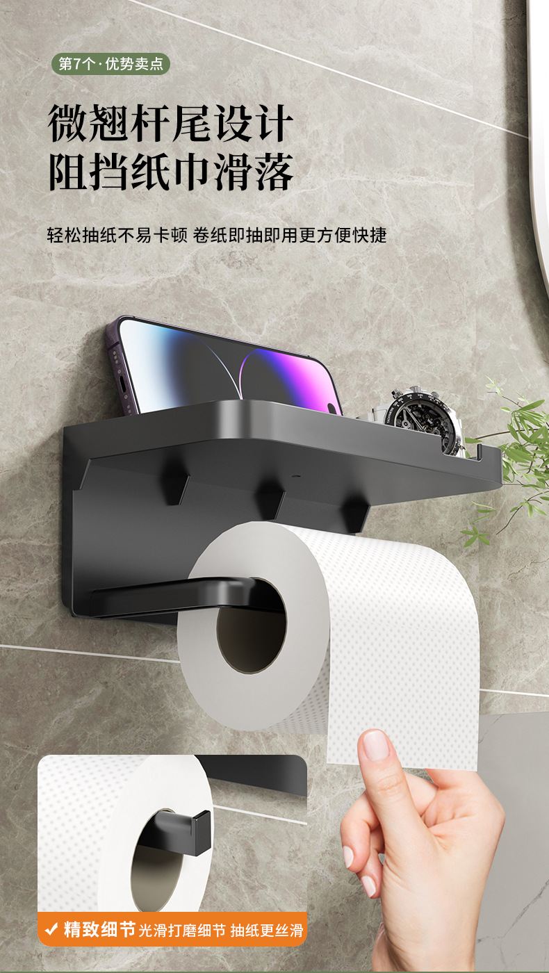 免打孔卫生间纸巾架厕纸盒置物架壁挂式家用浴室手机卷纸架纸筒