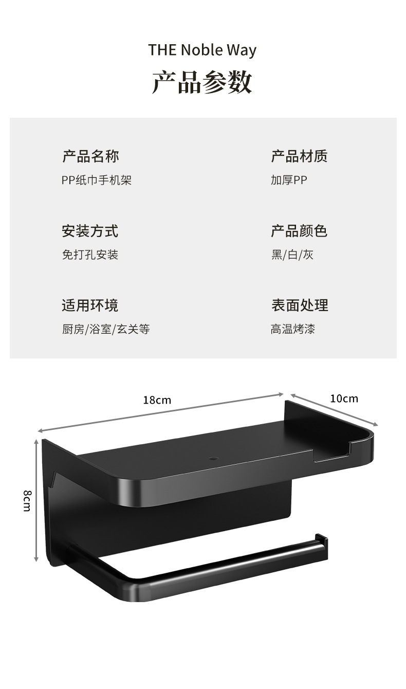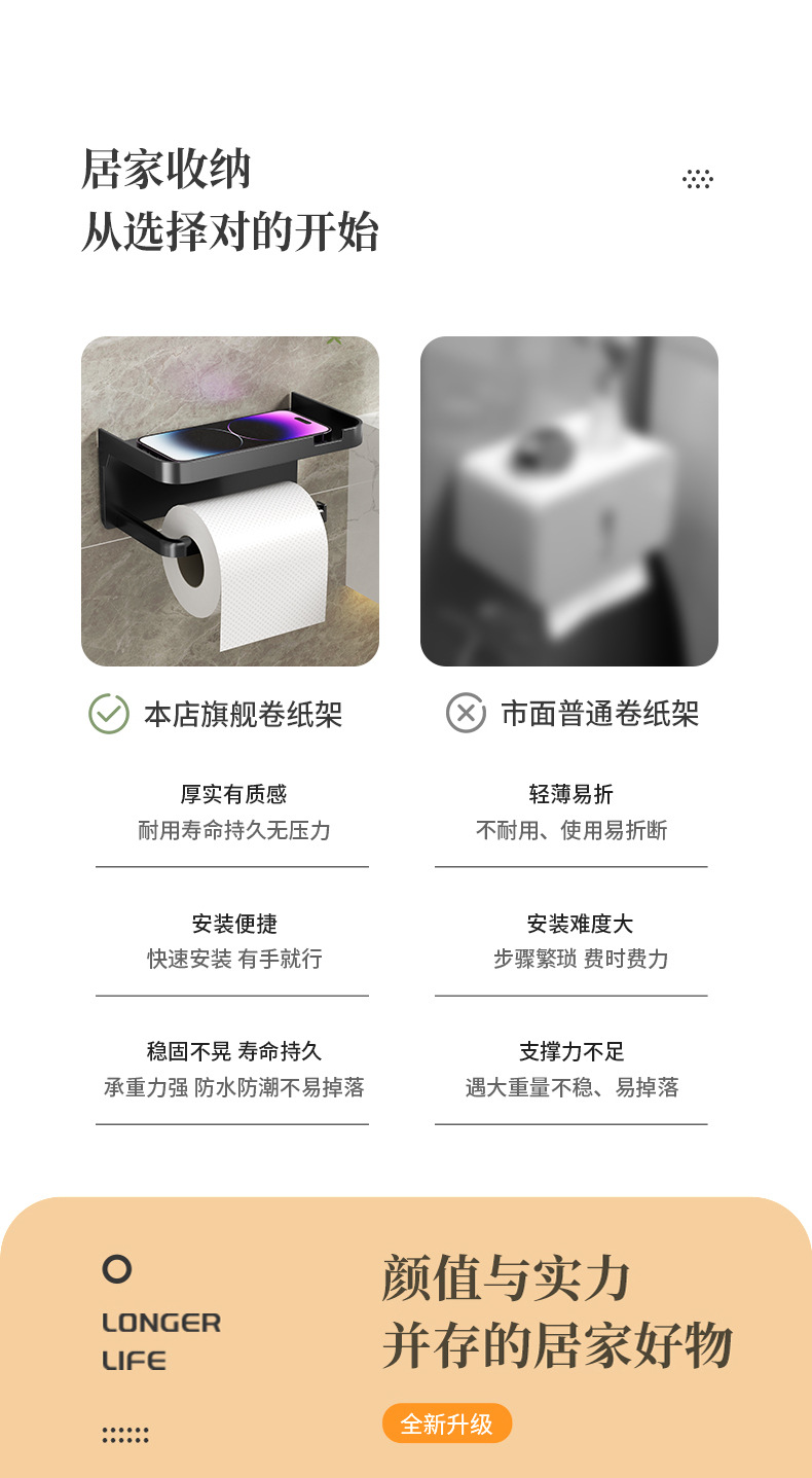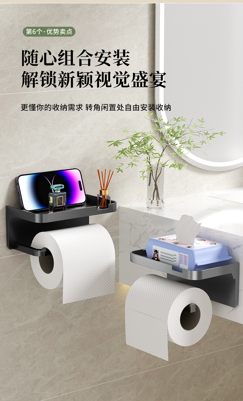 免打孔卫生间纸巾架厕纸盒置物架壁挂式家用浴室手机卷纸架纸筒