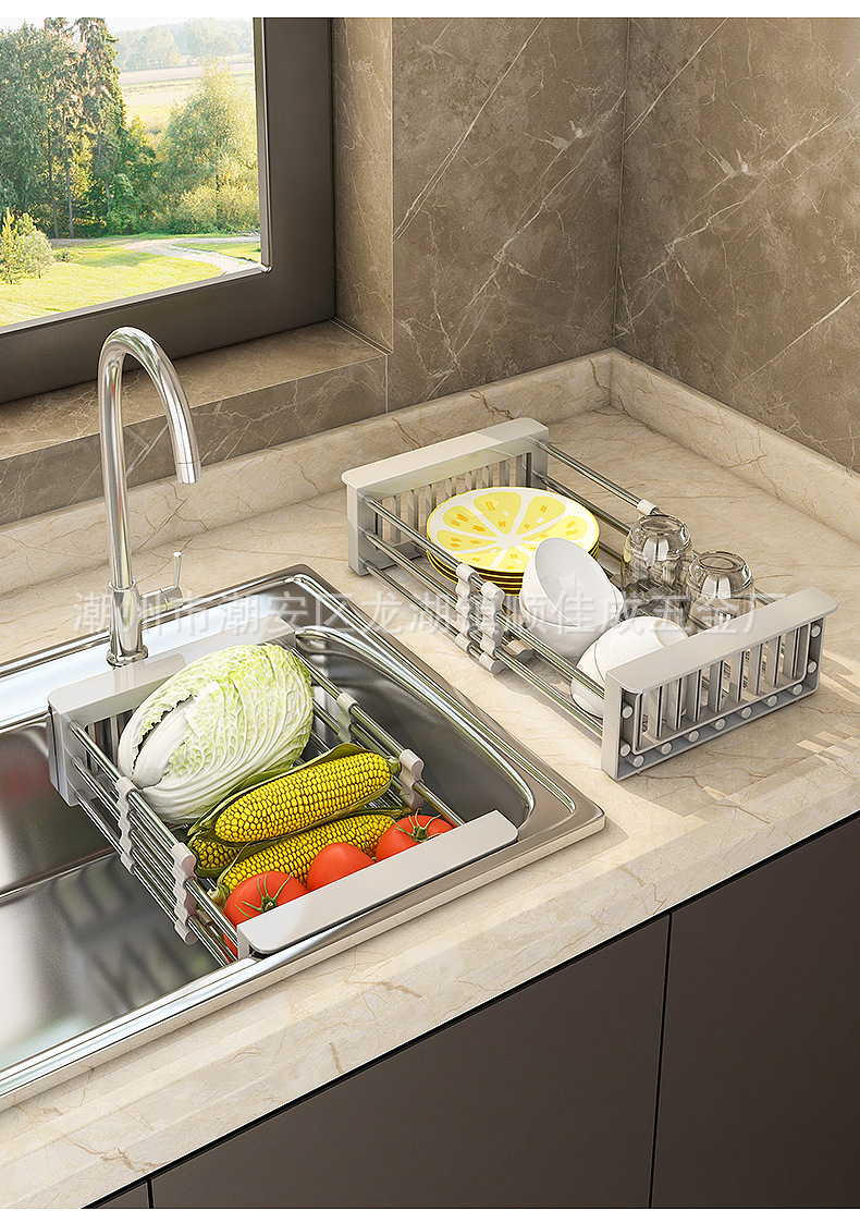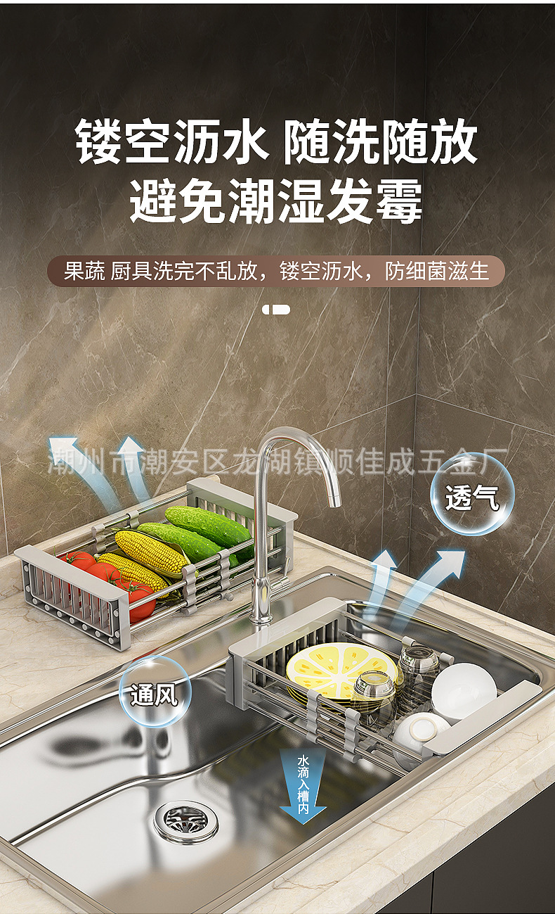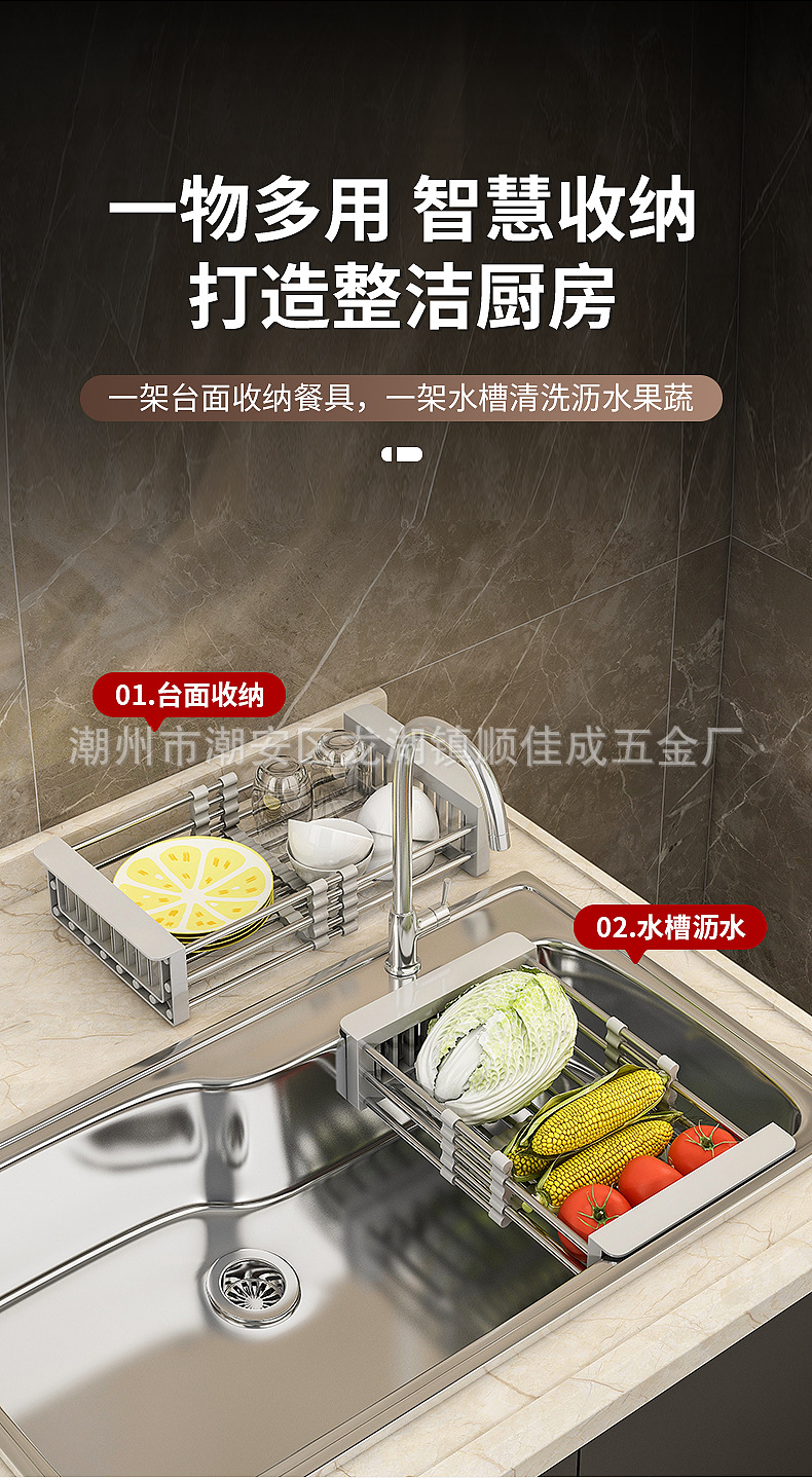 厨房置物架水槽可伸缩沥水篮洗水果菜篮子水果盘沥水架晾碗架家用