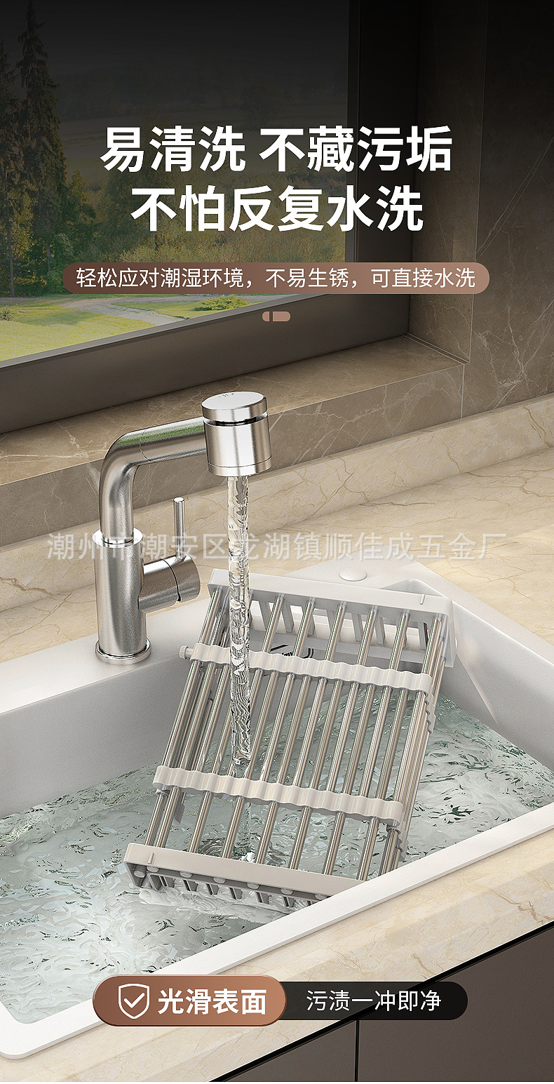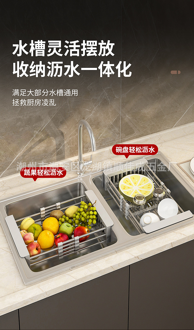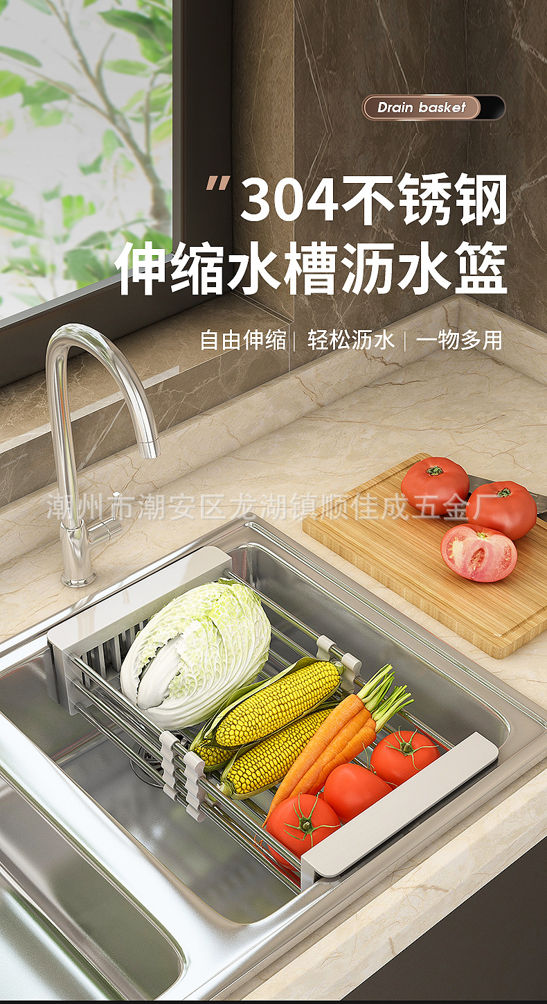 厨房置物架水槽可伸缩沥水篮洗水果菜篮子水果盘沥水架晾碗架家用